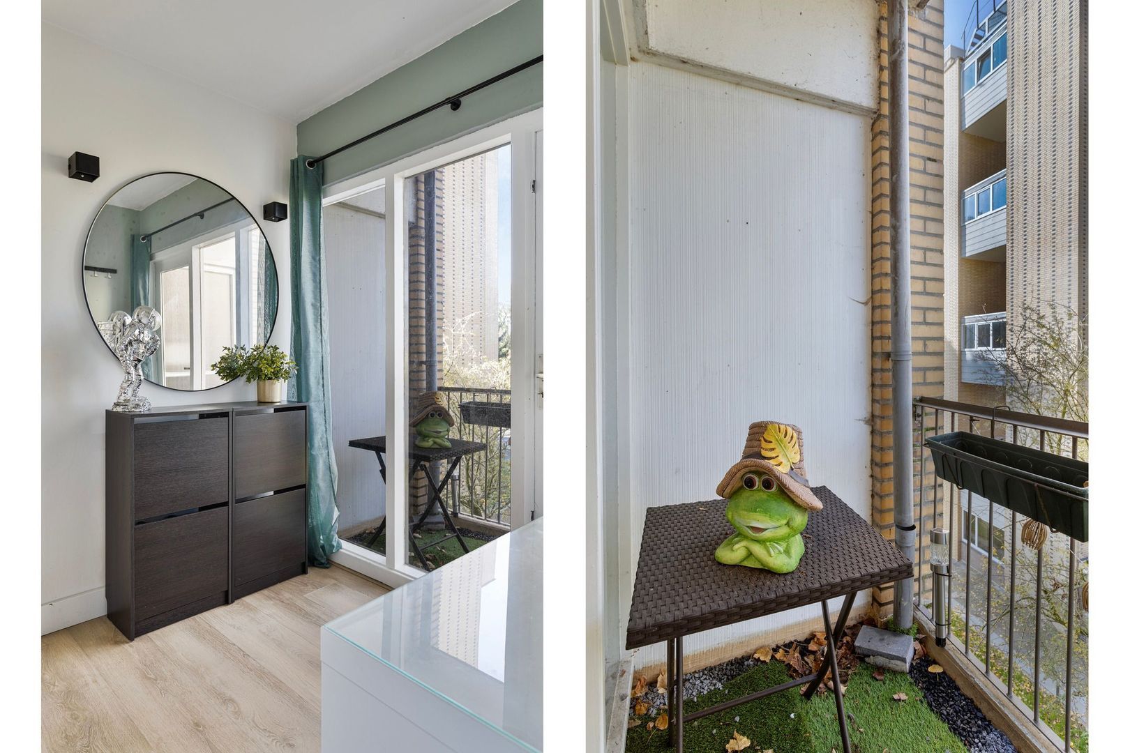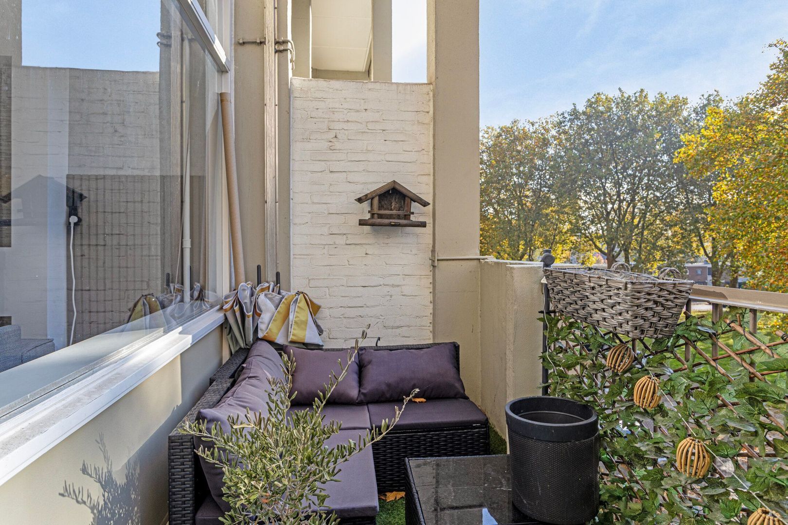 Middels openslaande deuren bereikt u het hoofdbalkon aan de straatzijde. Aan de hoekzijde vindt u nog een tweede balkon.