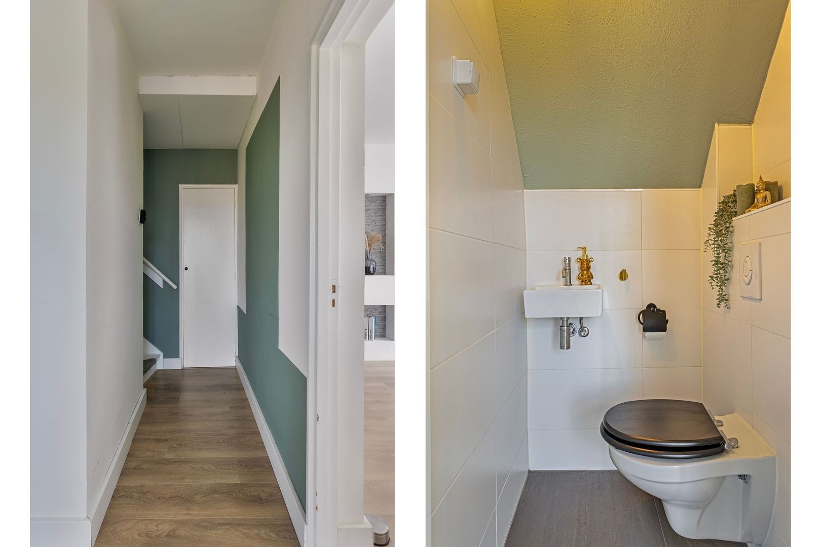 Het toilet is eveneens in 2021 vernieuwd. De toiletruimte is voorzien van een wandcloset, fontein en is vrijwel volledig betegeld met antraciet vloertegels en witte wandtegels.