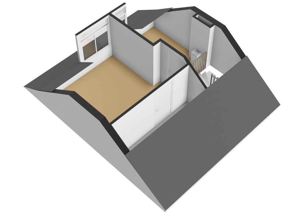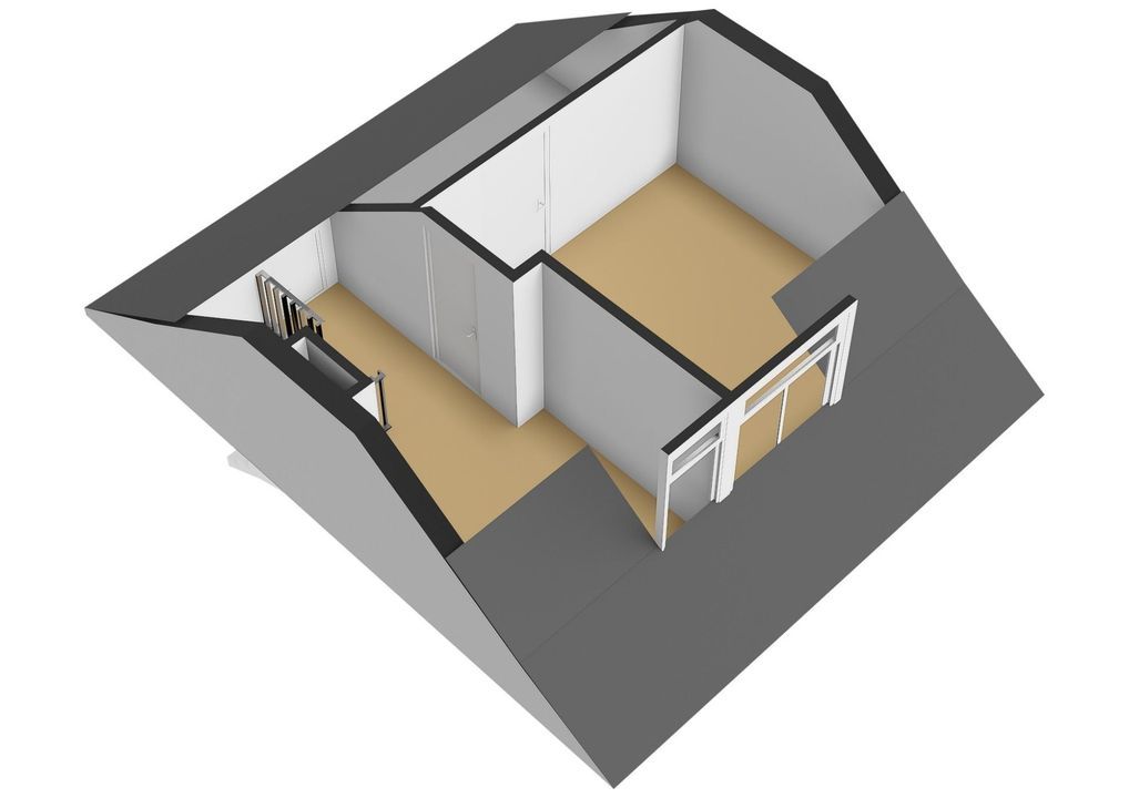 De overloop is voorzien van een laminaatvloer en biedt plaats aan de cv-installatie (Intergas HR, 2008) en veel bergruimte. De zolderkamer (ca. 13 m²) beschikt over een hardhouten dakkapel met dubbel glas en eveneens bergruimte in de schuine dakvlakken. De noordzijde van de zolder is geïsoleerd.