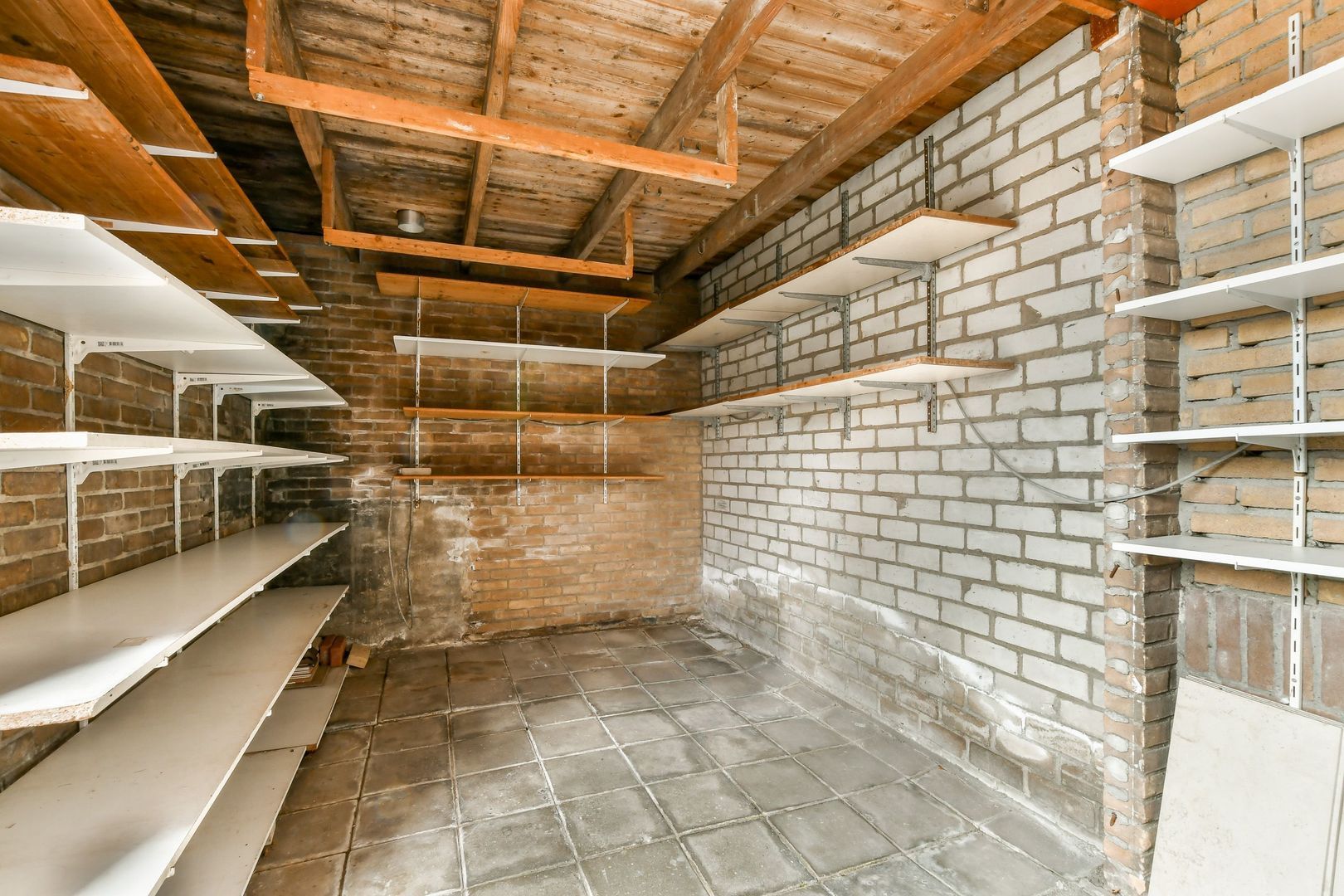 De achtertuin (ca. 8,5 m diep en bijna 3,5 m breed) is grotendeels betegeld, voorzien van een gemetselde schutting en een achterom. Achterin staat een stenen berging (ca. 9 m²) met elektra.