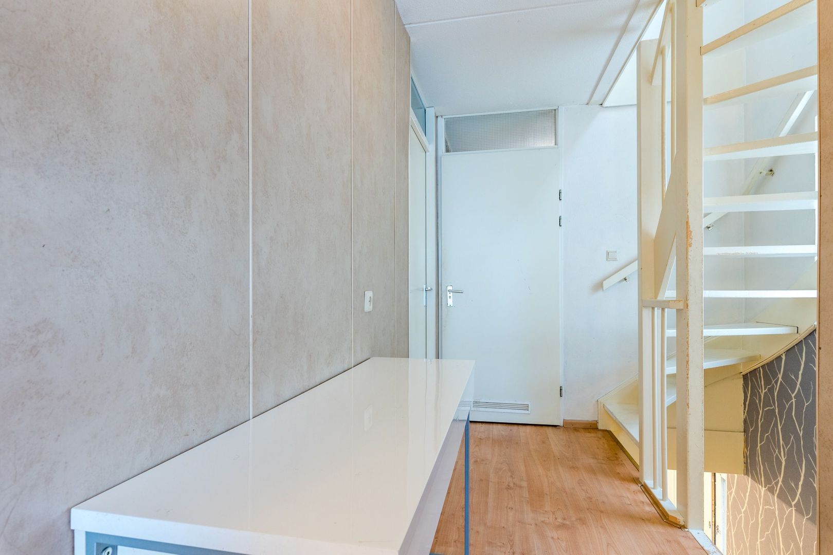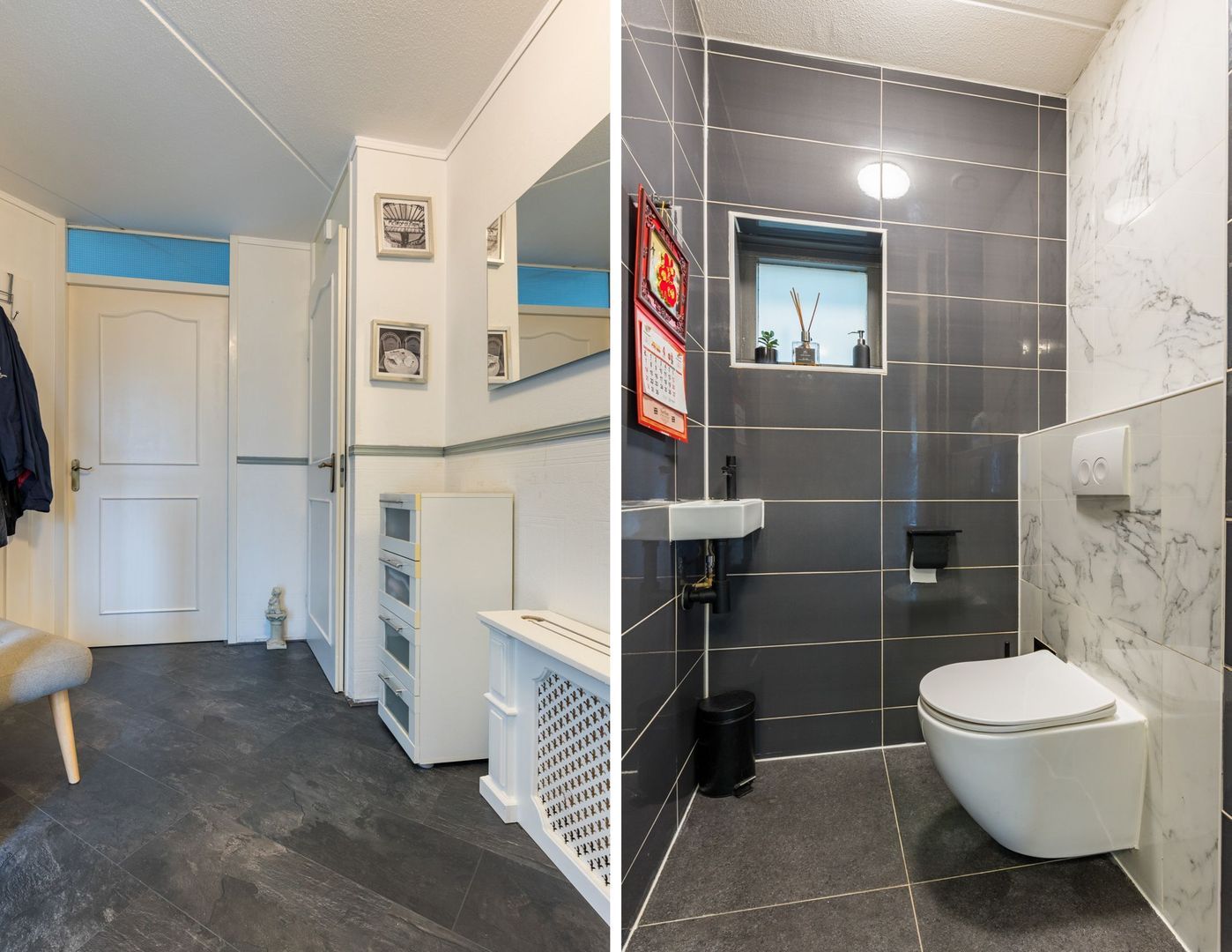 Entree, ruime hal met toilet, meterkast, provisiekast en toegang tot de woonkamer.