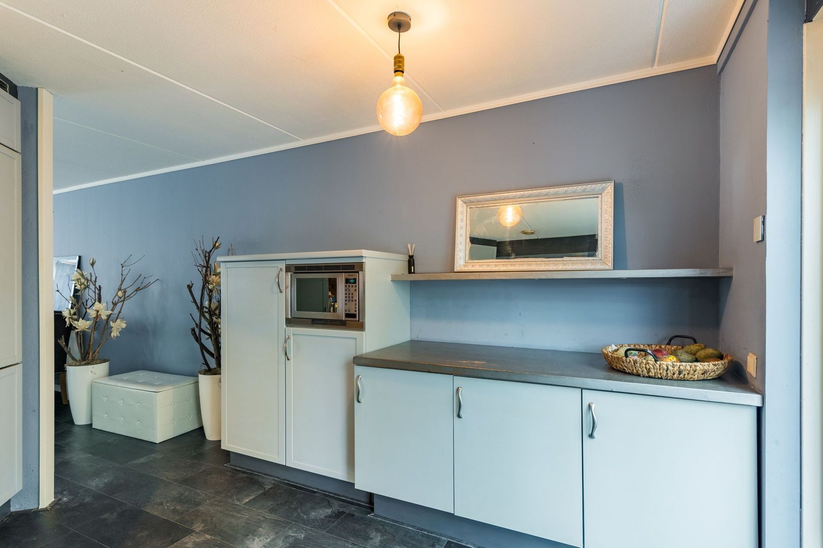 De keuken bevindt zich aan de achterzijde. De keuken heeft eveneens een speelse indeling en is voorzien van 2 keukenblokken met apparatuur.