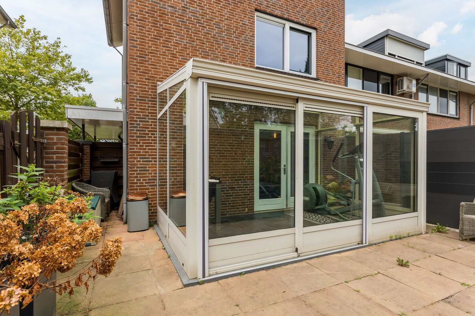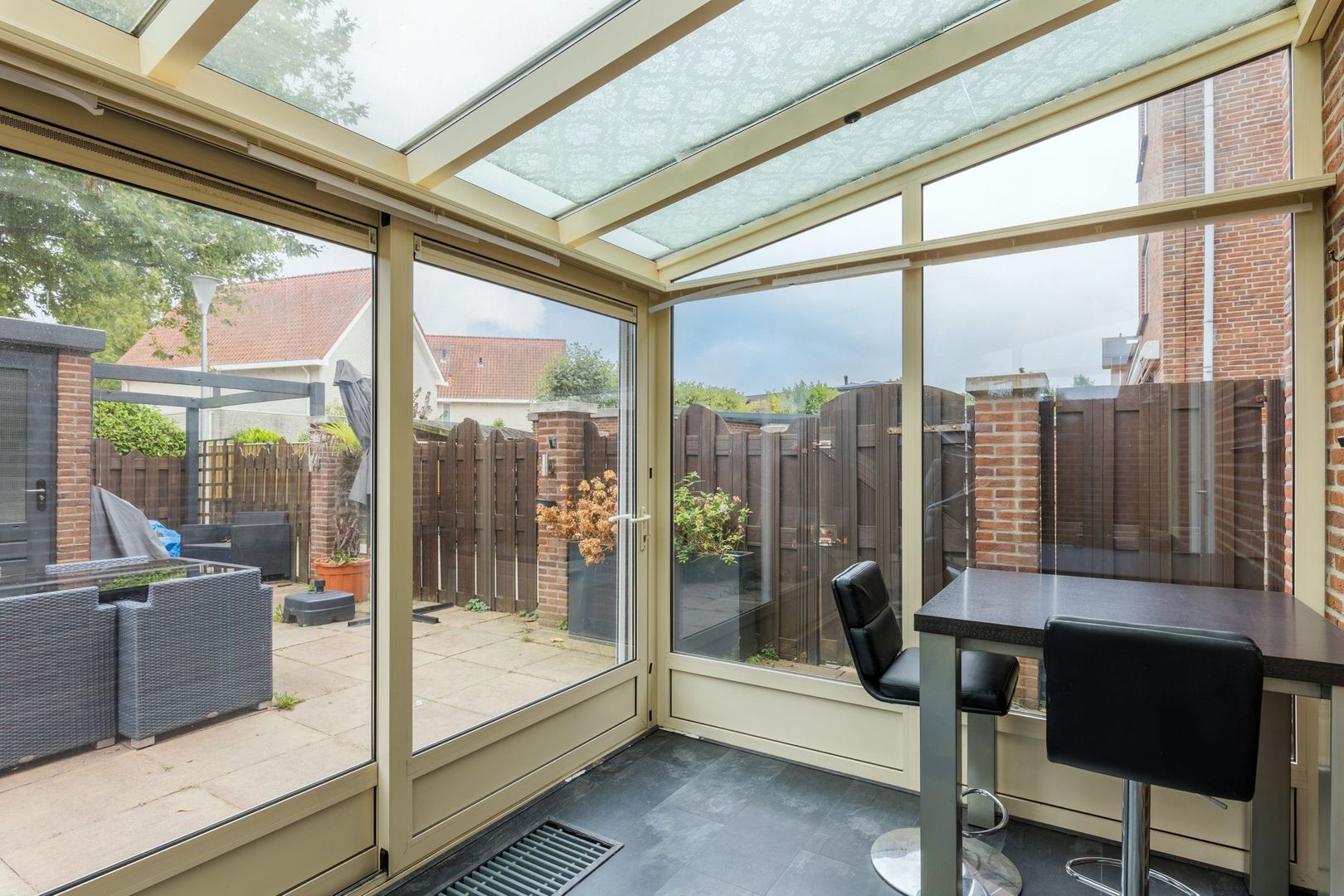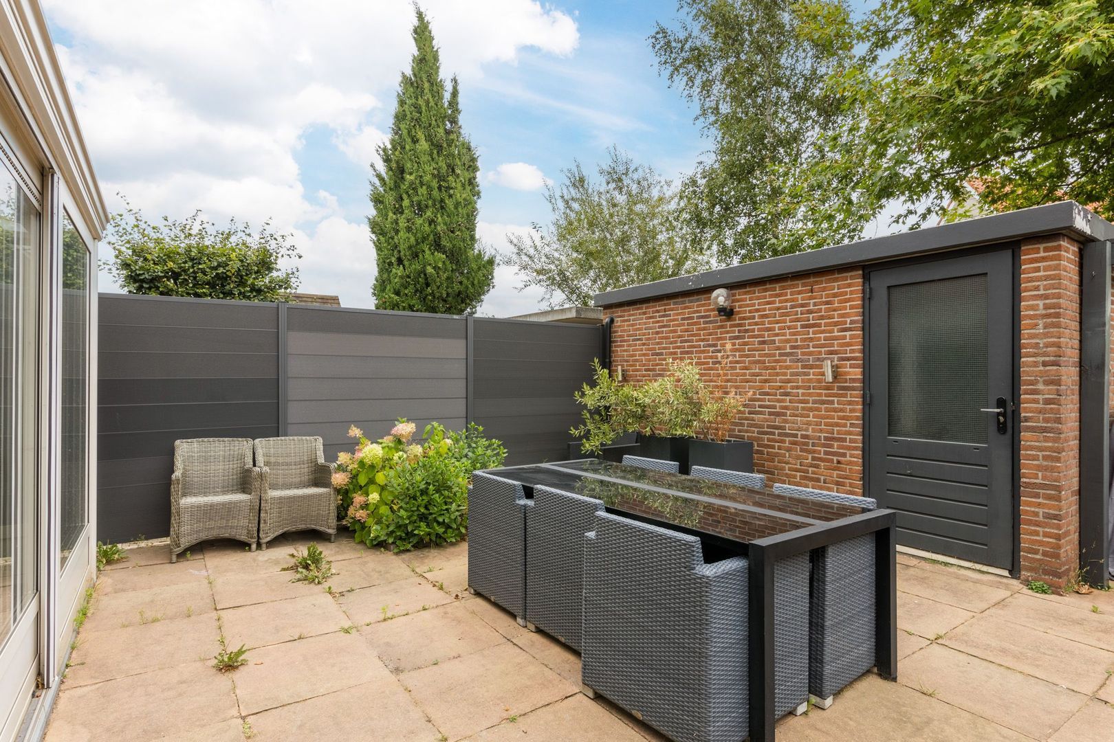 Via de openslaande deuren bereikt u de serre en de achtertuin. De tuin is gelegen op het zuidoosten. Achterin de tuin staat een stenen berging en de tuin heeft een poort naar de het uitpad.