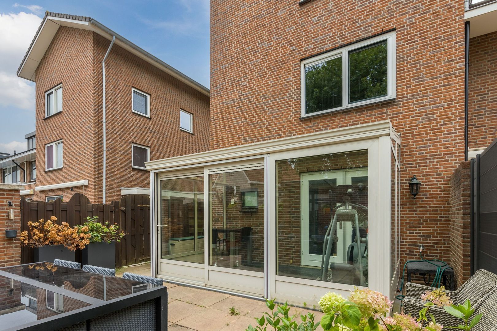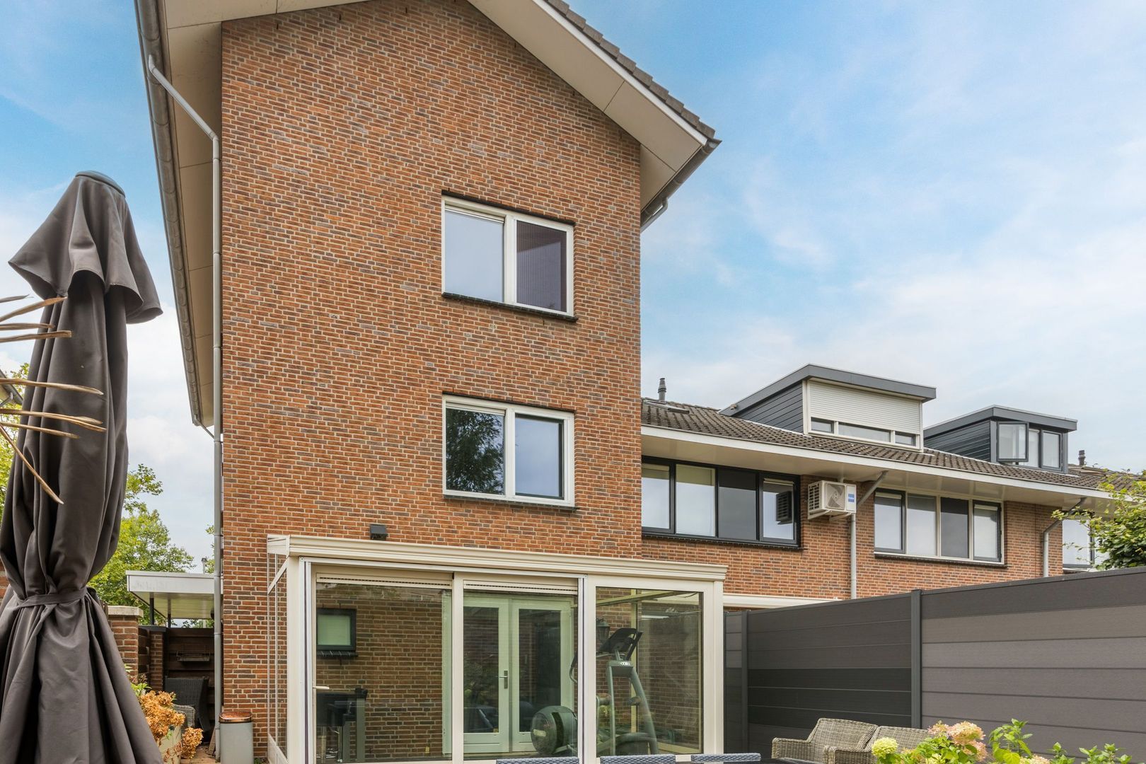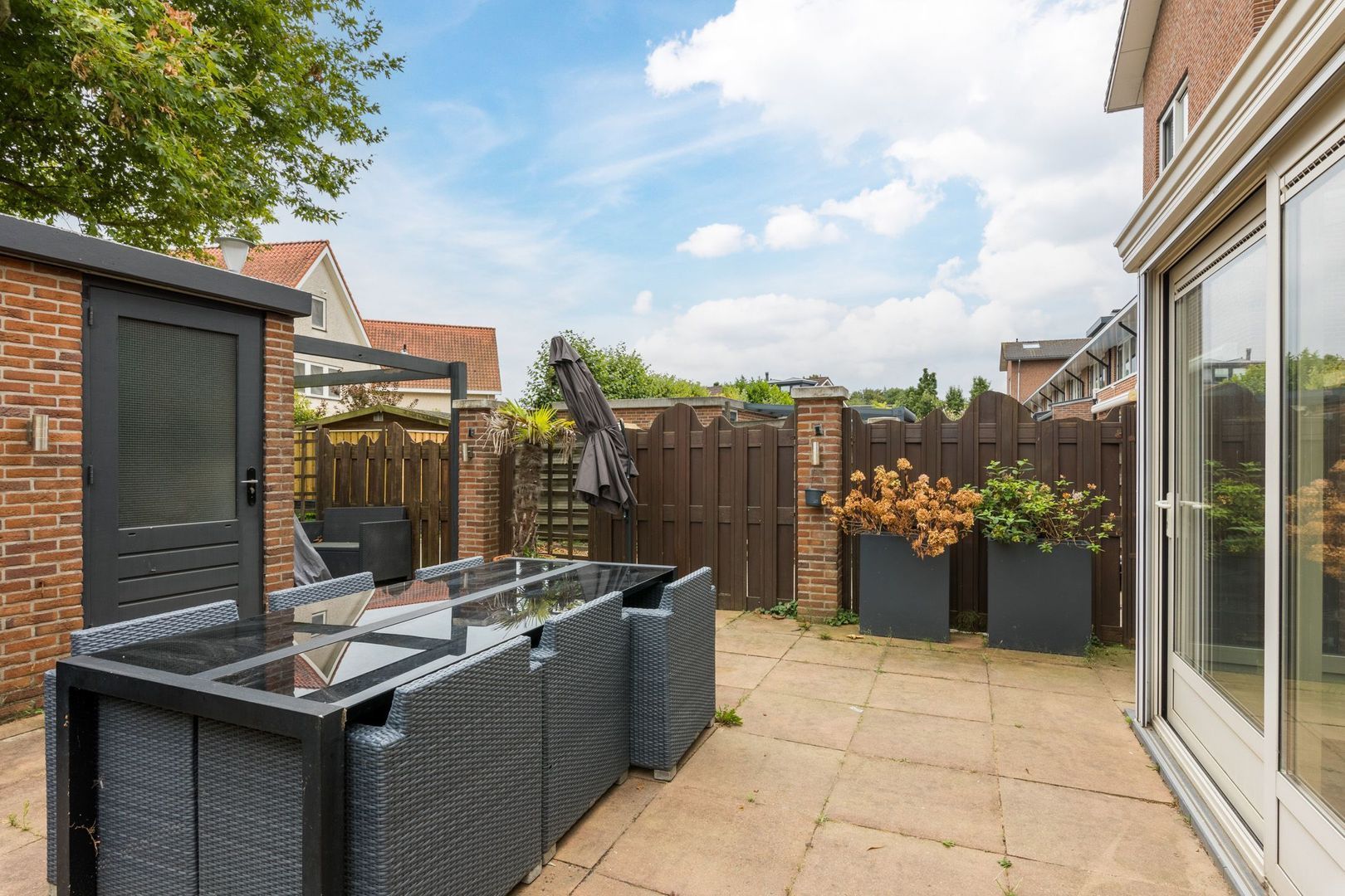 Via de openslaande deuren bereikt u de serre en de achtertuin. De tuin is gelegen op het zuidoosten. Achterin de tuin staat een stenen berging en de tuin heeft een poort naar de het uitpad.