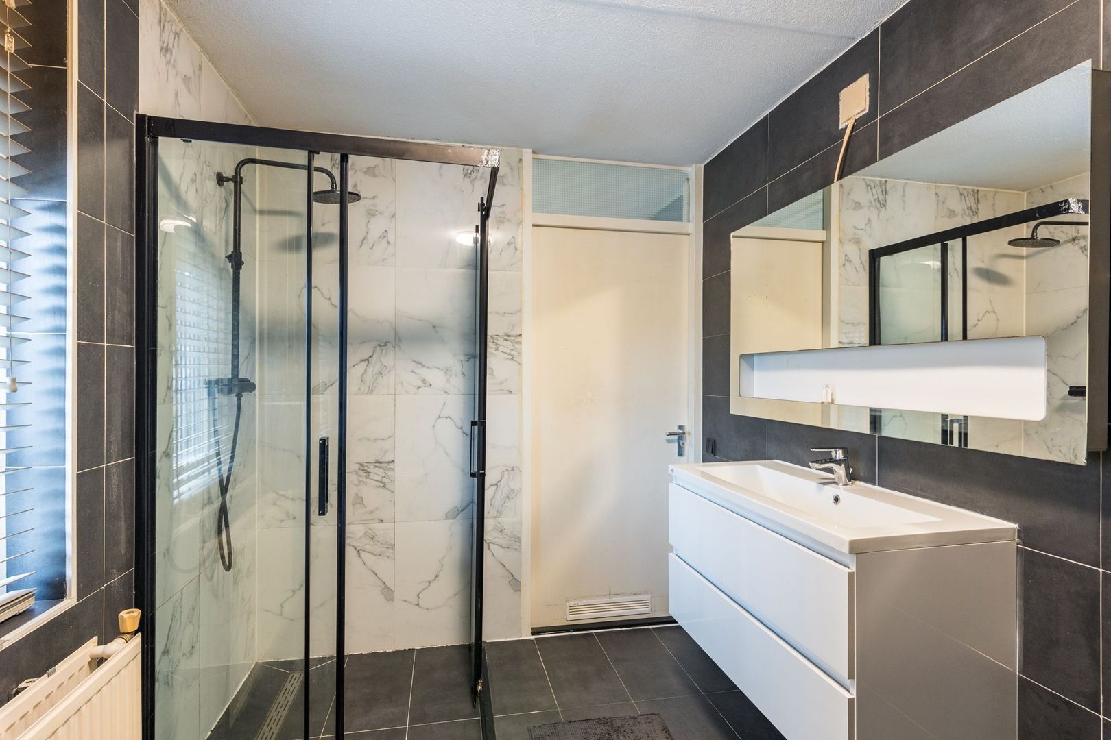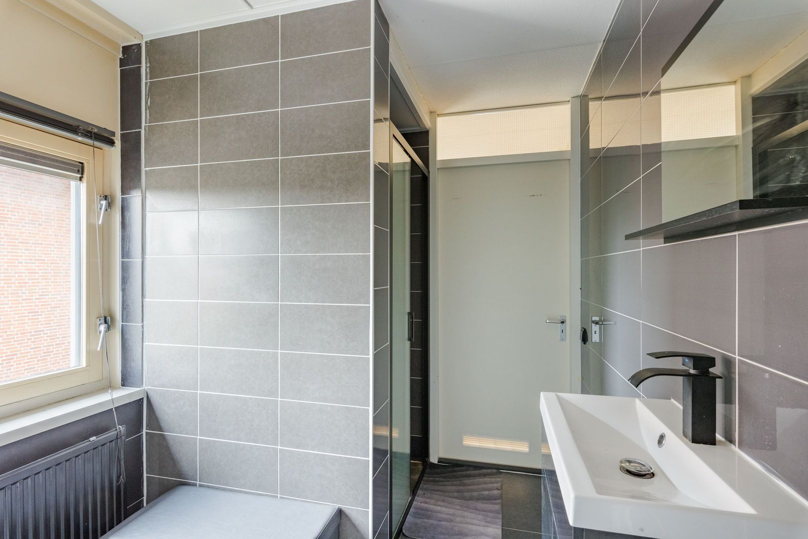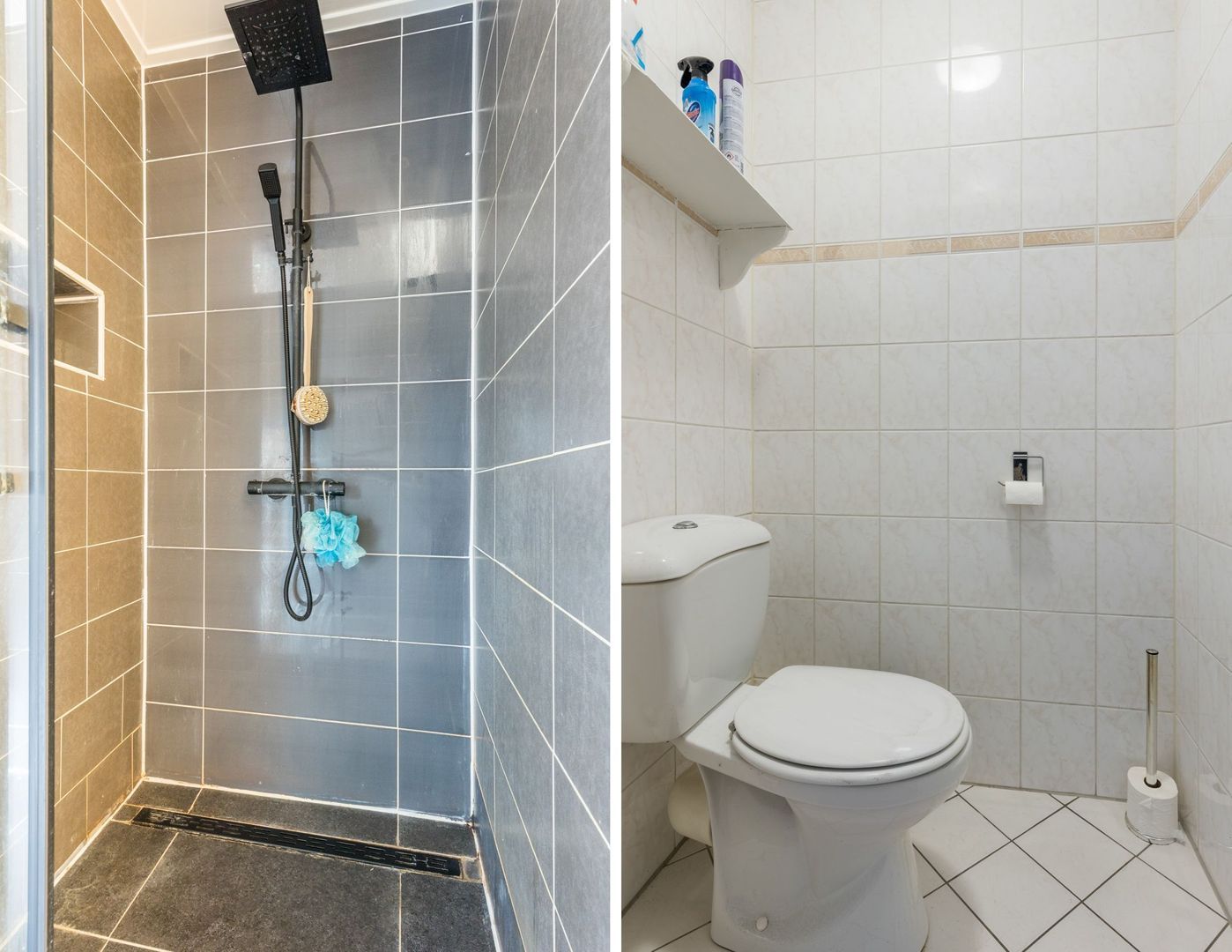 Tweede badkamer van ca. 8,5 m2 met douchehoek, wastafel, stookruimte en wasmachineaansluiting. De toilet is apart.