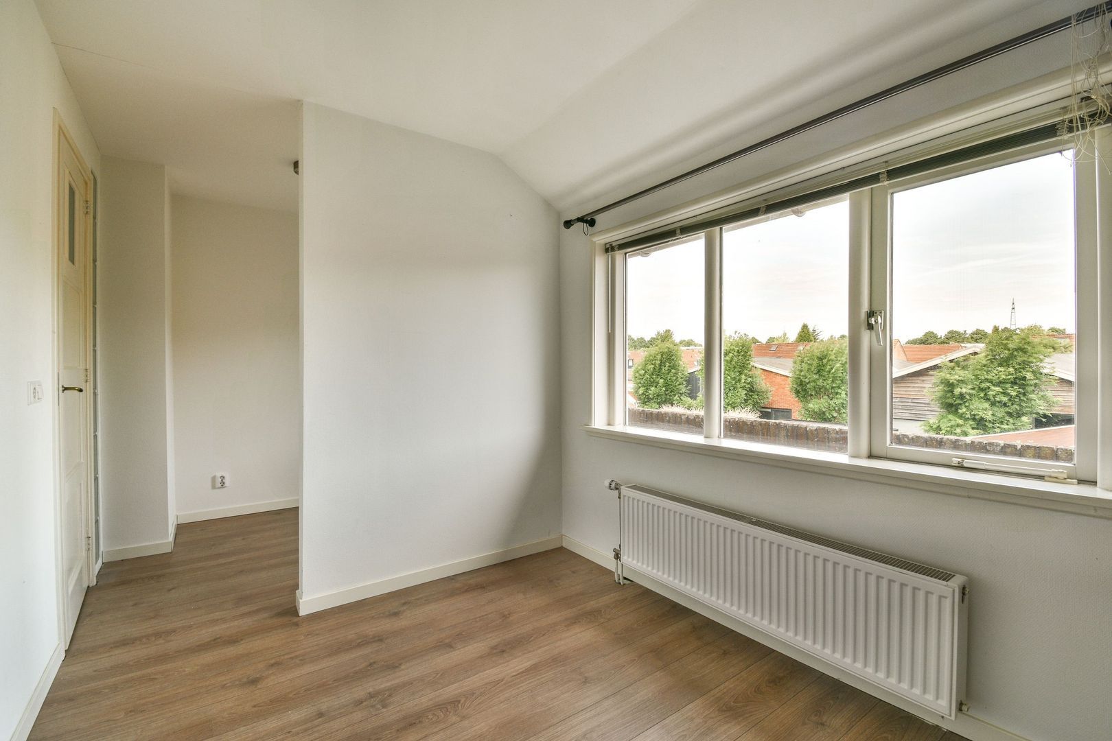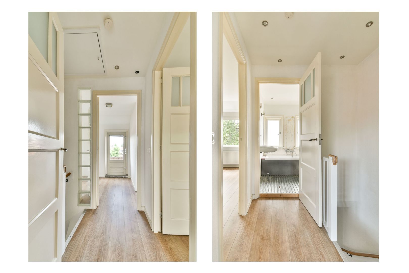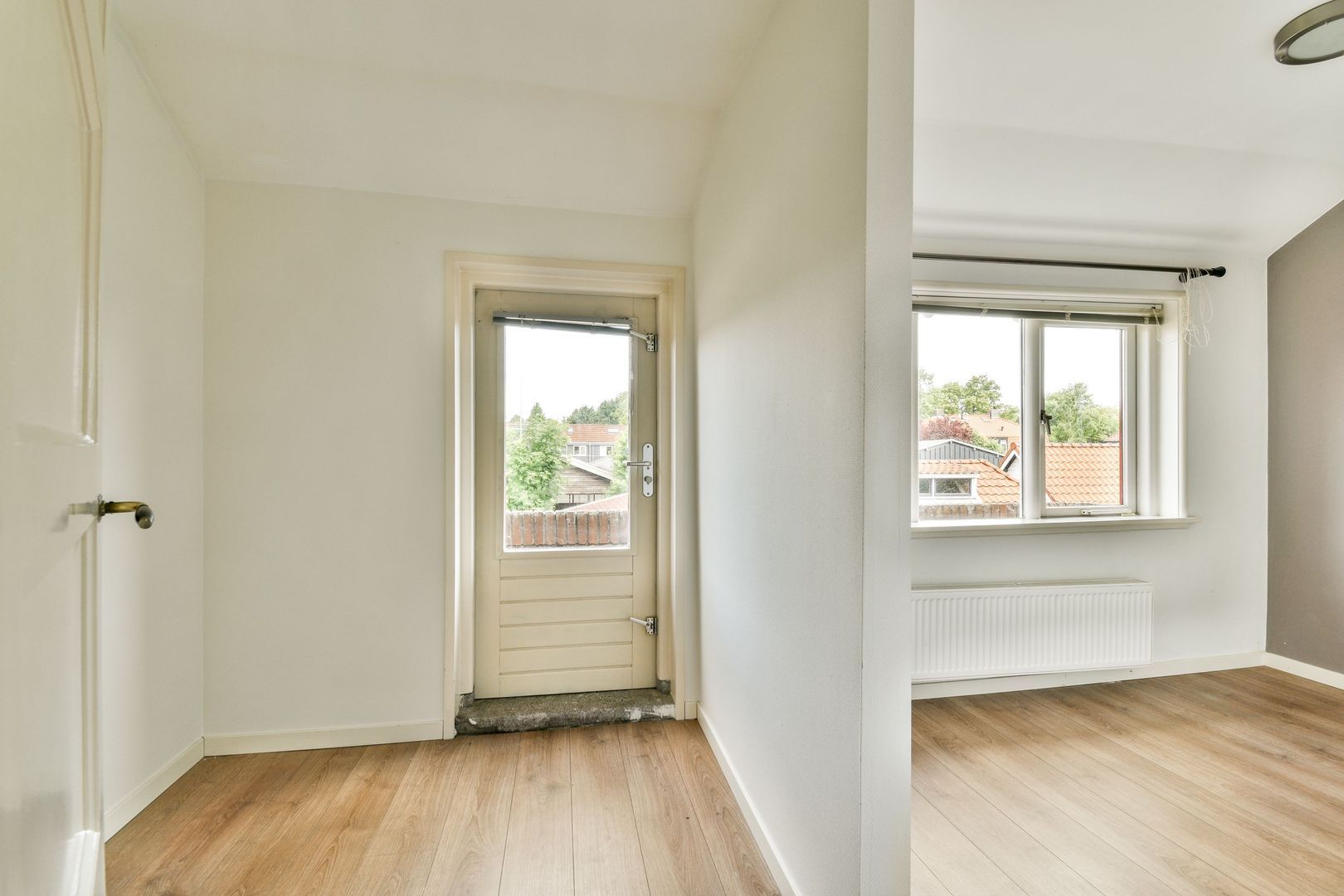 Overloop met toegang tot alle vertrekken op deze verdieping. 2 slaapkamers van ca. 12 m2 en 11,5 m2. De slaapkamer aan de achterzijde heeft toegang tot het balkon van ca. 5 m2.