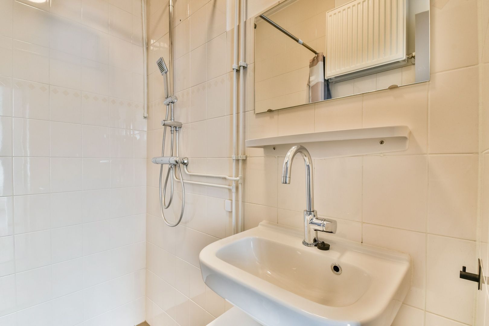 De CV-opstelling en aansluiting voor de wasmachine bevinden zich in een bergruimte, bereikbaar vanaf het balkon. De meterkast is gelegen in het portiek.