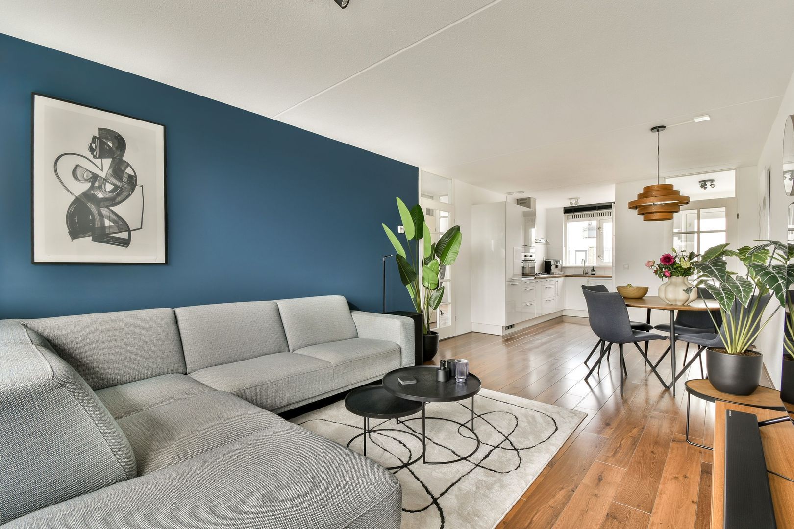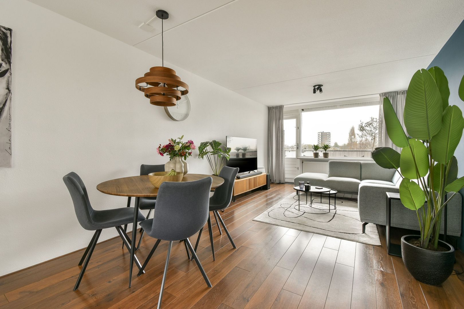De doorzonwoonkamer met open keuken vormt een heerlijk lichte leefruimte en biedt toegang tot het balkon. De verdieping is voorzien van een moderne houtlook laminaatvloer en strak afgewerkte wanden.