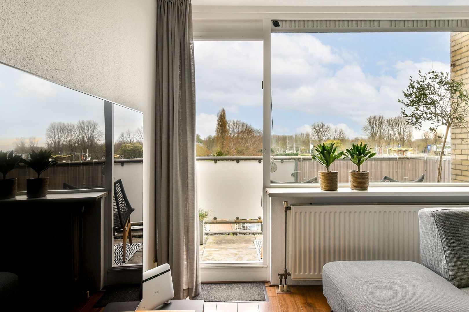 Via de woonkamer stap je zo het zonnige balkon op (zuidligging), waar je de hele dag door kunt genieten van het uitzicht over het water.