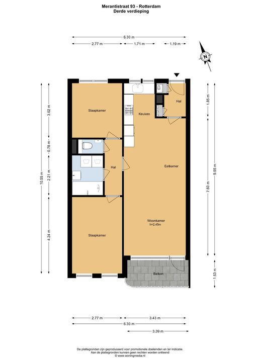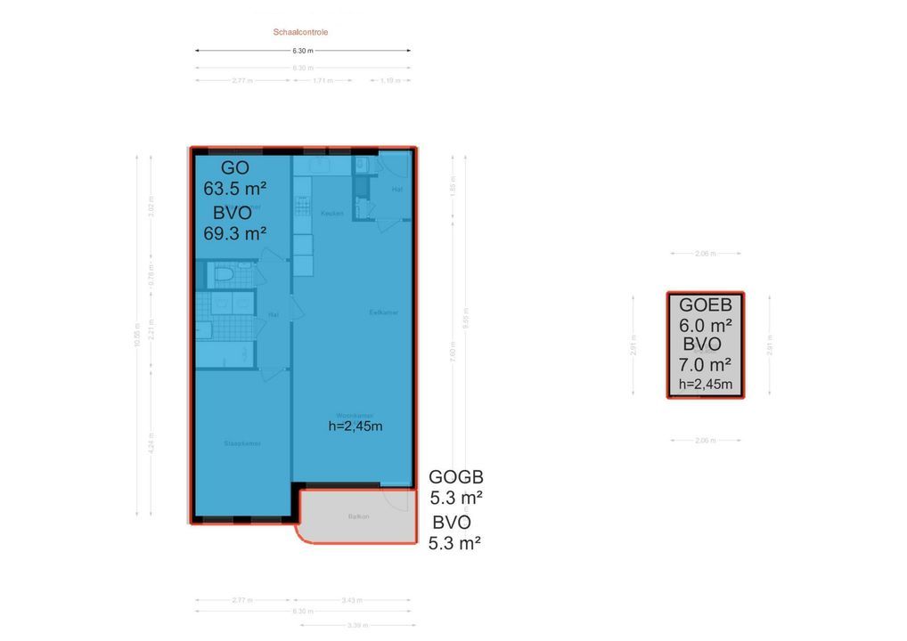 - Woonoppervlak ca. 63 m²;