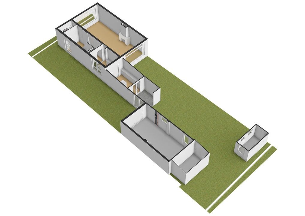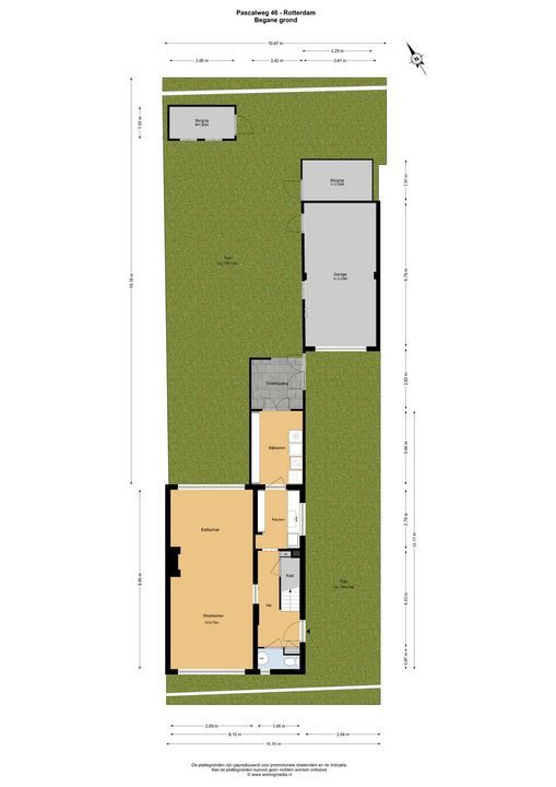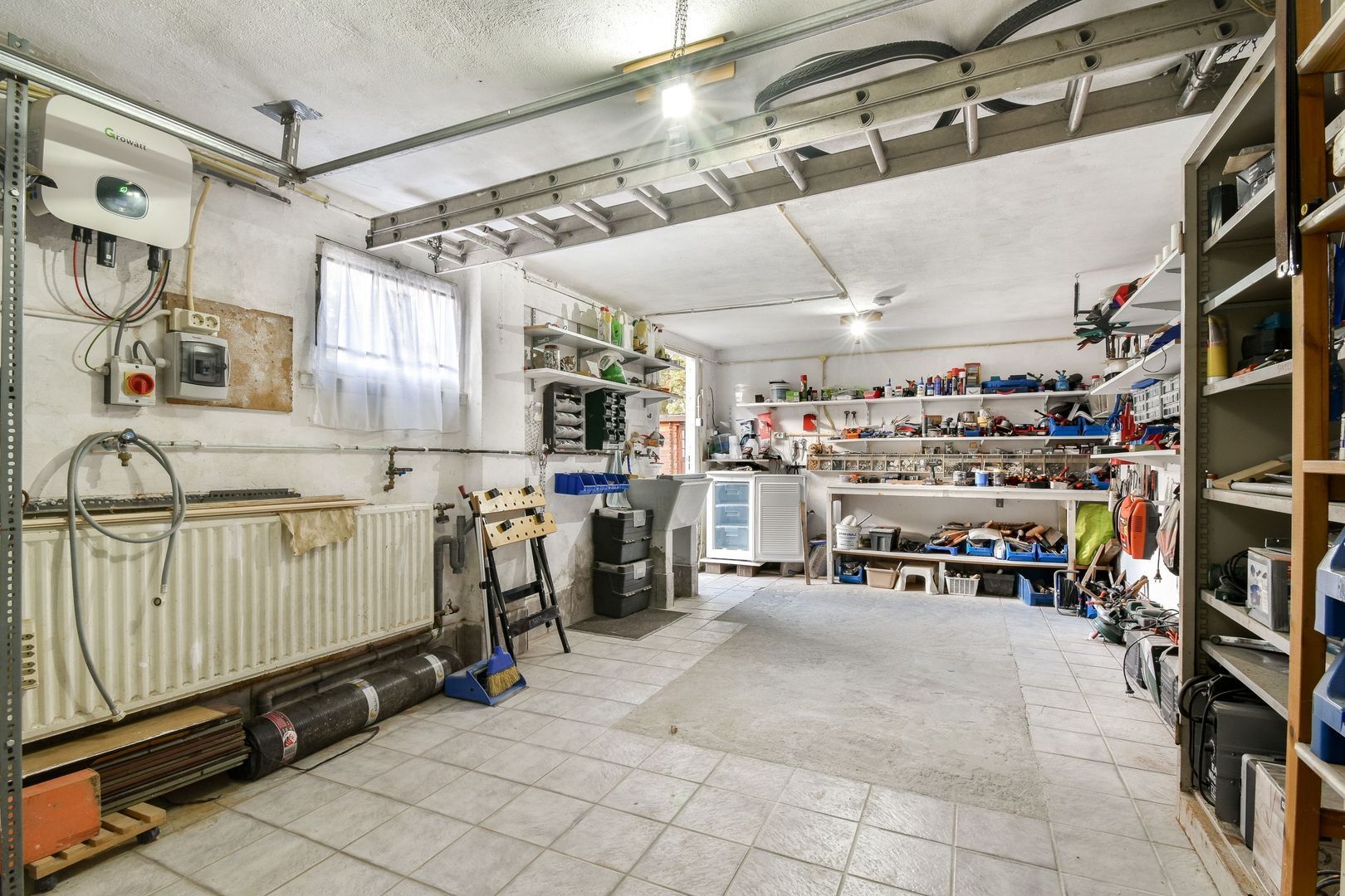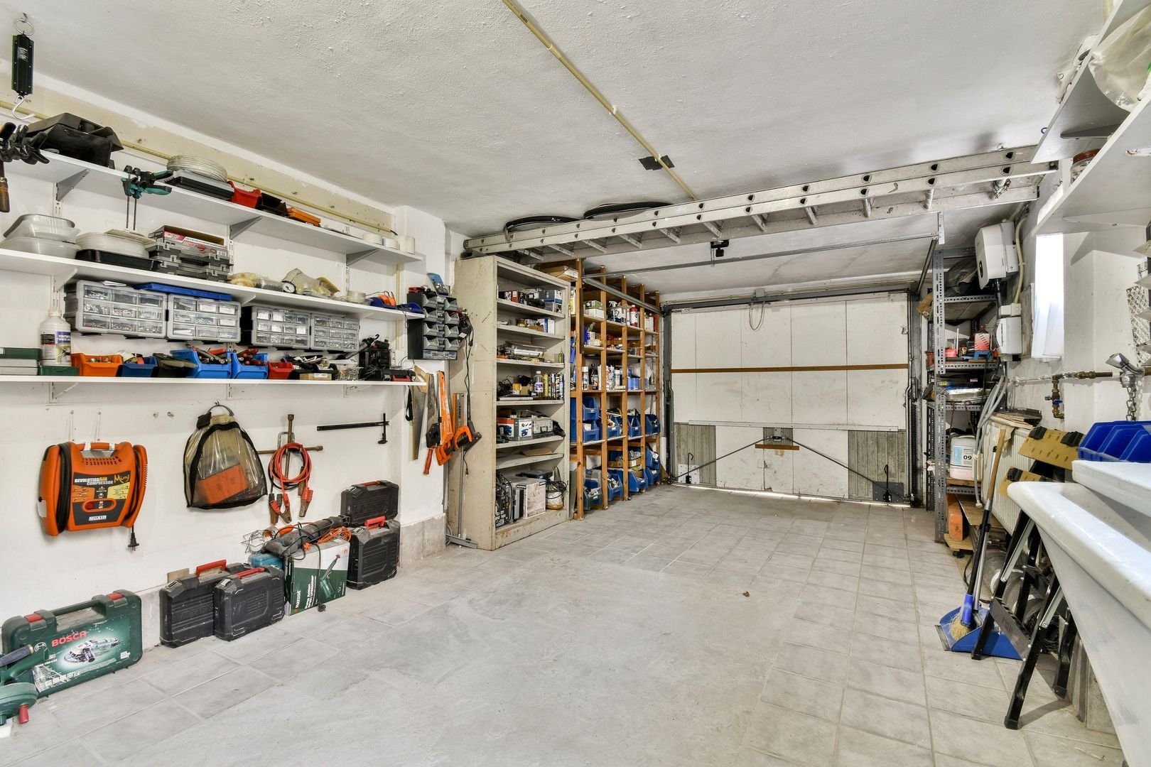 De garage naast de woning ca. 23 m2 is voorzien van een tegelvloer, verwarming, wasbak, water en elektra. Aansluitend bevindt zich nog een houten berging ca. 6,5 m2.