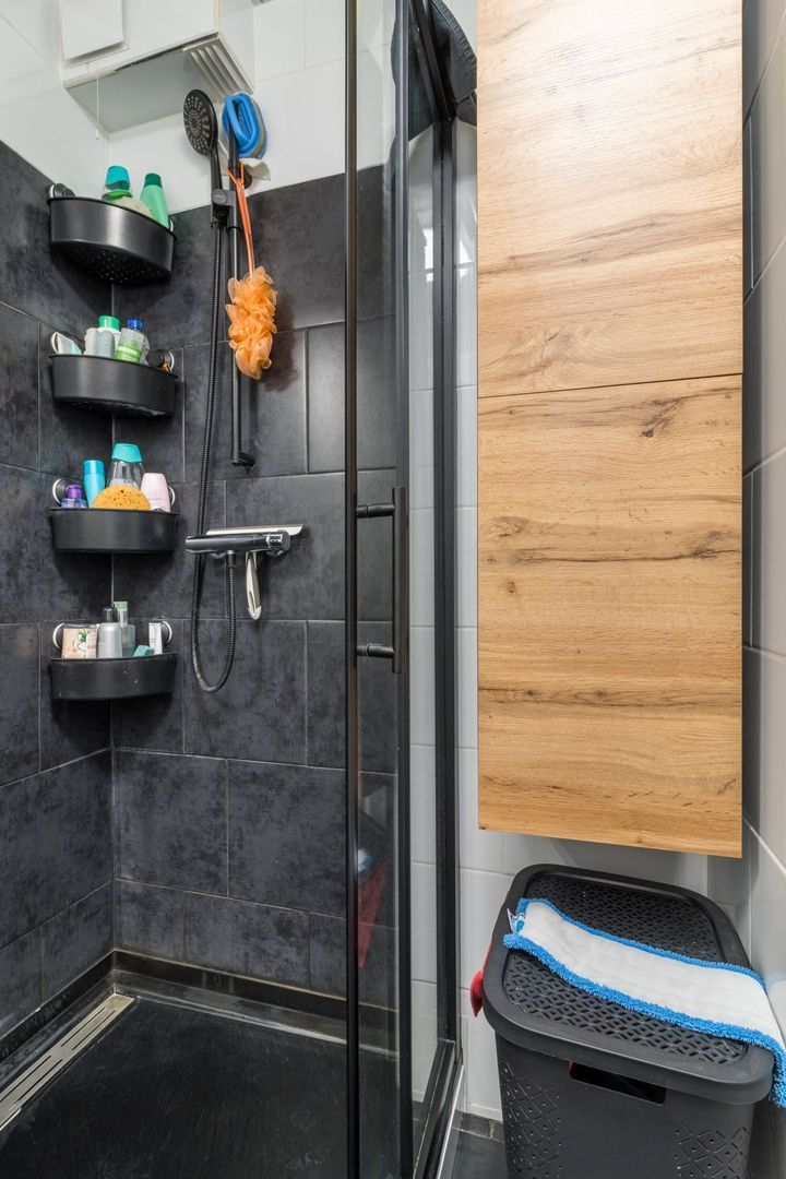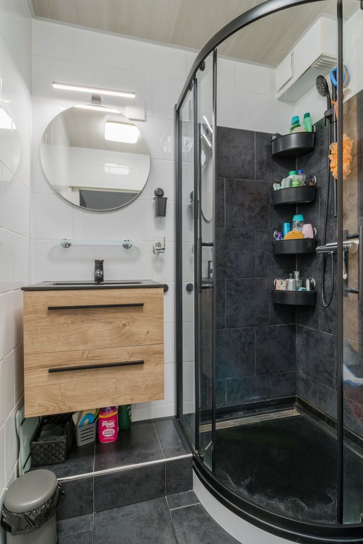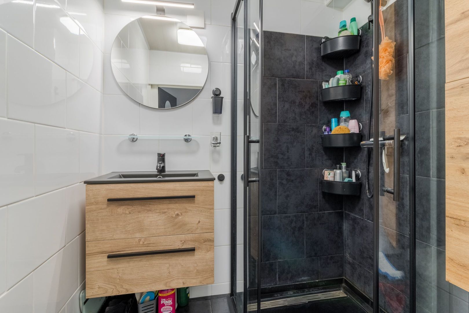 De badkamer is voorzien van een douchecabine, een wastafel in meubel en de toiletruimte is separaat van de badkamer.