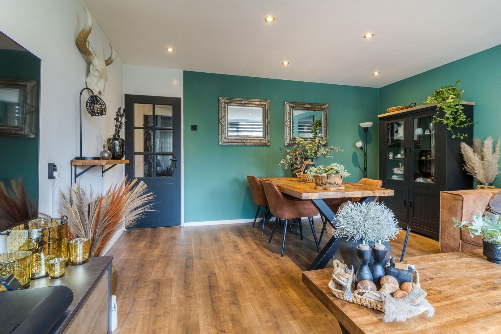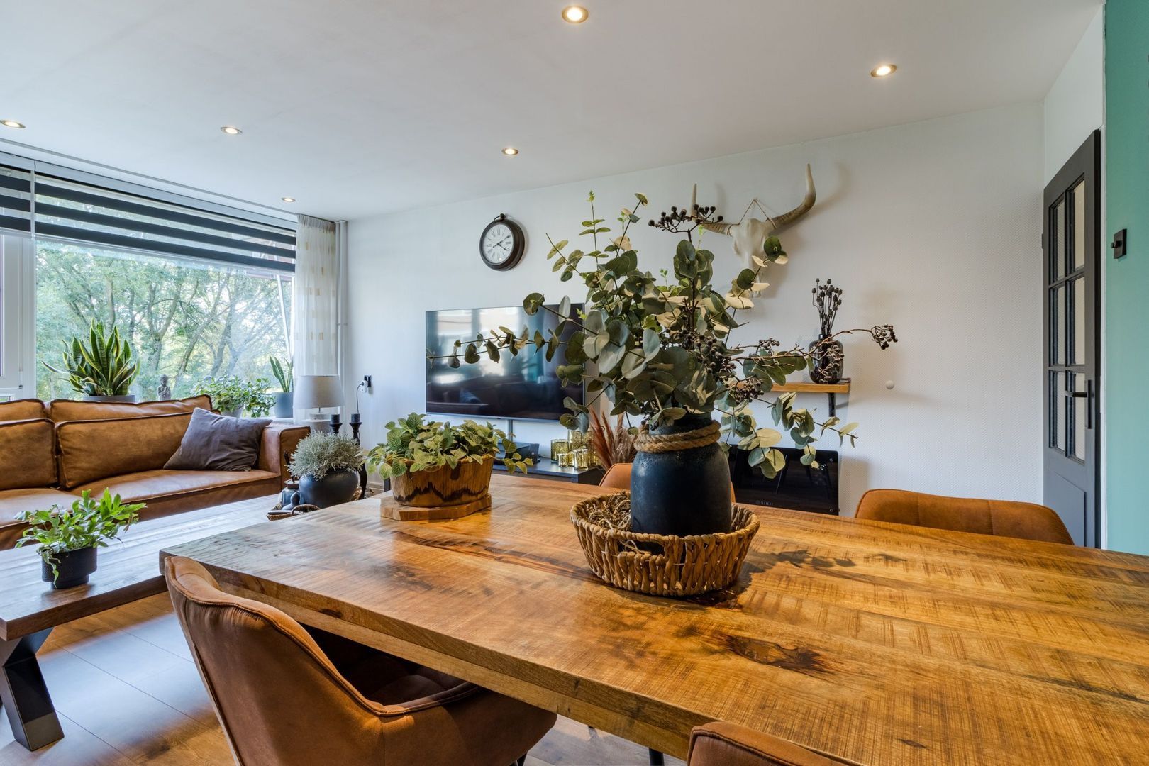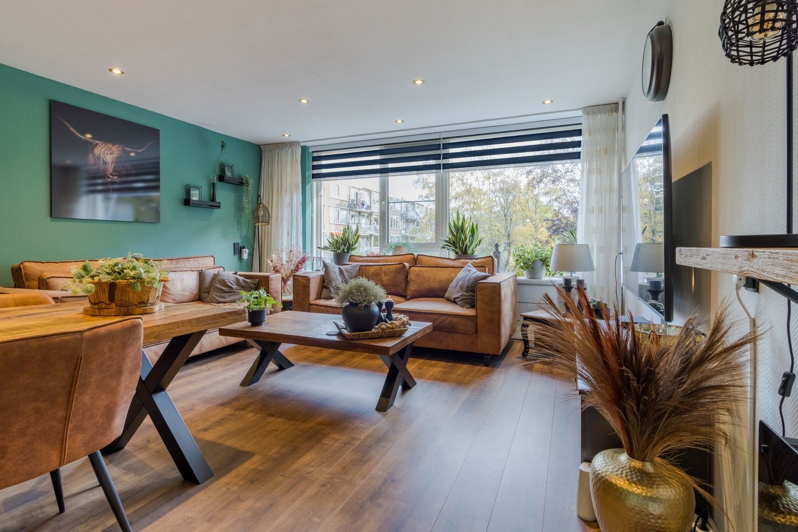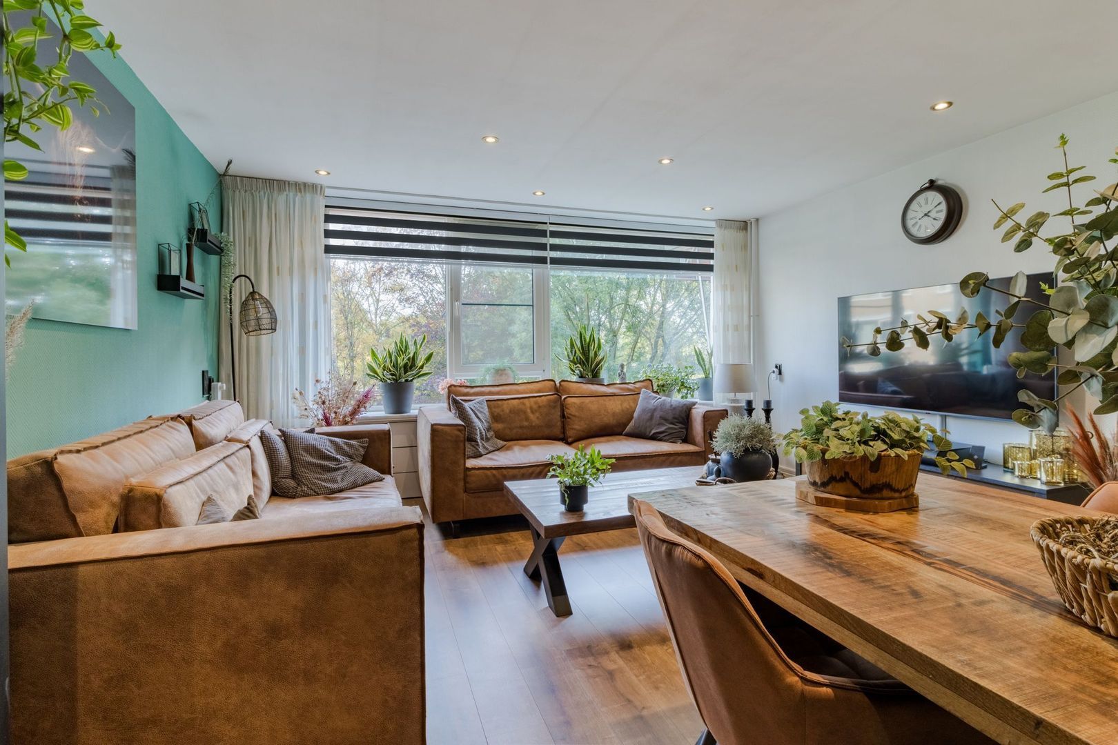 Ruime woonkamer van ca. 25 m2. De woonkamer is voorzien van een fraaie houtlook laminaatvloer en voor de wandafwerking is er gekozen voor glasvlies behang. Vanuit de woonkamer heeft u uitzicht op het achtergelegen park.
