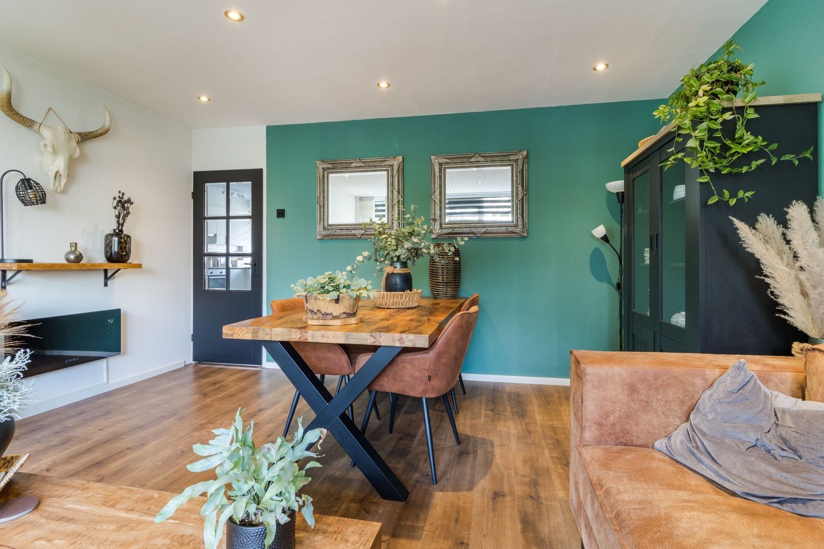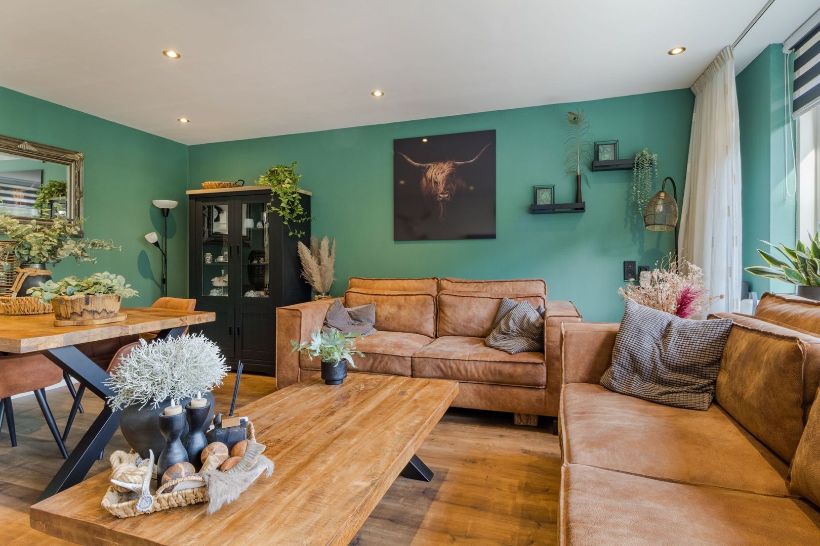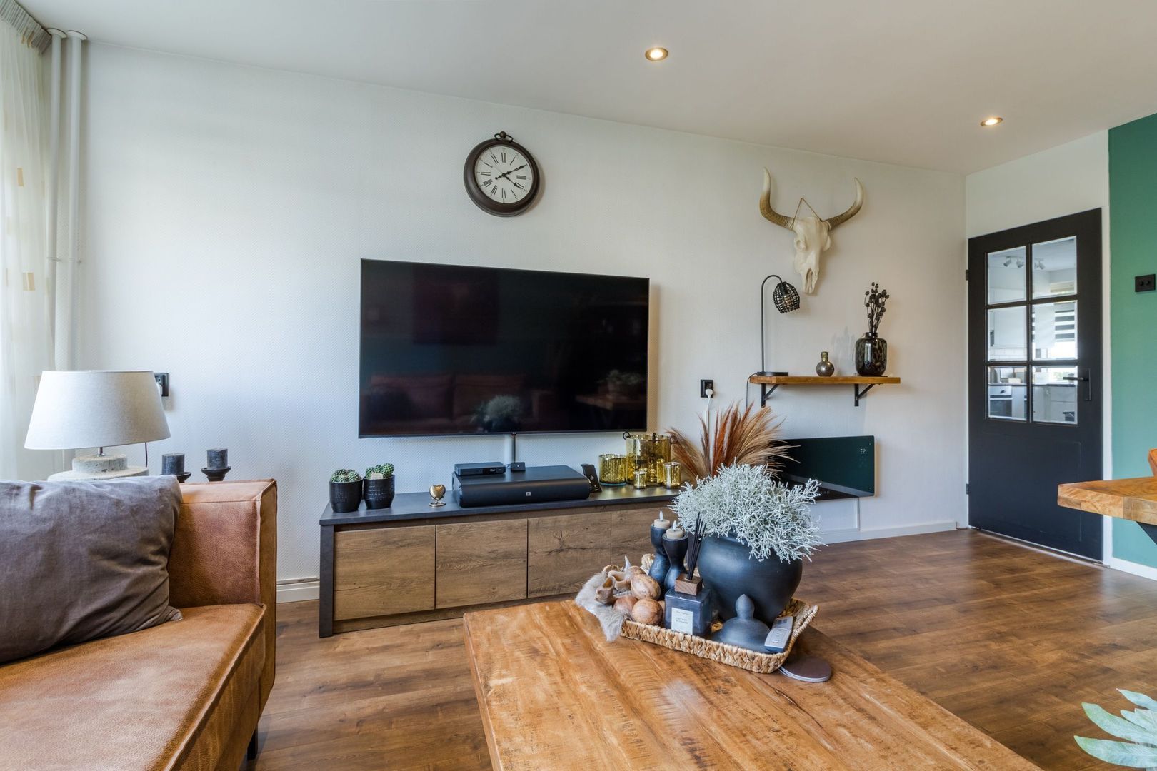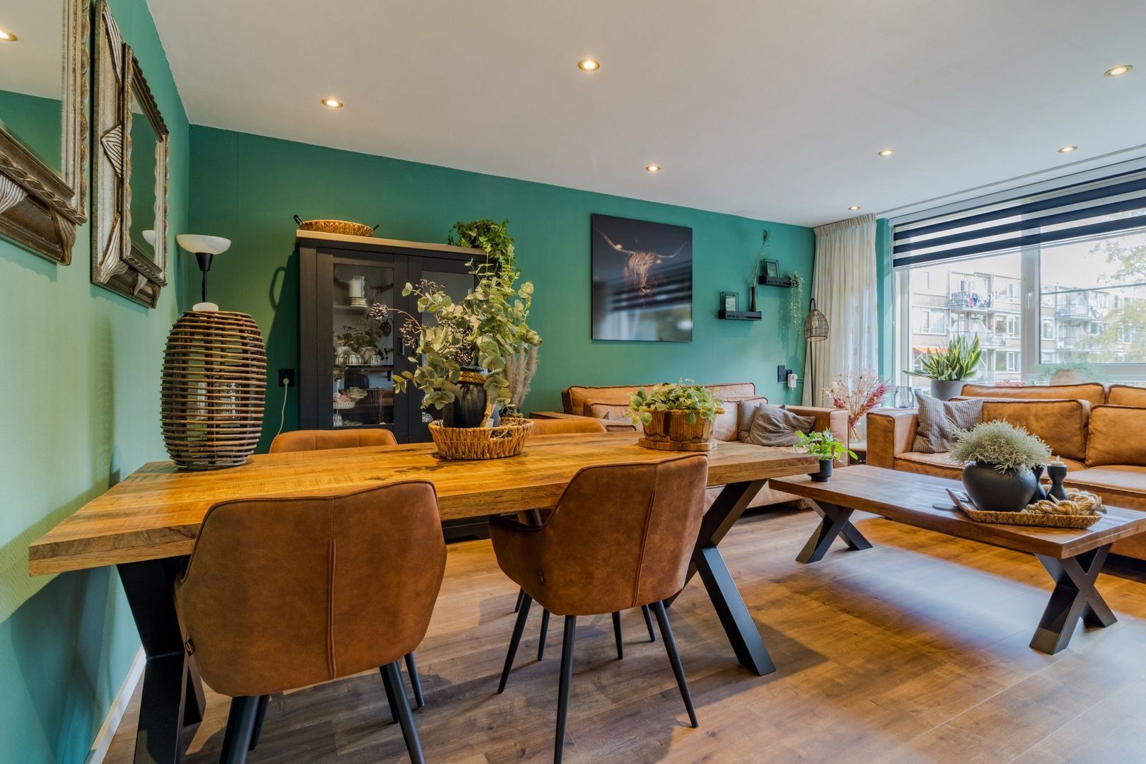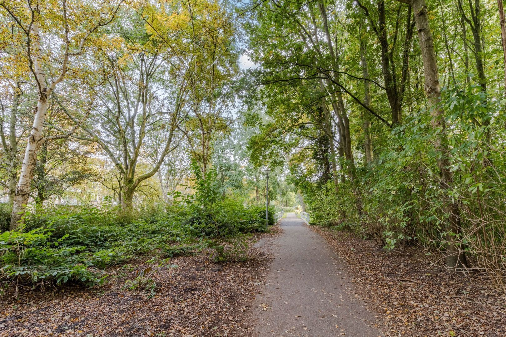 Ruime woonkamer van ca. 25 m2. De woonkamer is voorzien van een fraaie houtlook laminaatvloer en voor de wandafwerking is er gekozen voor glasvlies behang. Vanuit de woonkamer heeft u uitzicht op het achtergelegen park.