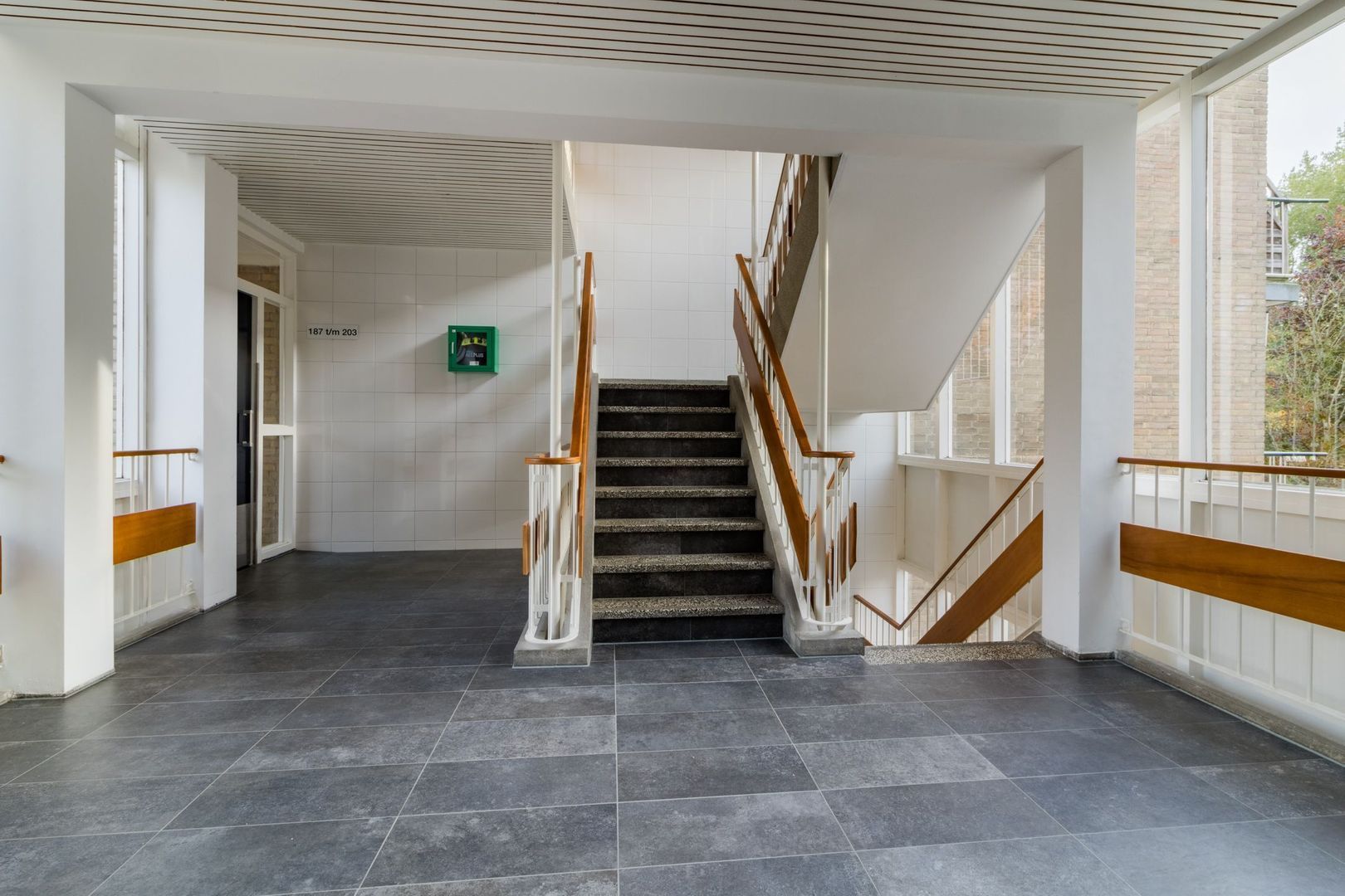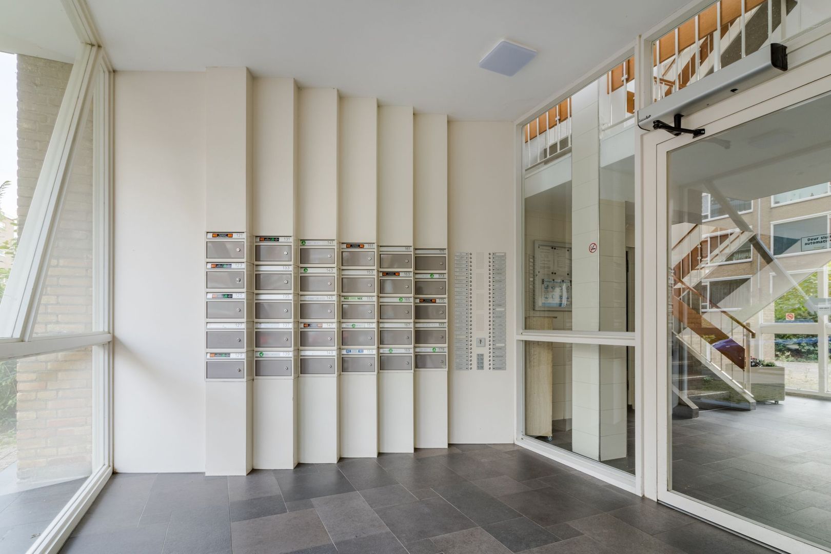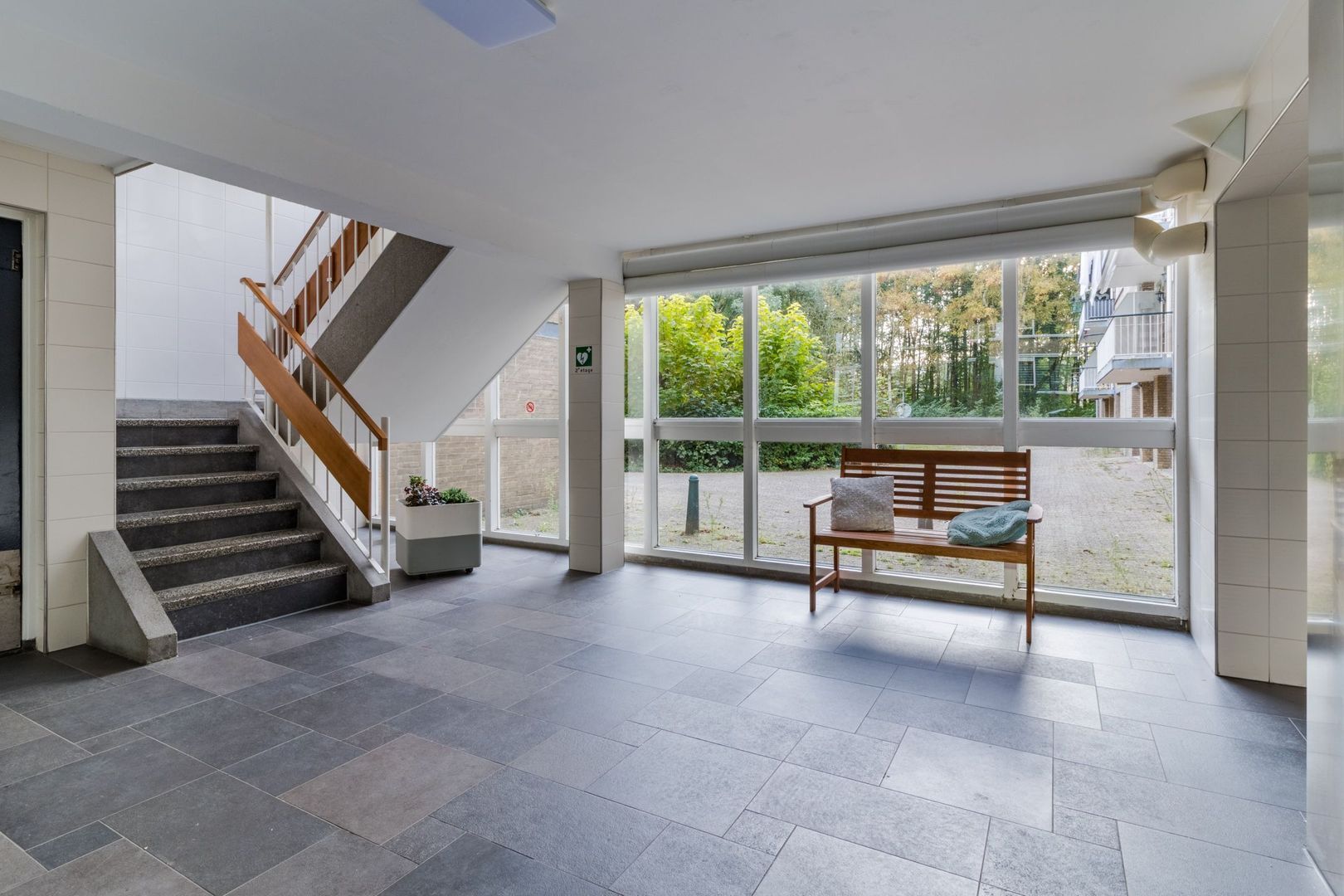 Afgesloten entree, hal met trapopgang, liftinstallatie en toegang tot de bergingen.