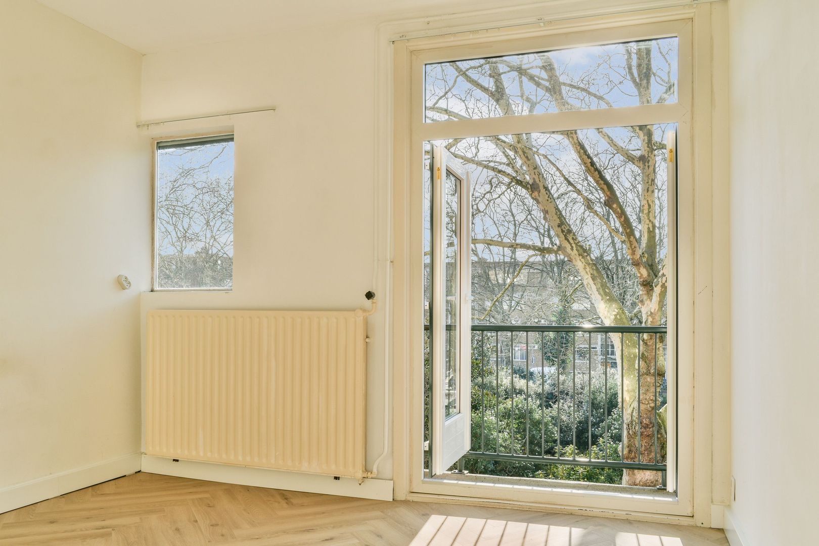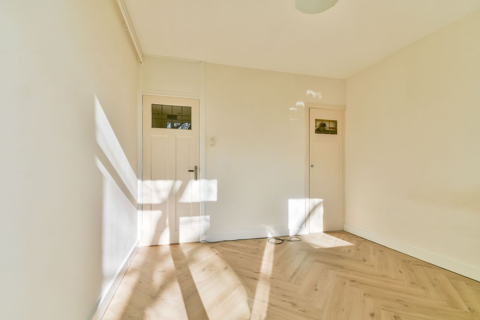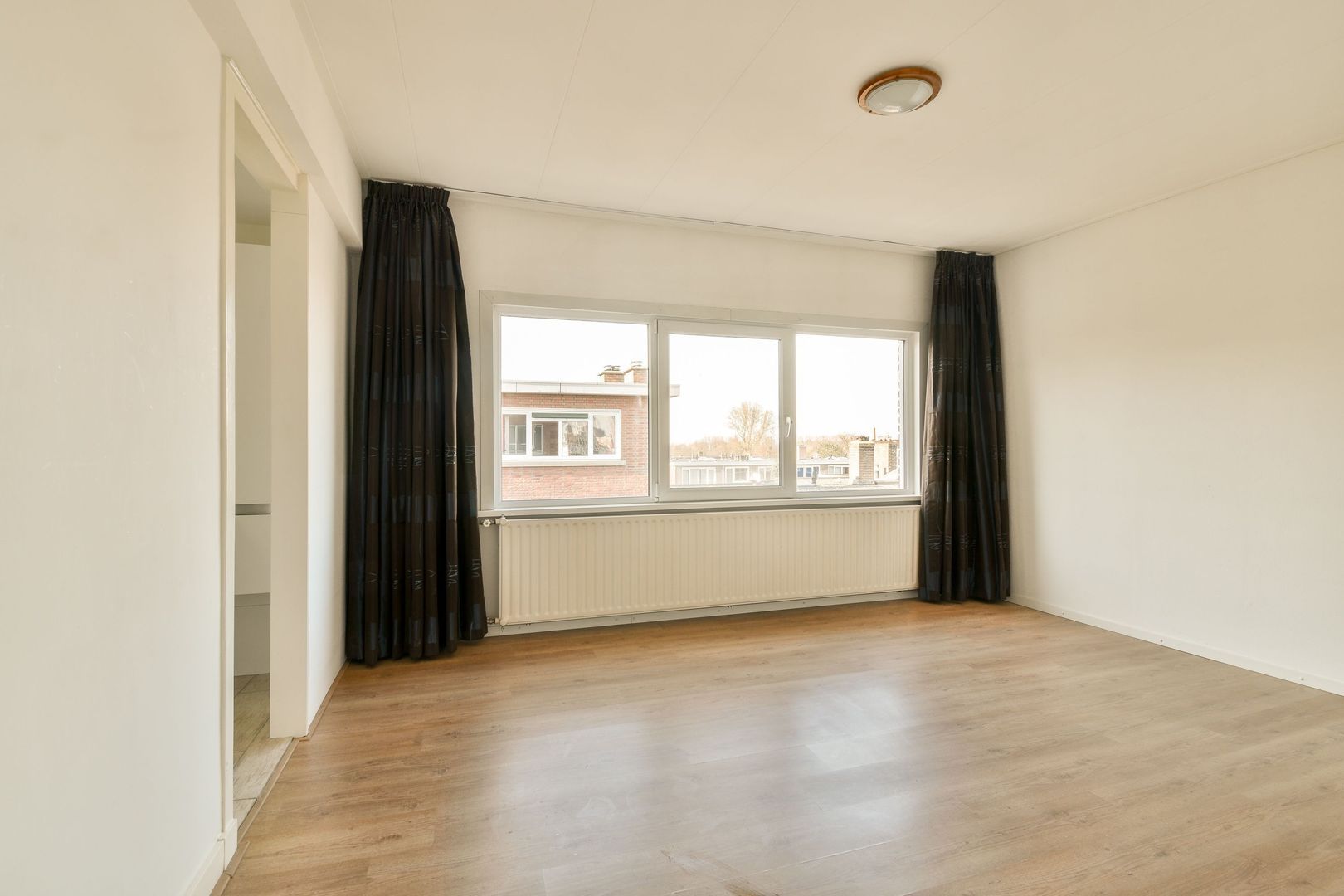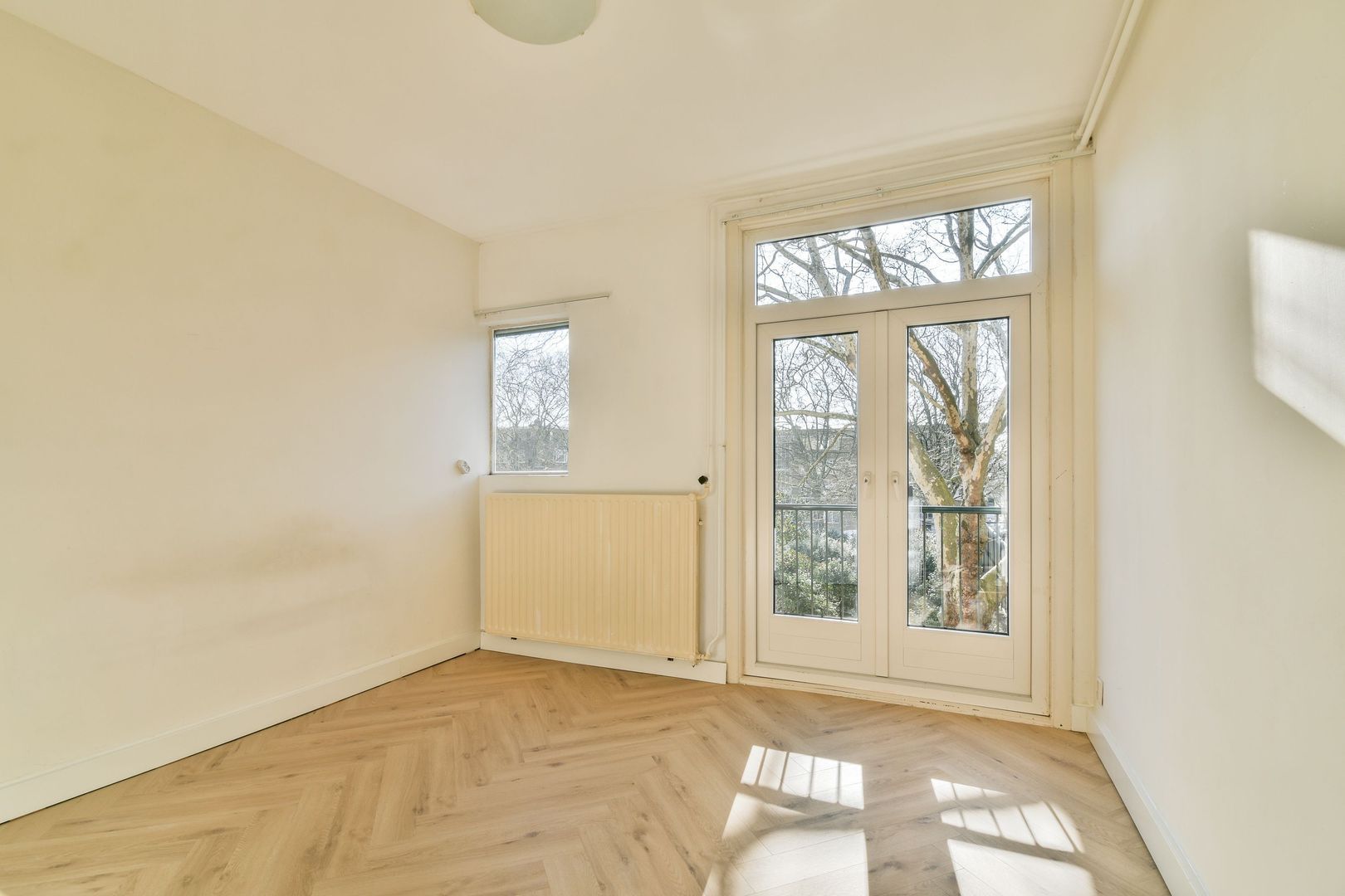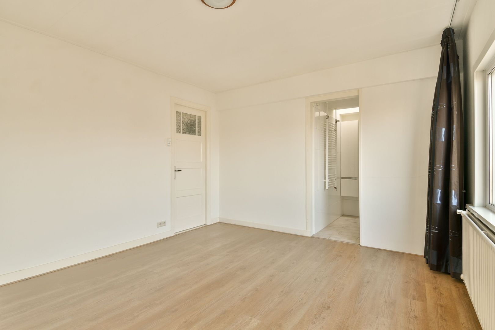 Naast de woonkamer vindt u een ruime (slaap)kamer die eveneens geschikt is als werkkamer, hobbykamer of bibliotheek. De kamer heeft een vaste inbouwkast en een balkon met openslaande deuren.