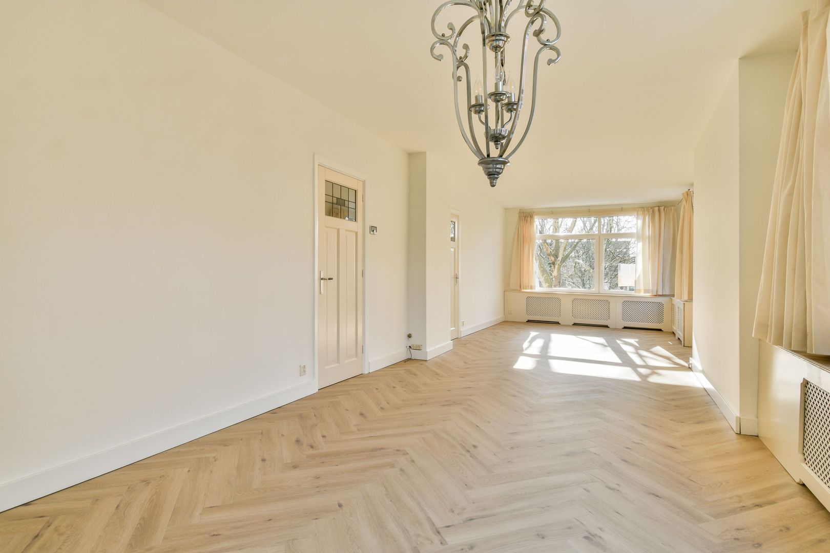 Zeer ruime woonkamer van 11.00 diep en 3.63 breed. De woonkamer heeft veel natuurlijk lichtinval middels de grote raampartijen. De Woonkamer is voorzien van een fraaie visgraat PVC-vloer en kunststof kozijnen met dubbel glas. Aan de voorzijde kijkt u heerlijk uit op het groen.