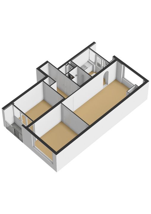 Via de woonkamer is de keuken toegankelijk. Het keukenblok heeft een hoek-opstelling en is voorzien van een 4-pits inductiekookplaat, oven (defect), afzuigkap. Ook zitten de wasmachine aansluiting en de CV-combiketel in de keuken en vanuit de keuken is het loggia balkon aan voorzijde bereikbaar van ruim 2 m2.