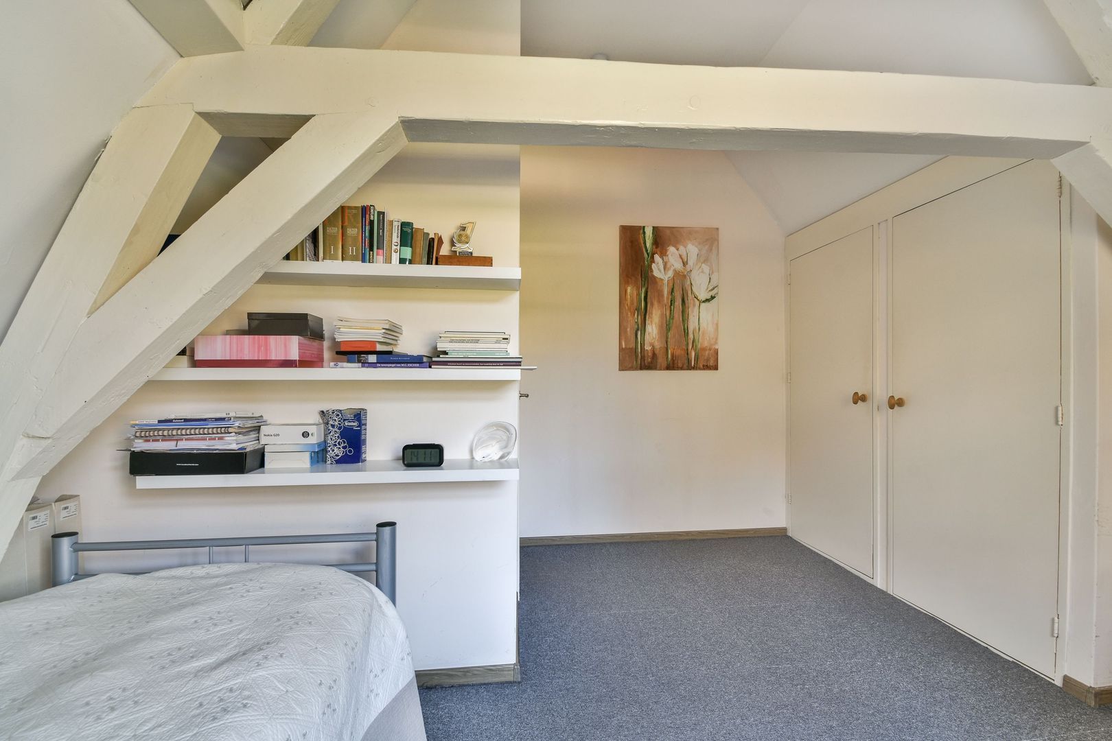Tussenkamer van 19 m², te gebruiken als slaapkamer of als studeer- of zitkamer, met veel bergruimte in inbouwkasten, waaronder een kamerbrede kast. Houten vloer en dakkapel.
