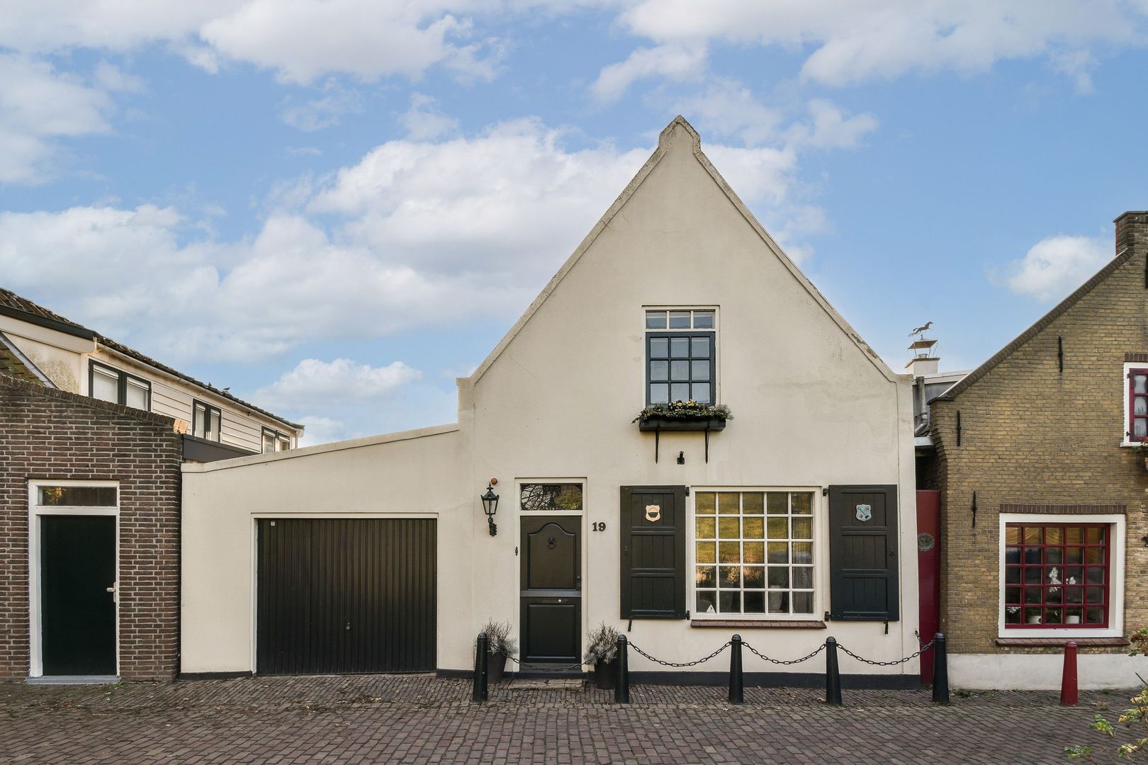 Ruime garage van 19 m² met betonvloer, elektra, wateraansluiting en deur naar de tuin.