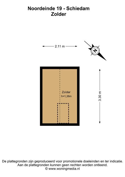 Vanuit de badkamer is een vlizotrap naar de kleine bergvliering van 7 m² vloeroppervlak met een nokhoogte van 1,36 m.