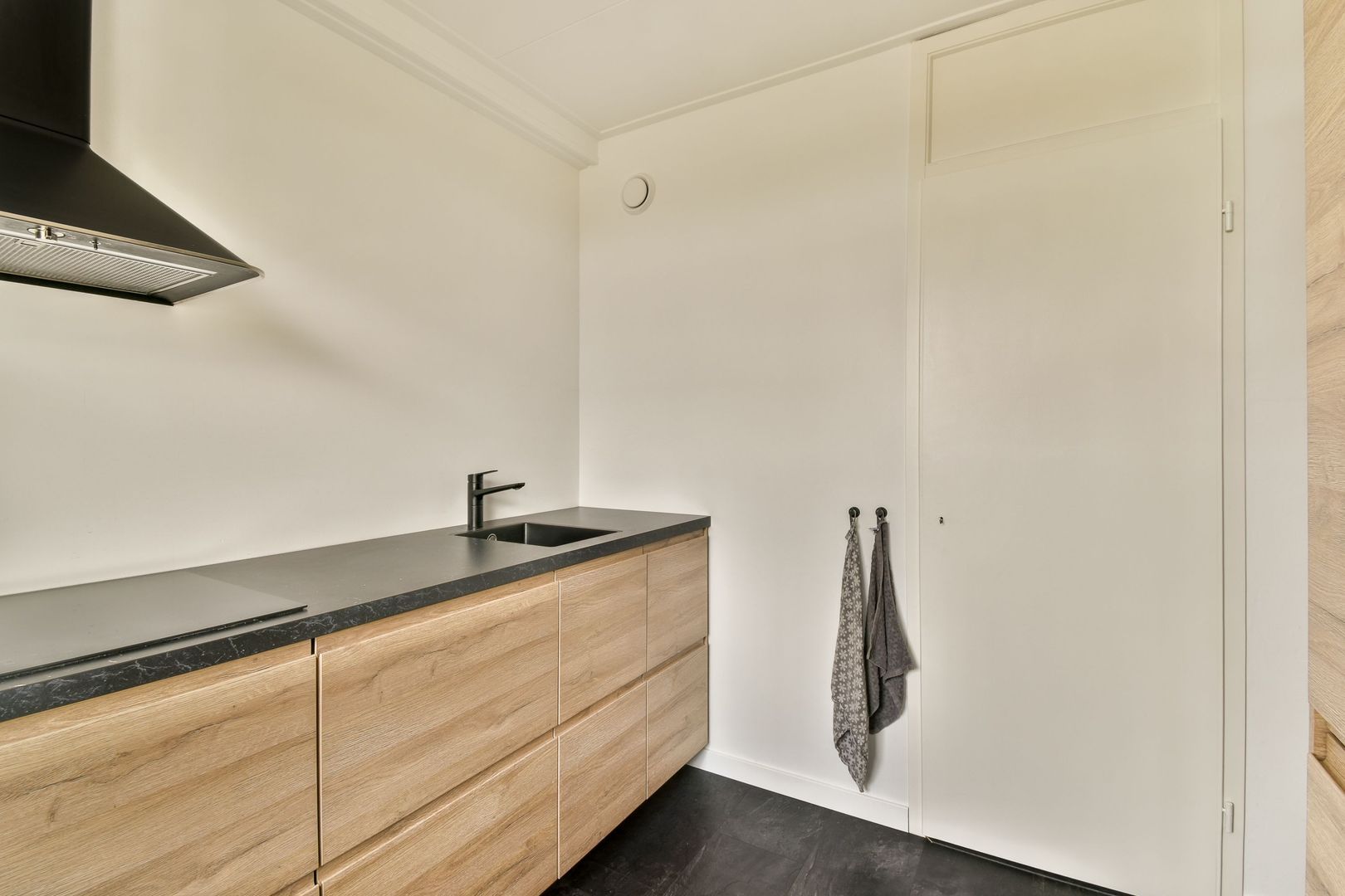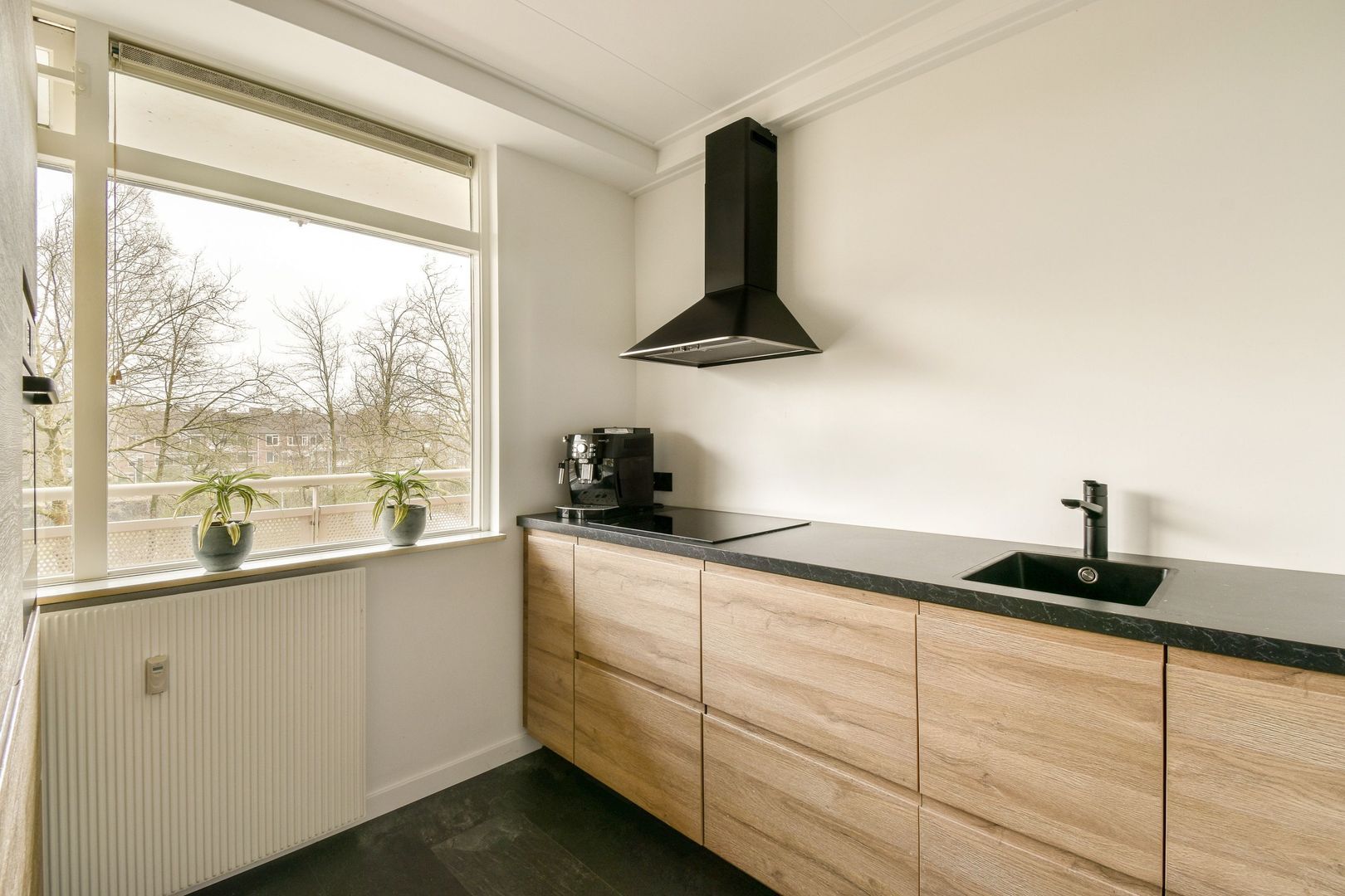 Entree via galerij. Hal, gesloten keuken welke recent geplaatst is en voorzien van de navolgende inbouwapparatuur; inductie kookplaat, recirculatie afzuigkap, vaatwasser, oven en koel-/vries combinatie.