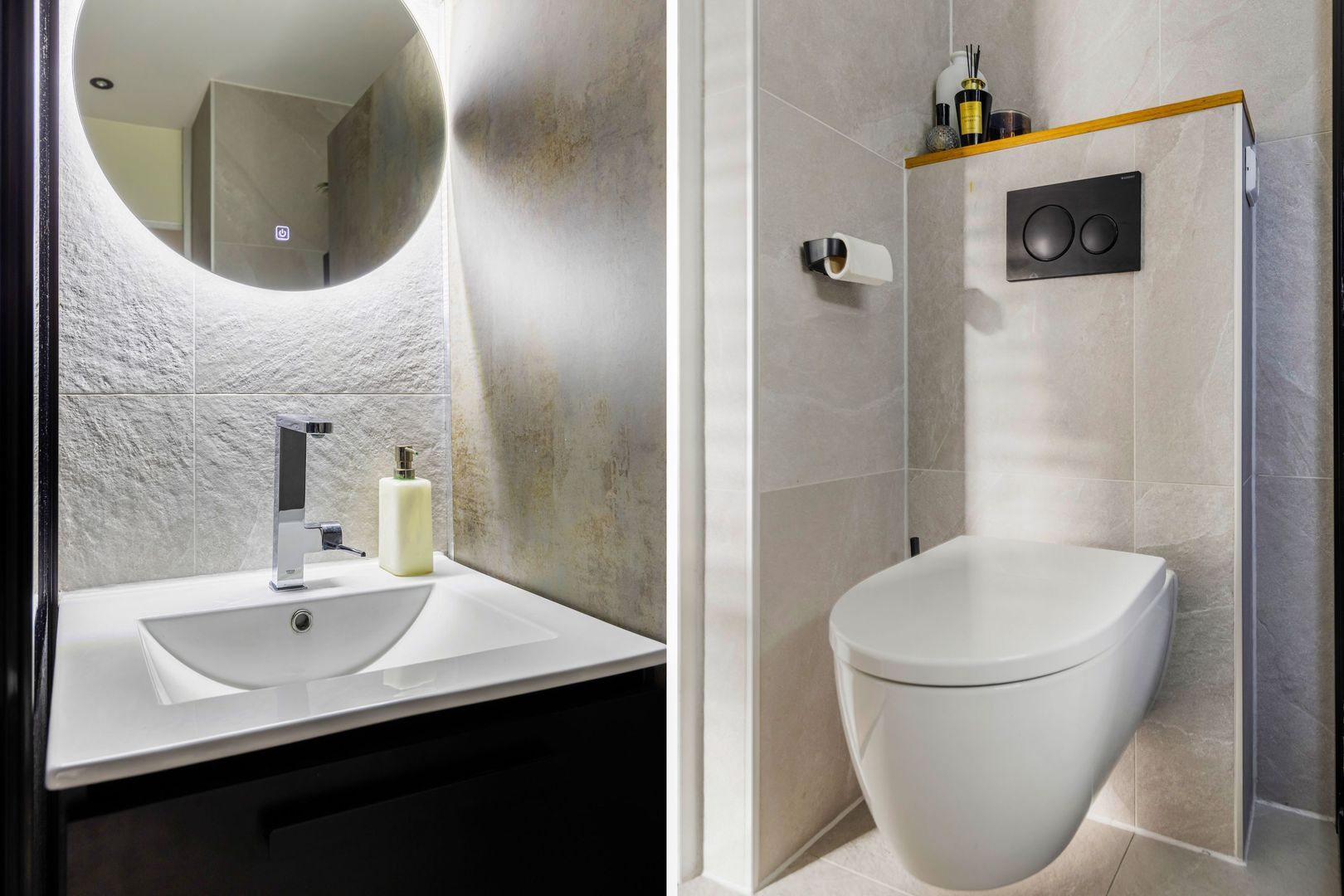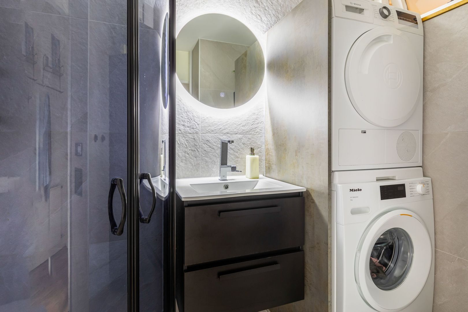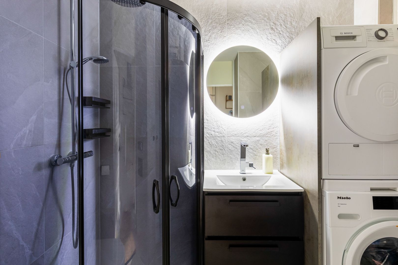 De badkamer aan de voorzijde is in 2023 vernieuwd en voorzien van een douchehoek, wastafel in luxe meubel, een zwevend toilet en wasmachineaansluiting.