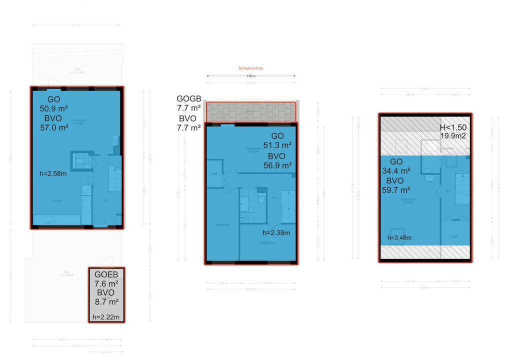 Aan de voorzijde een slaapkamer van 10 m² en een slaapkamer van 9 m².