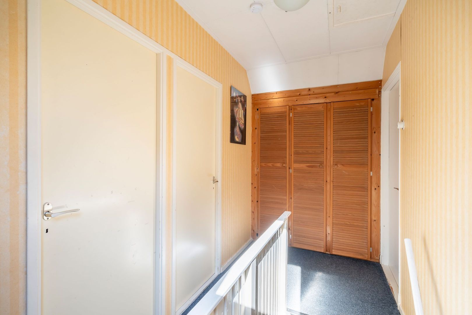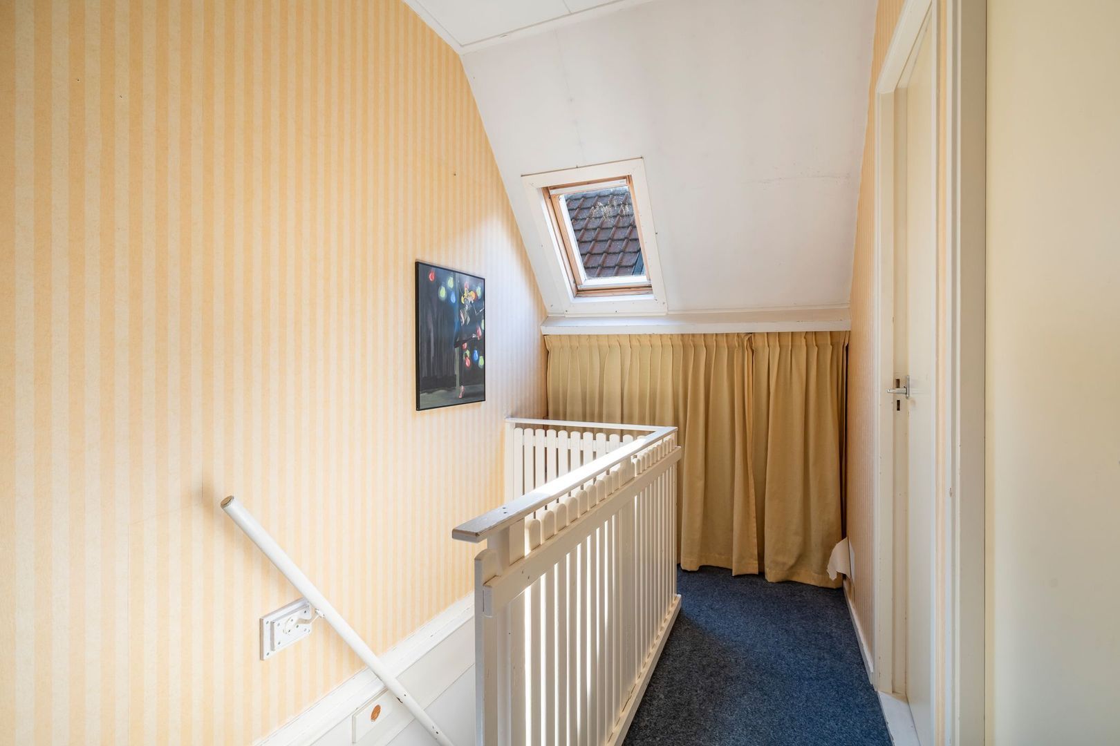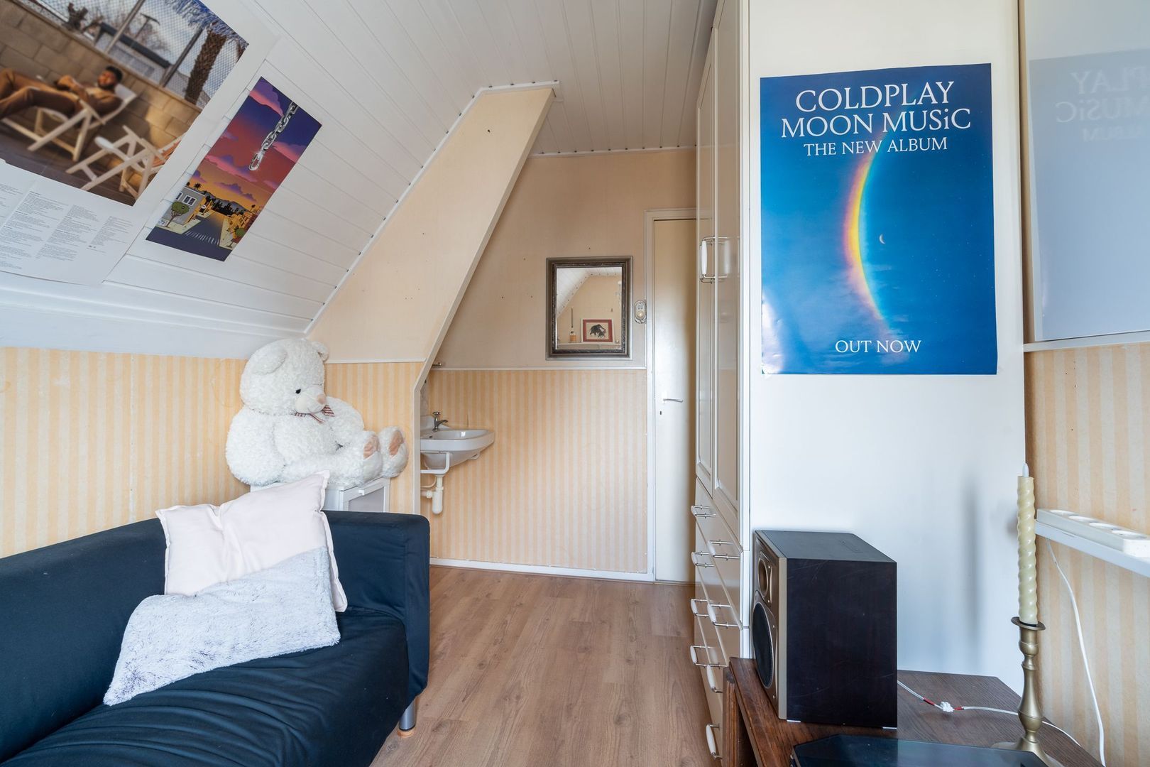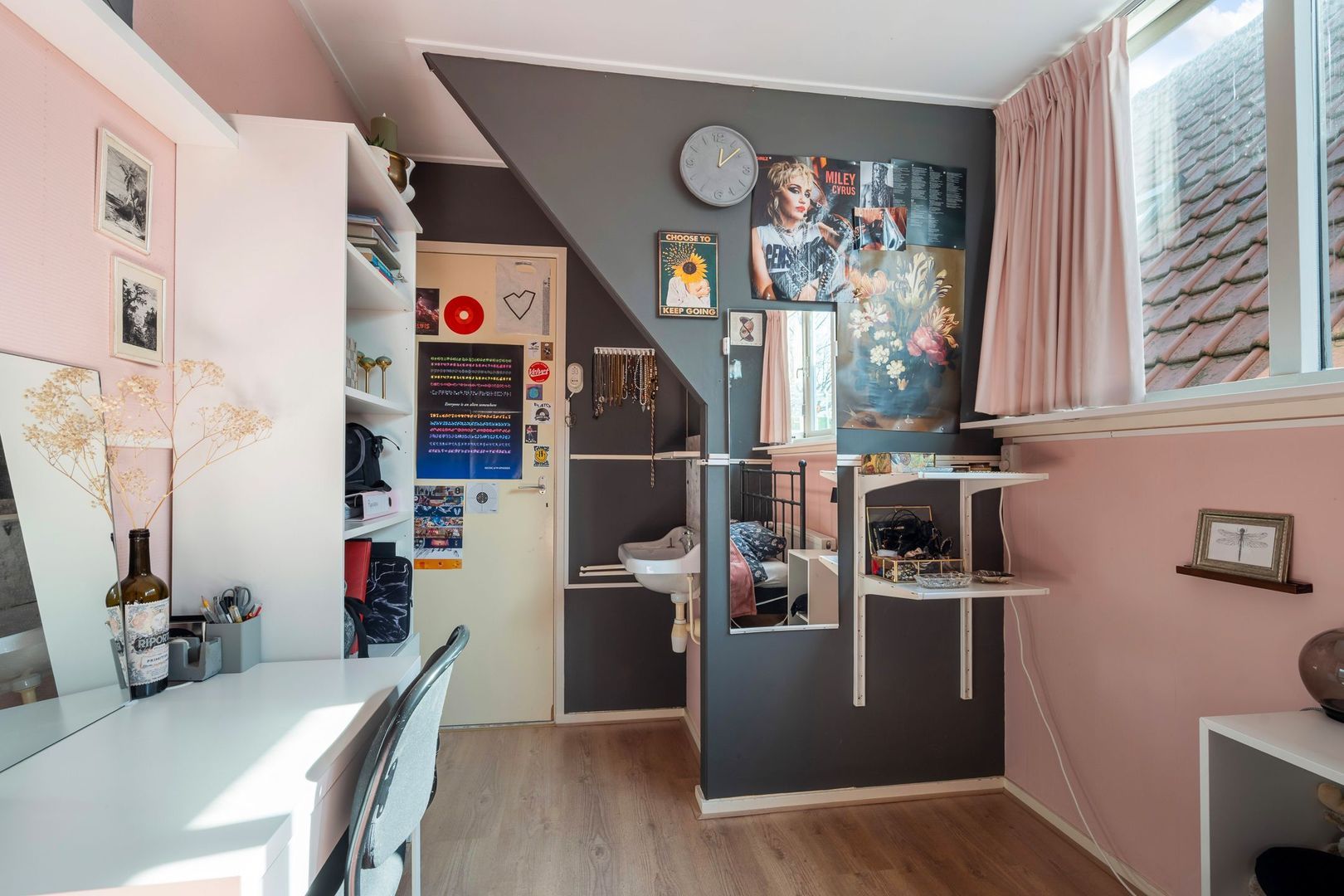Overloop met dakraam en bergruimte, voorslaapkamer van 16 m² met wastafel, kastenwand en bergruimte in het schuine dakvlak. Aan de tuinzijde bevinden zich 2 slaapkamers, waarvan een van ruim 9 m² voorzien van een wastafel, en een slaapkamer van 9 m² met dakkapel, marmoleumvloerafwerking en ook voorzien van een wastafel.