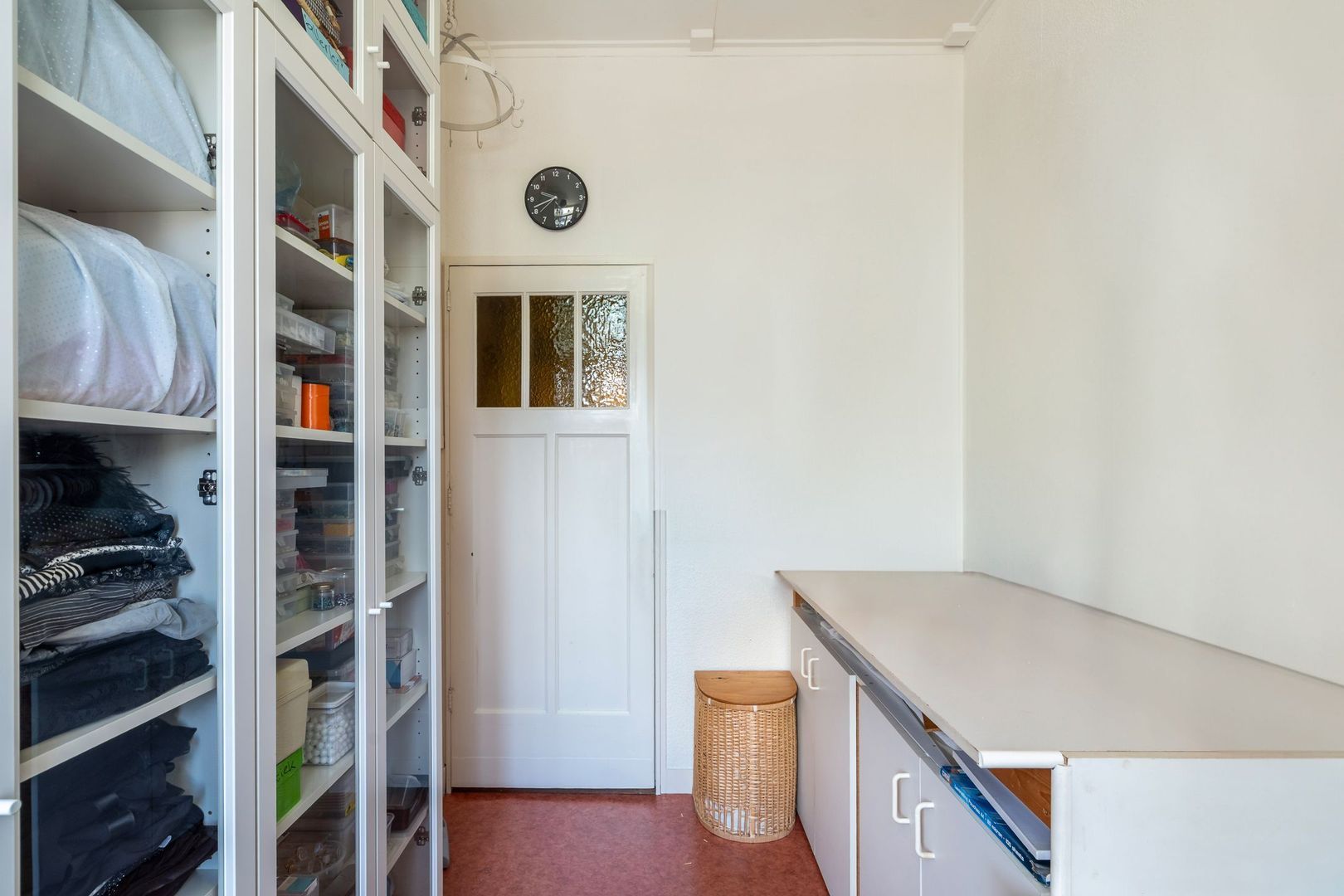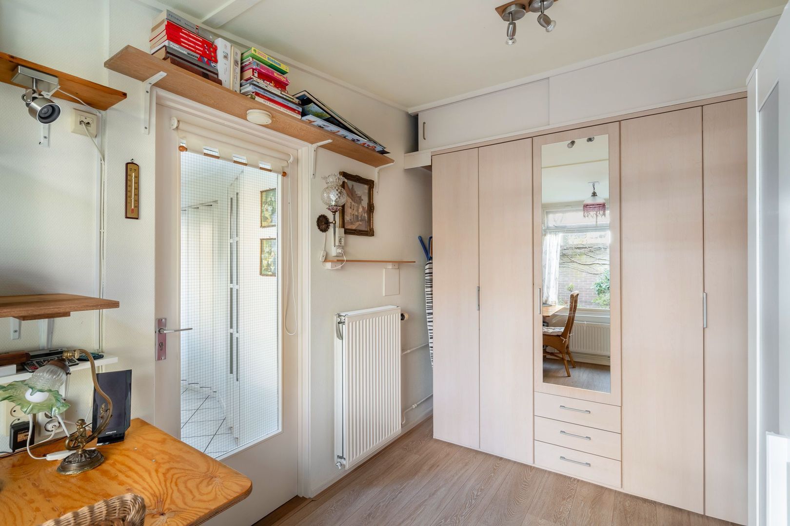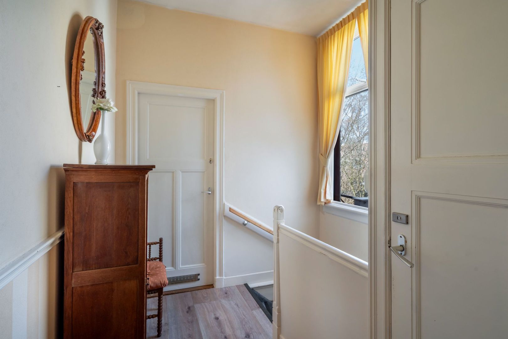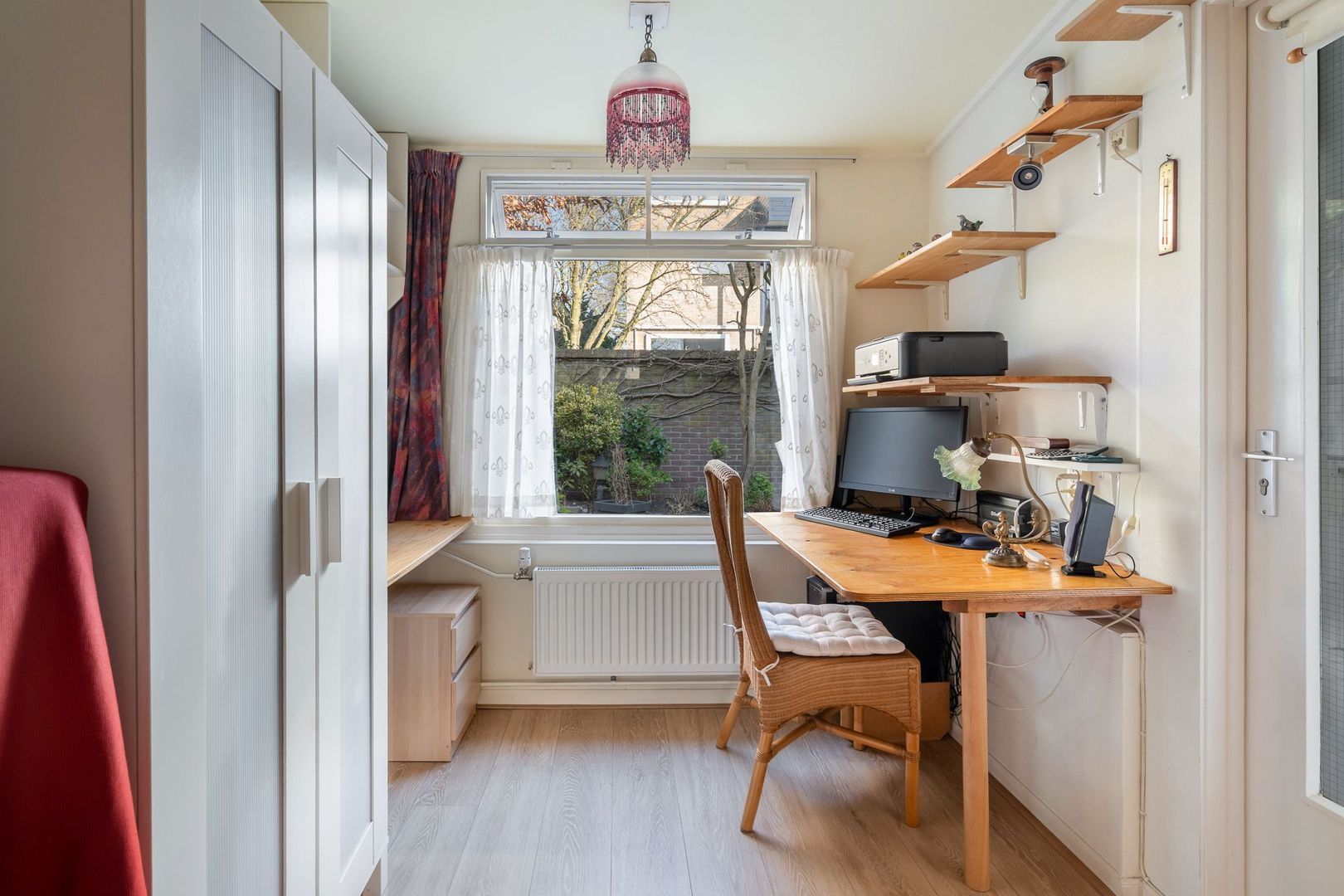 Overloop met dakraam en bergruimte, voorslaapkamer van 16 m² met wastafel, kastenwand en bergruimte in het schuine dakvlak. Aan de tuinzijde bevinden zich 2 slaapkamers, waarvan een van ruim 9 m² voorzien van een wastafel, en een slaapkamer van 9 m² met dakkapel, marmoleumvloerafwerking en ook voorzien van een wastafel.