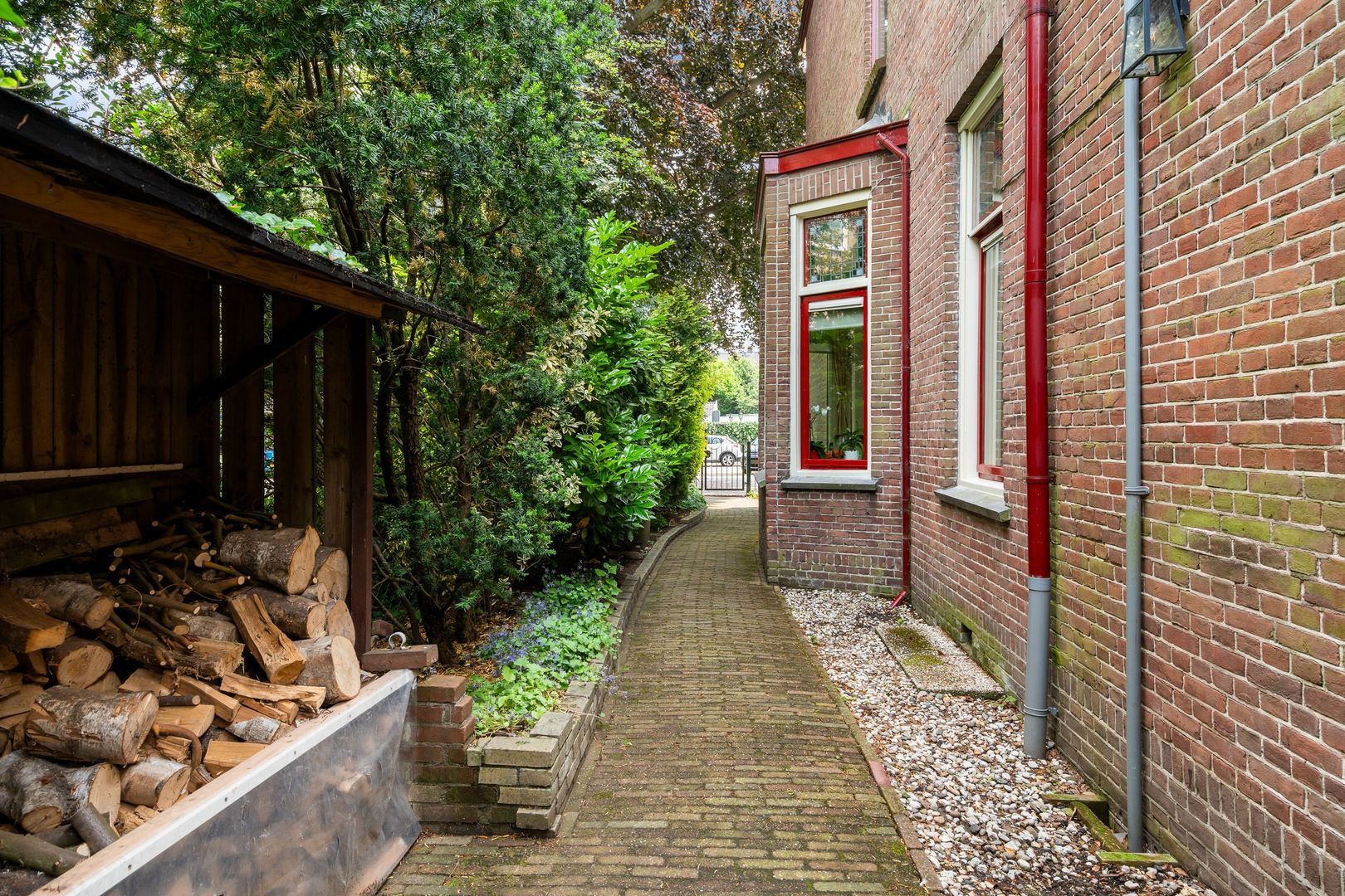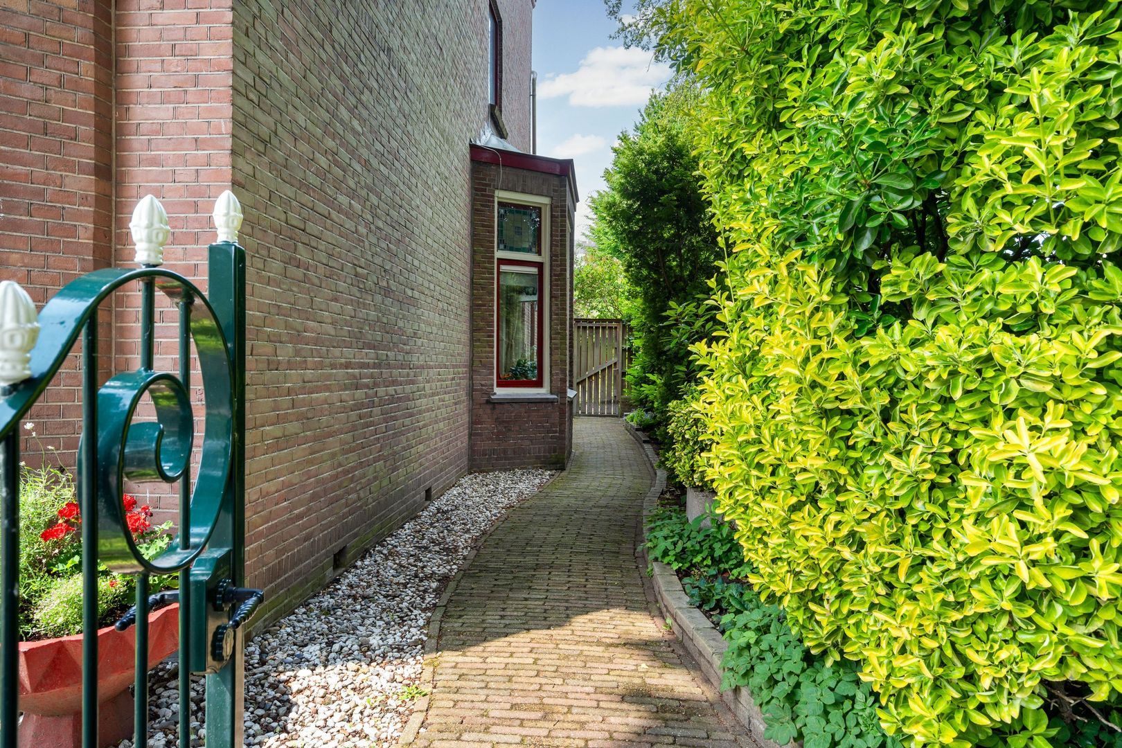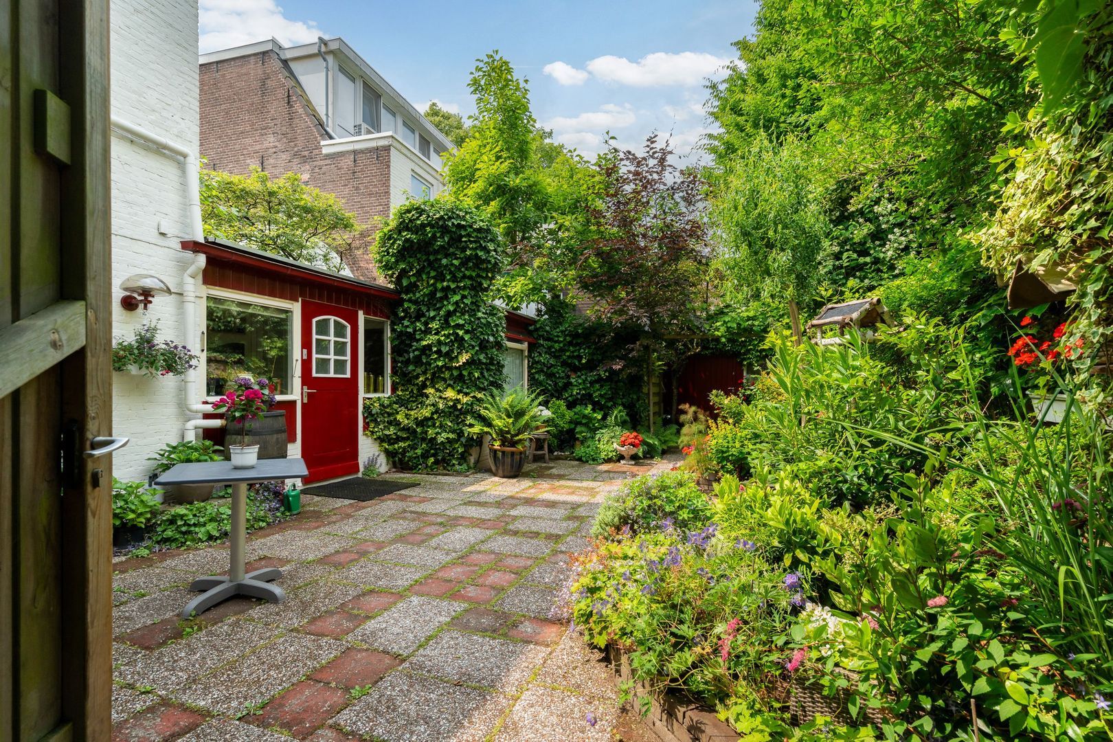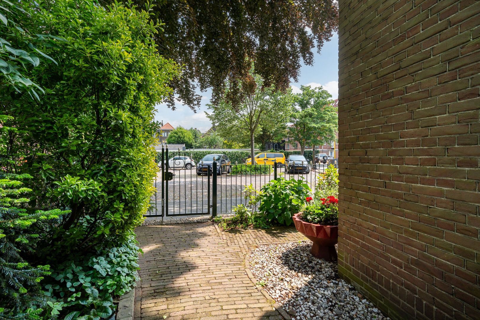 Fraai aangelegde achtertuin op het westen - 15 meter diep en 6,5 meter breed - met de hele dag zon, sierbestrating, blijvend groen, zijtuin met afgesloten poort die doorloopt in de voortuin, voorzien van sierbestrating en mooi stalen hekwerk. De grote schuur van ca. 25 m² is deels van steen en deels van hout, voorzien van een zadeldak met singles gedekt en elektra.