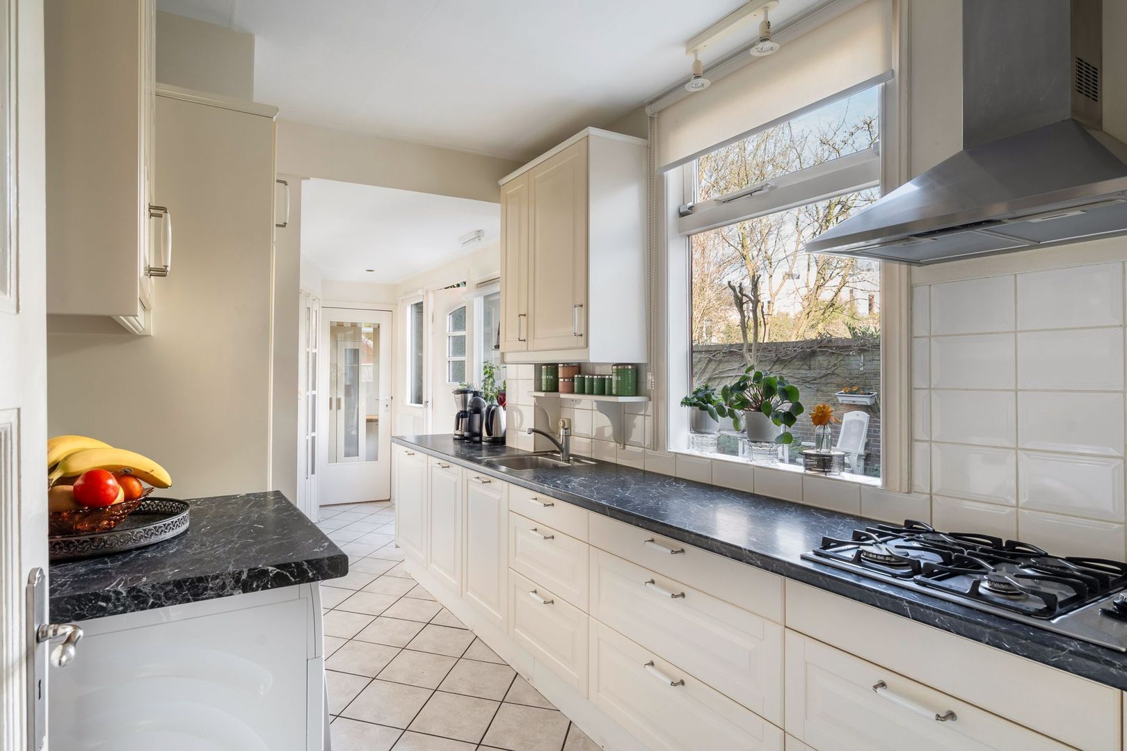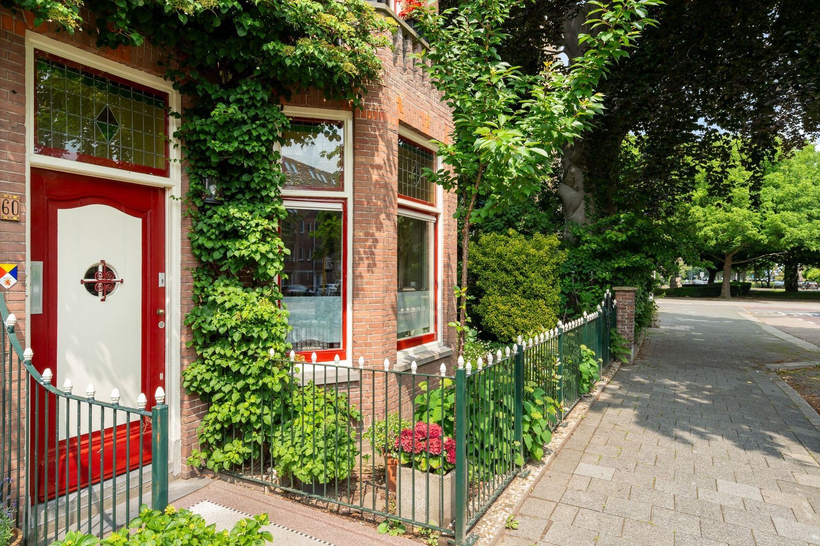 Entree, klassieke hal met glazen tochtdeur, natuurstenen betegelde gang met lambrisering en toegang naar de woonkamer, kelderkast, trapopgang naar de verdieping, toilet en toegang naar de keuken. De woonkamer, bestaande uit 3 delen van totaal 52 m², heeft veel lichtinval, ook door de zij-erker, een mooie eiken parketvloer, ornamentenplafond, glas-in-loodramen voorzien van voorzetramen, en de vaste ramen zijn voorzien van HR++ dubbelglas met ventilatieroosters. Verder zijn er vaste kasten en een serre (10 m²) die momenteel als slaapkamer wordt gebruikt. De voorkamer (20 m²) heeft en-suite deuren, vaste kasten, een marmeren schouw met houtkachel (het kanaal is voorzien van een RVS-pijp), een erker aan de voorzijde met vrij uitzicht over de brede singel en het Verploegh Chasseplein. Het uitgebouwde gedeelte aan de tuinzijde herbergt de royaal opgezette keuken met betegelde vloer en een aanrecht met marmerlookblad. De keuken heeft veel lichtinval en is voorzien van de volgende inbouwapparatuur: elektrische oven, magnetron, aansluiting voor wasmachine, koel-vrieskast, 4-pits gaskookplaat met afzuigkap en vaatwasser. Er is een cv-kast en de badkamer op de begane grond, bestaande uit een douchecabine, wastafelmeubel, handdoekenradiator, mechanische afzuiging en witte betegeling tot het plafond. Slaap-/werkkamer van 8 m² met kastenwand.