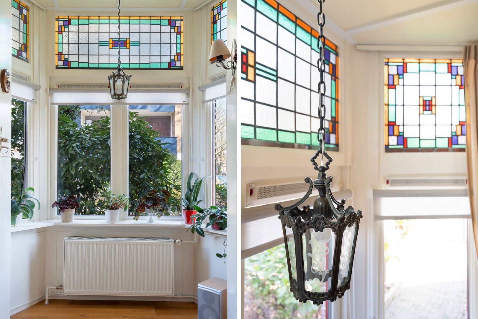 • Kozijnen van hout en grotendeels dubbel glas HR++, glas-in-loodramen voorzien van voorzetramen.