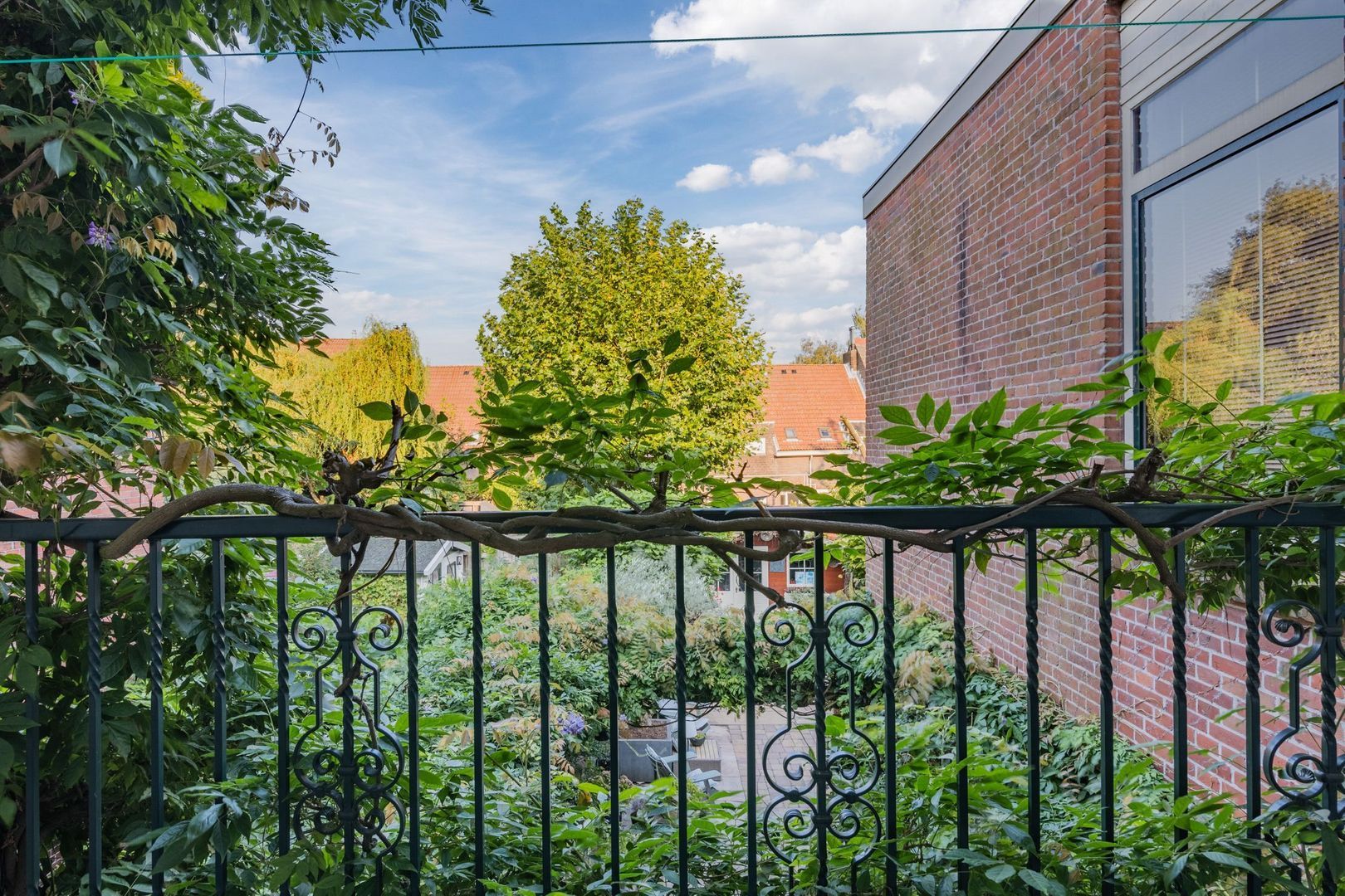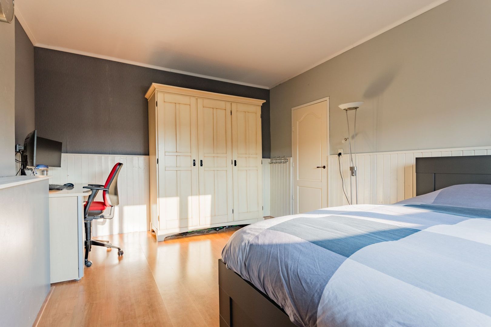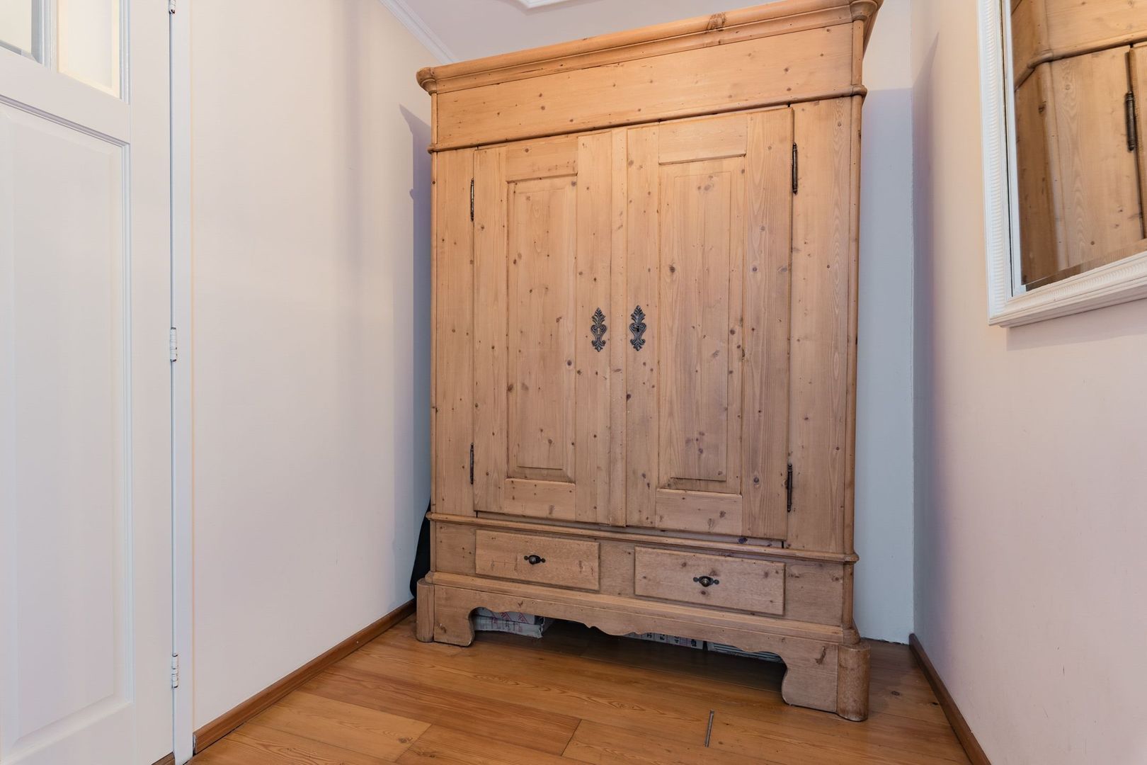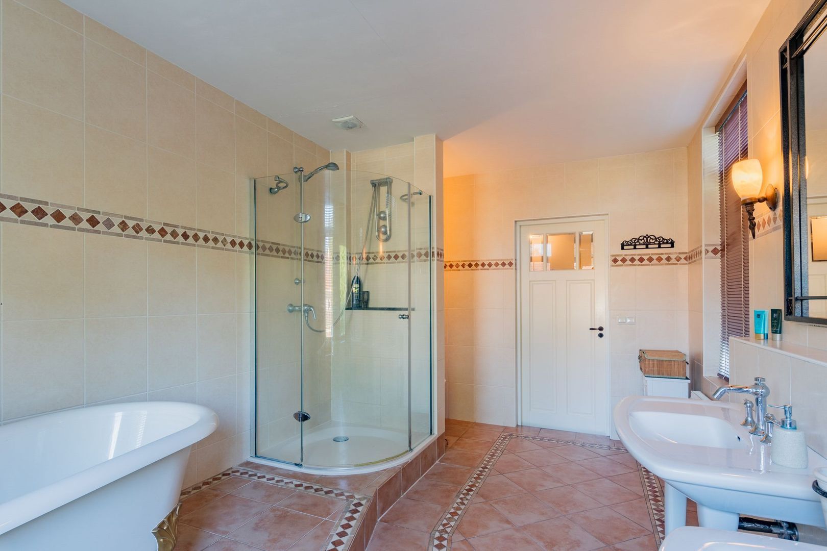 Mooie trap opgang, ruime overloop met grenen vloerdelen, voorzijde (inloop)kastenkamer tot aan plafond van 6 m2 met houten vloerdelen, voorzijde slaap-werkkamer met fraai uitzicht van 14 m2 met laminaatvloer en lambrisering, toegang naar besloten balkon van bijna 4 m2 voorzien van een gietvloer, authentiek sierhekwerk , markies en aluminium schuifpui. Aan de achterzijde de hoofdslaapkamer van 20 m2, met gestuct plafond, aluminium schuifpui naar inpandig balkon van 7 m2 met gietvloer en mooi uitzicht over de tuin. Technische-, werkruimte van 6 m2 met aansluiting wasmachine, laminaat, cv opstelling en veel bergruimte, overloop met kastruimte en aansluitend in achterste deel de zeer royale badkamer van 15 m2 met veel licht door de 3 ramen, vrijstaand ligbad “op pootjes”, dubbele wastafel, royale douchecabine, terracotta tegelwerk en hangend toilet.