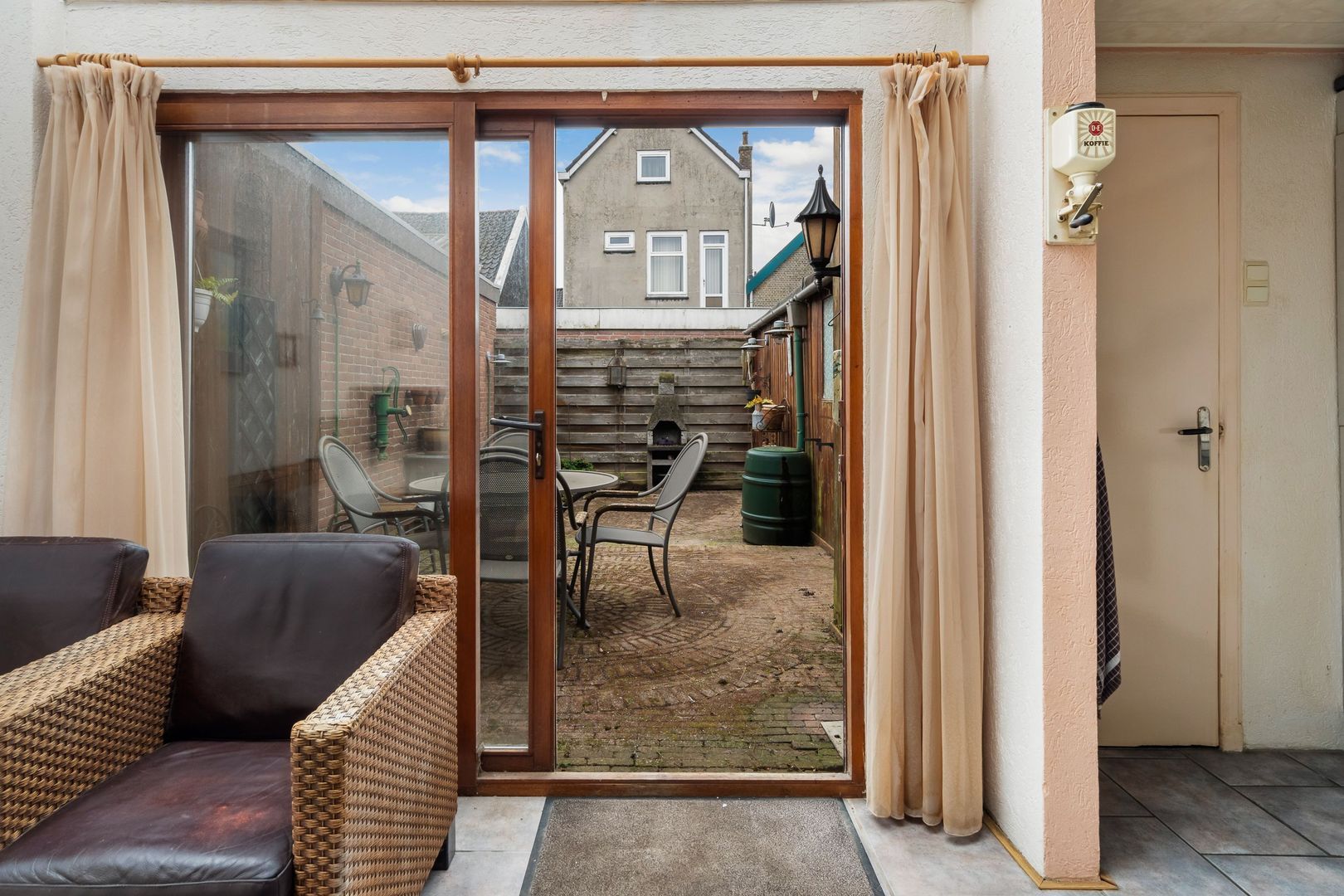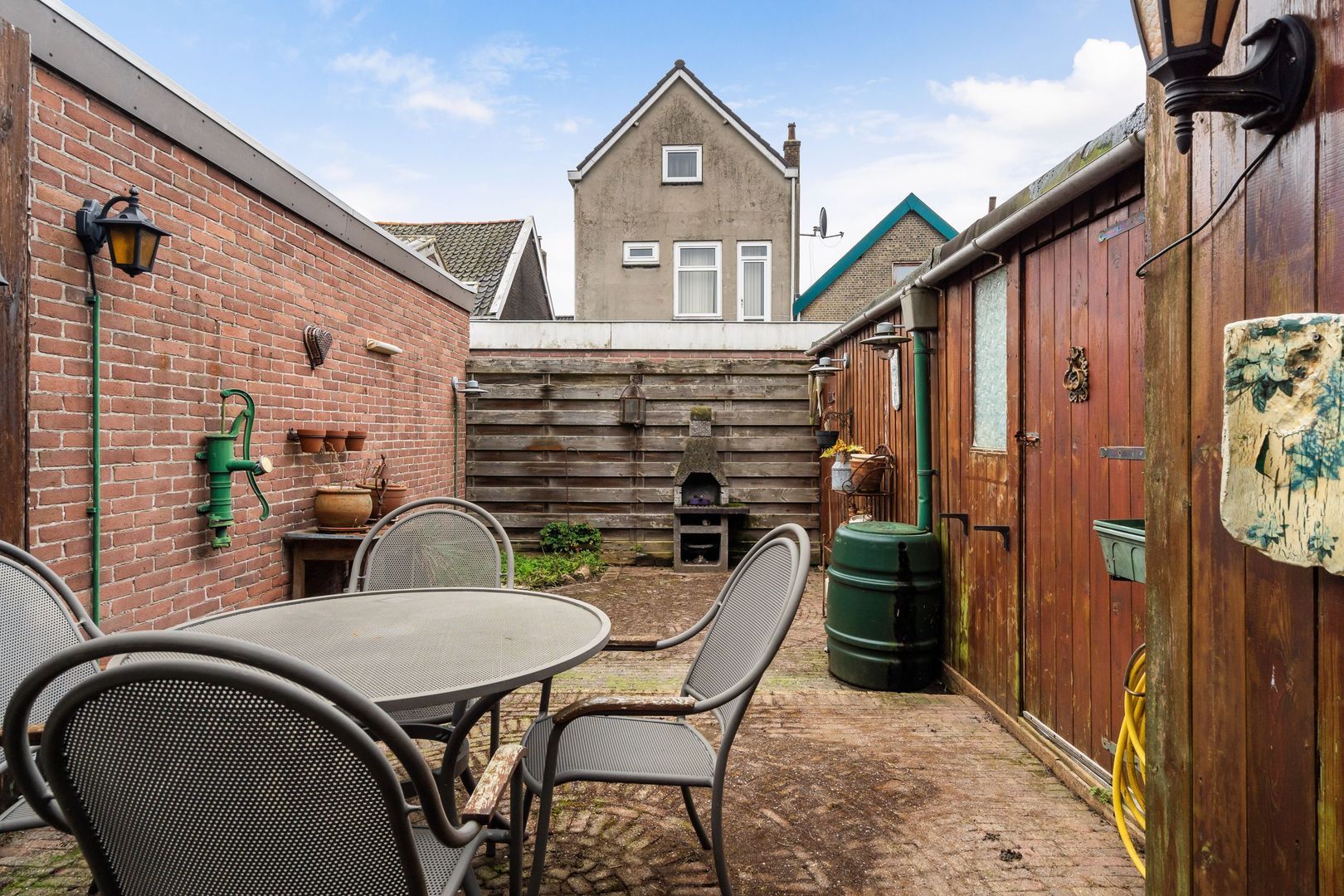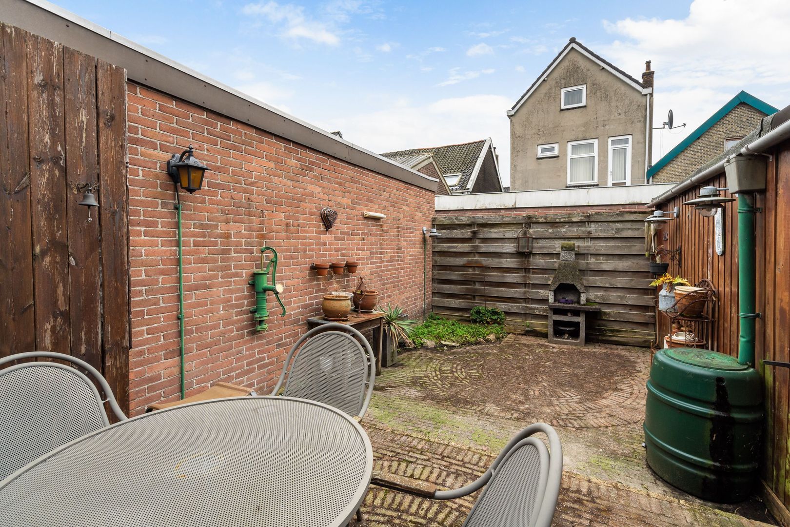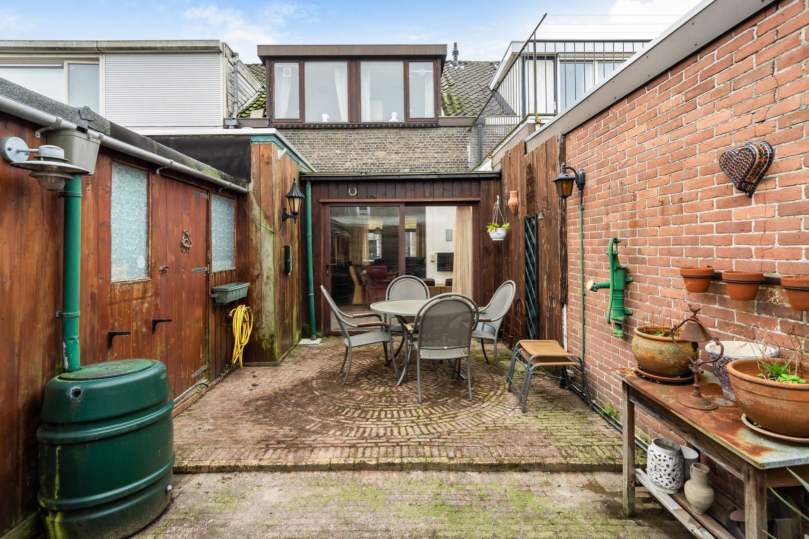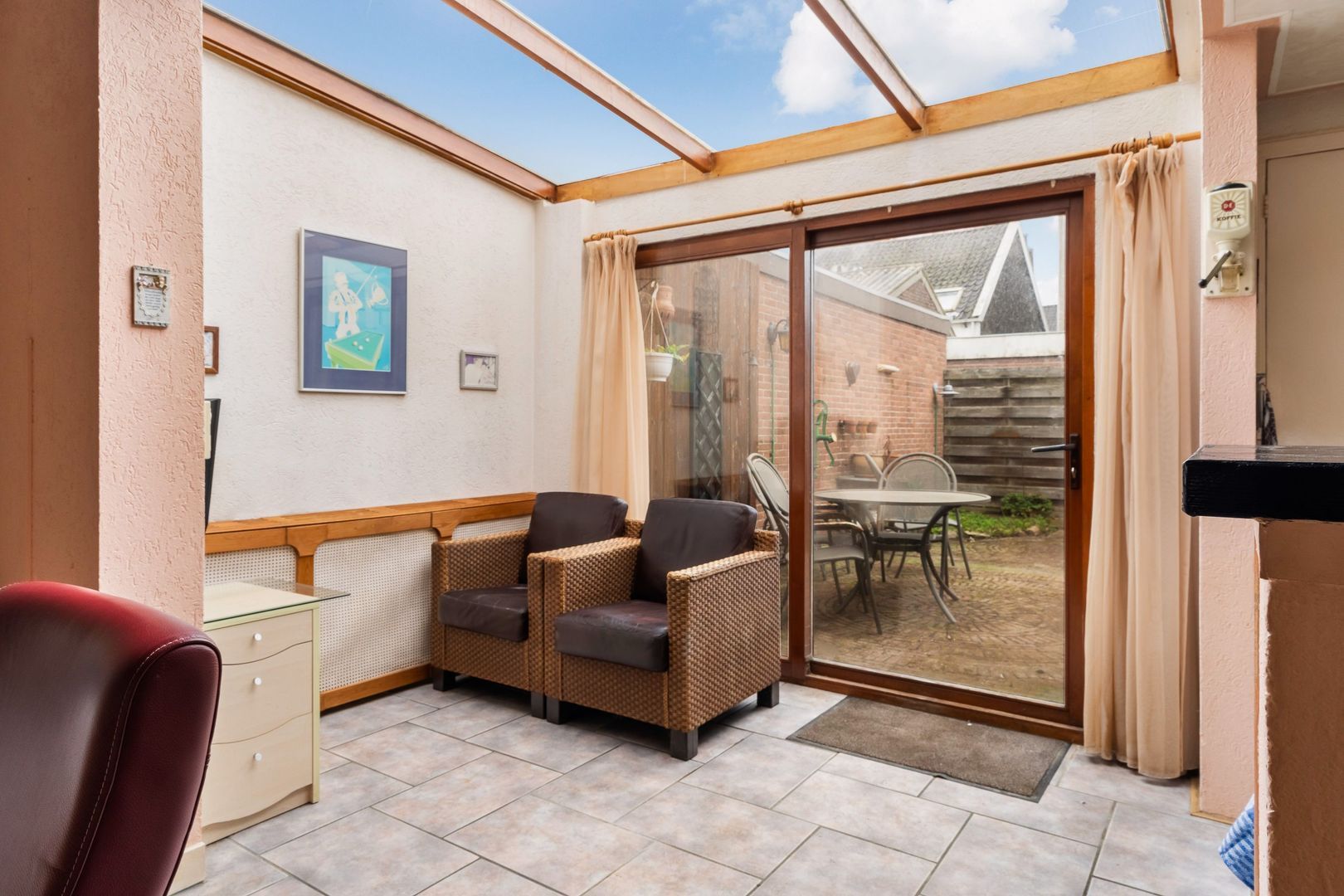 Via de schuifpui in de serre betreedt u de tuin. De tuin is onderhoudsarm aangelegd en heeft een oostelijke ligging. Aangebouwd vindt u een schuur met wasmachineaansluiting en daar aangebouwd een tweede fiets schuur.