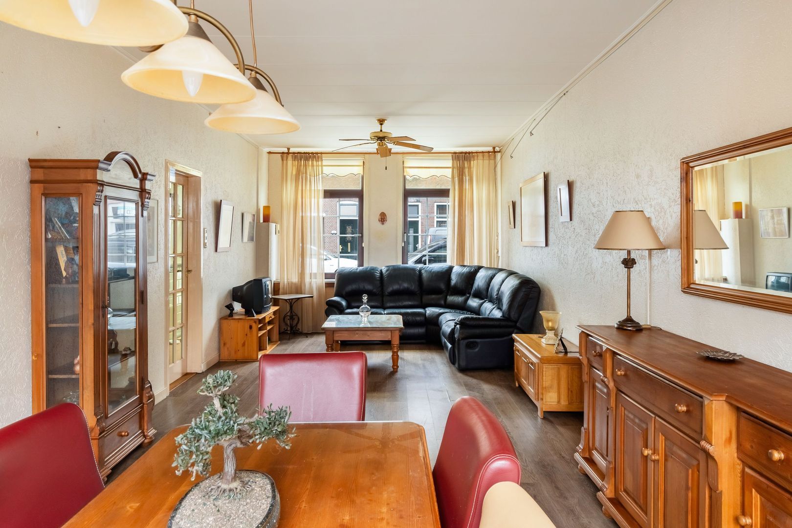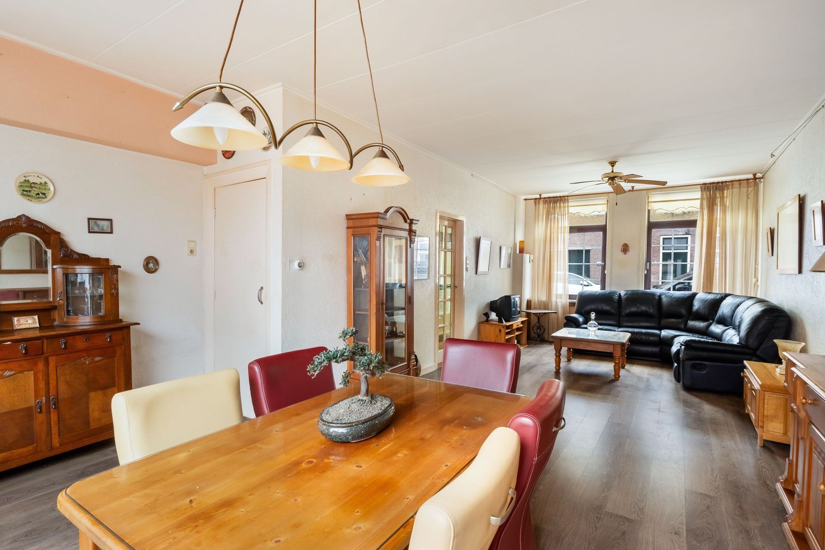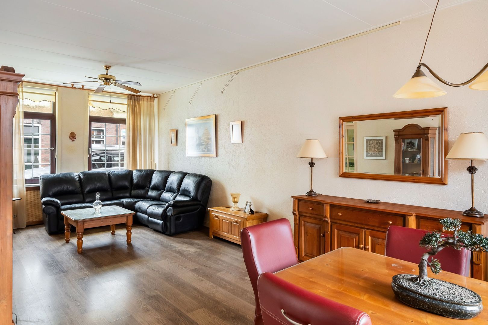 Entree, hal, ruime doorzonwoonkamer met serre en halfopen keuken van totaal ca. 57 m2.
