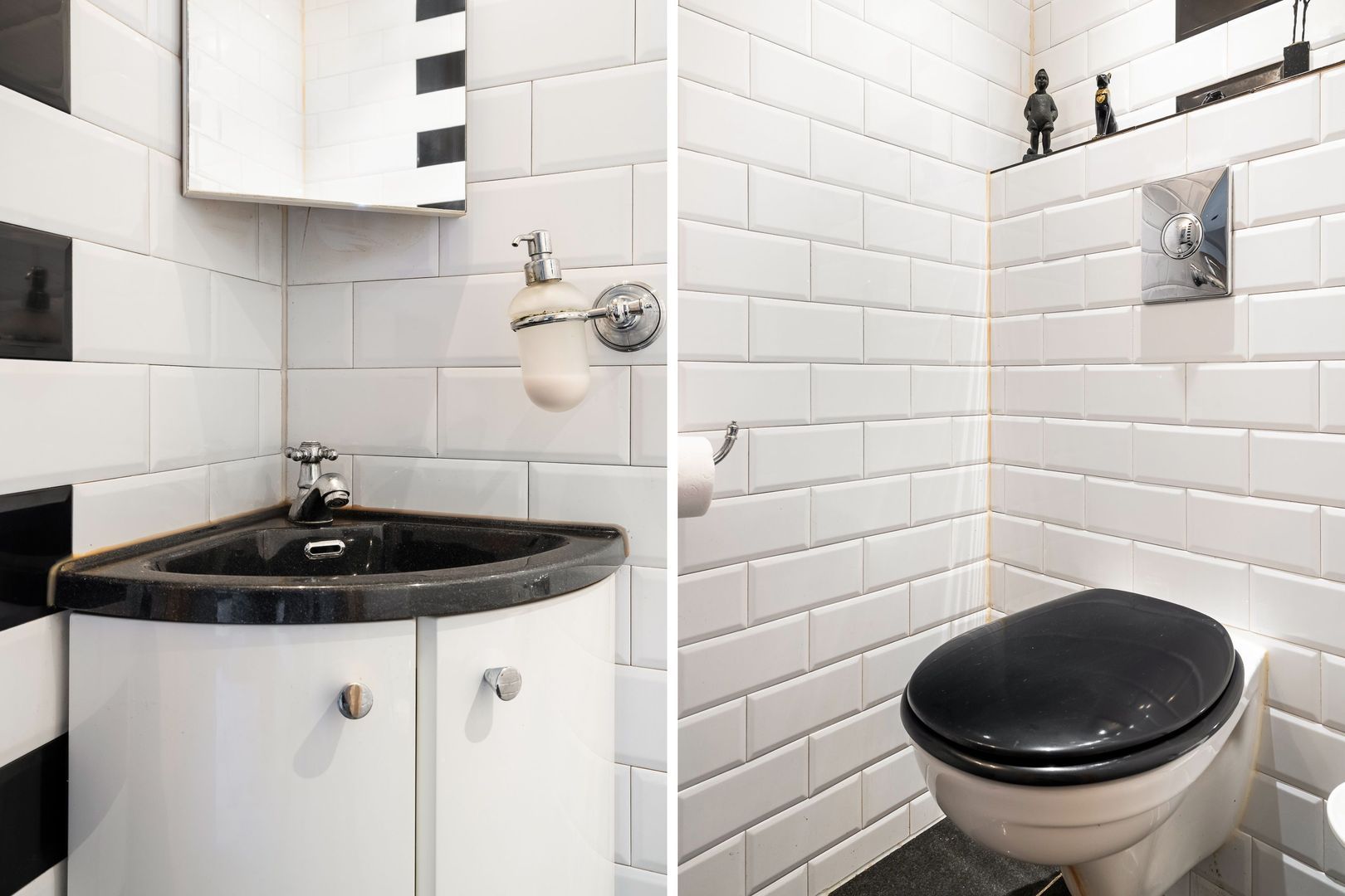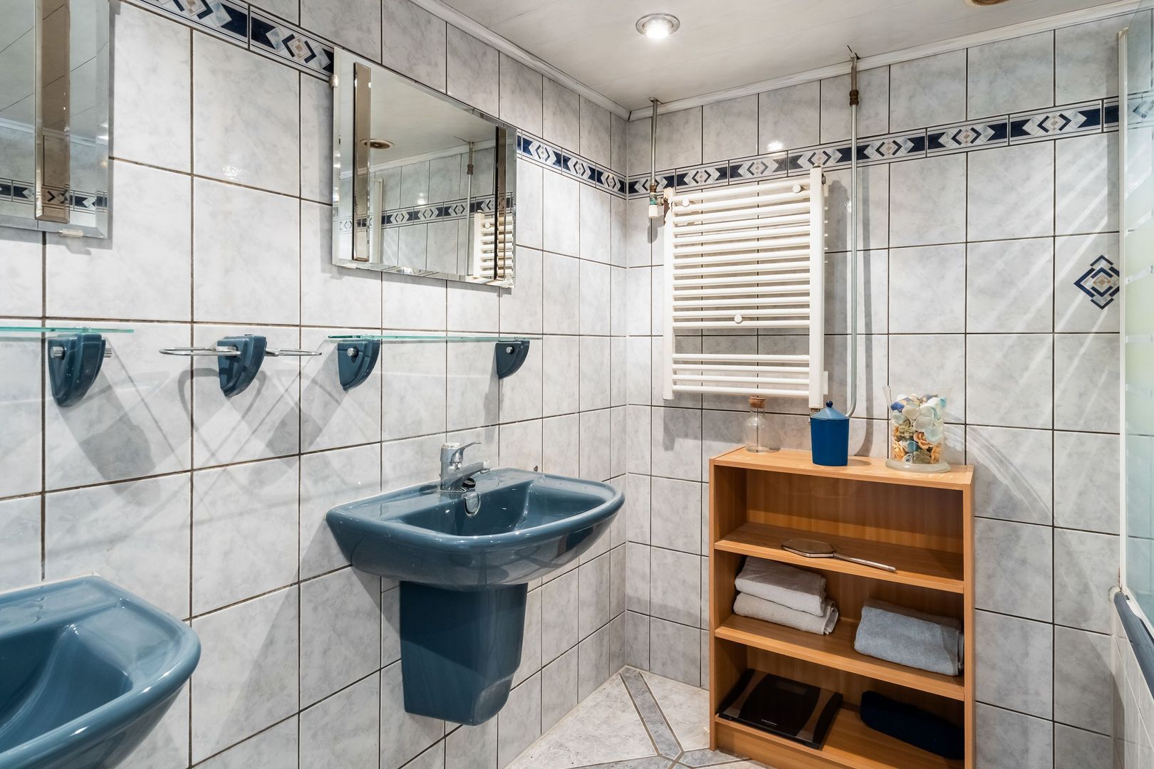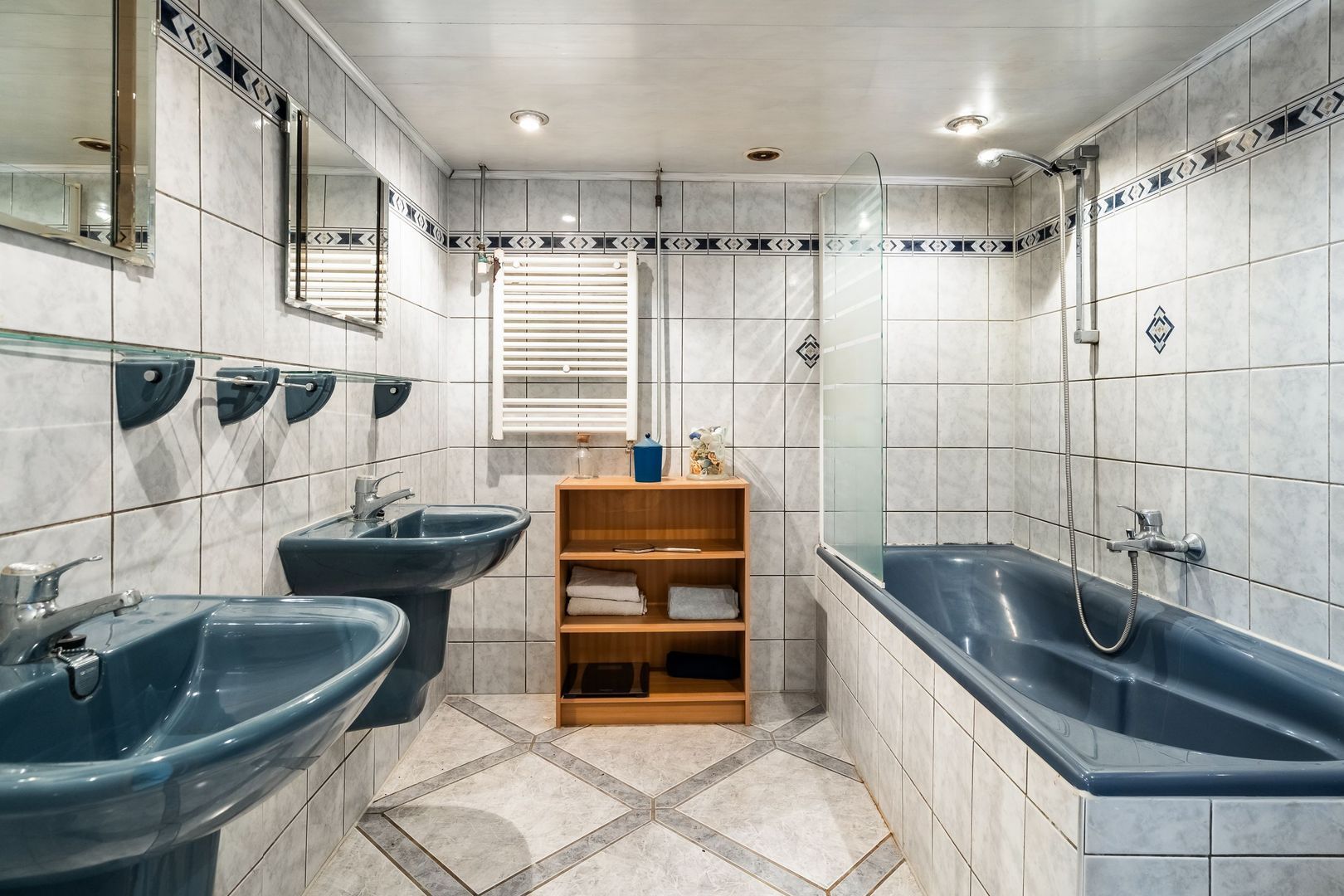 Inpandig vindt u de ruime badkamer met ligbad, dubbele wastafel en tweede toilet.