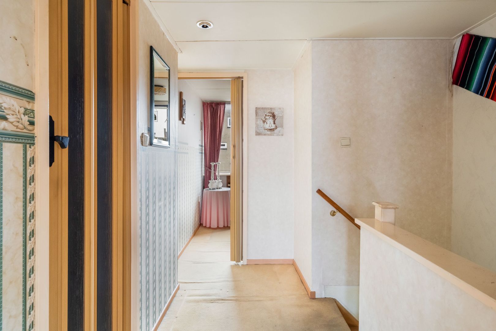 Overloop met toegang tot alle vertrekken op deze verdieping. 3 slaapkamers van respectievelijk ca. 15 m2, 6 m2 en 4,5 m2.