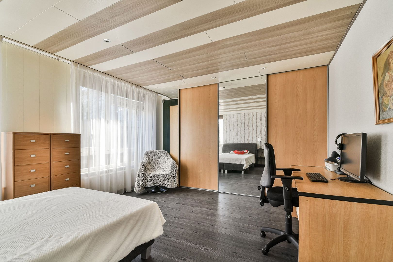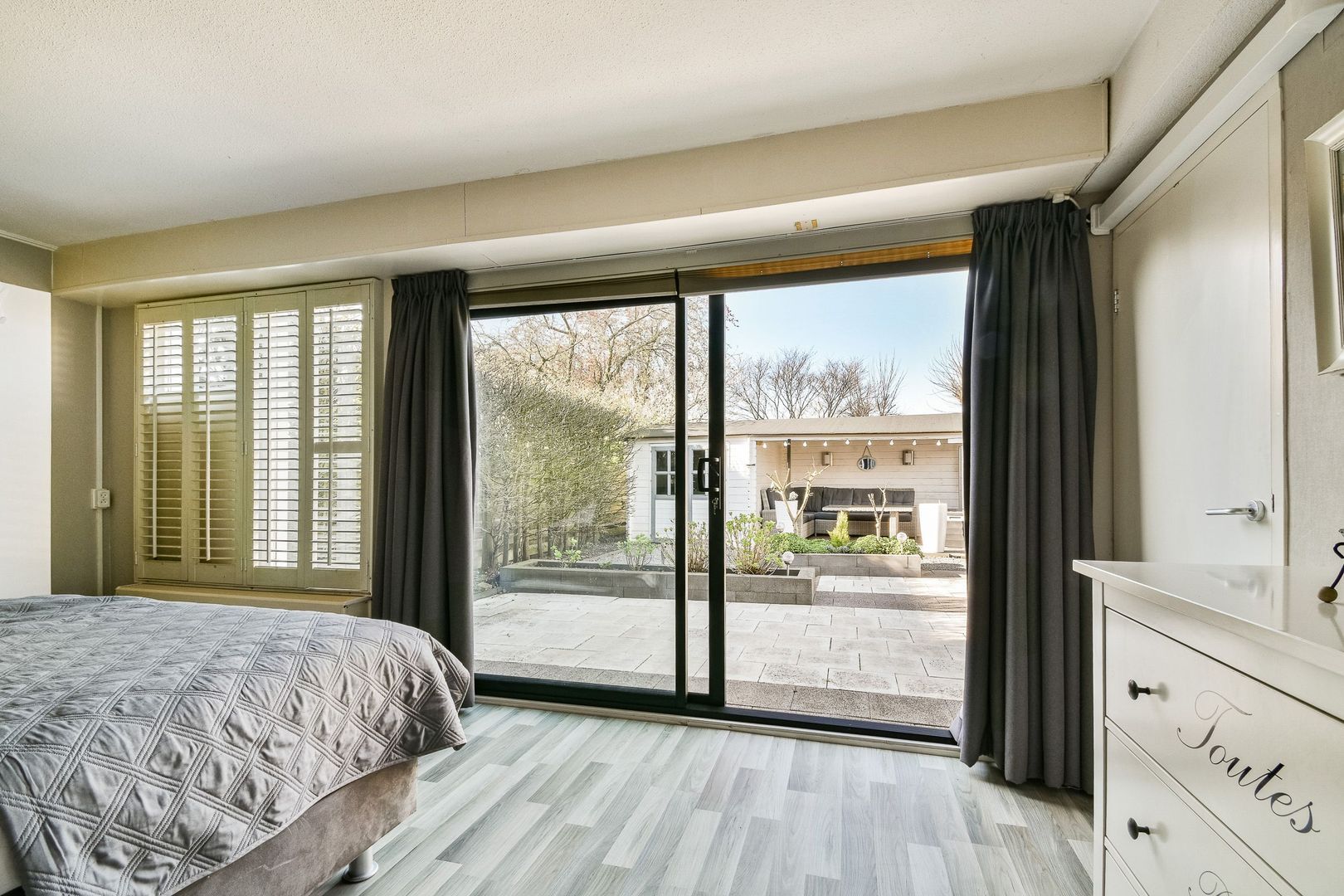 Aan de tuinzijde bevindt zich een slaapkamer van 16,4 m2, eveneens met een nieuwe schuifpui.