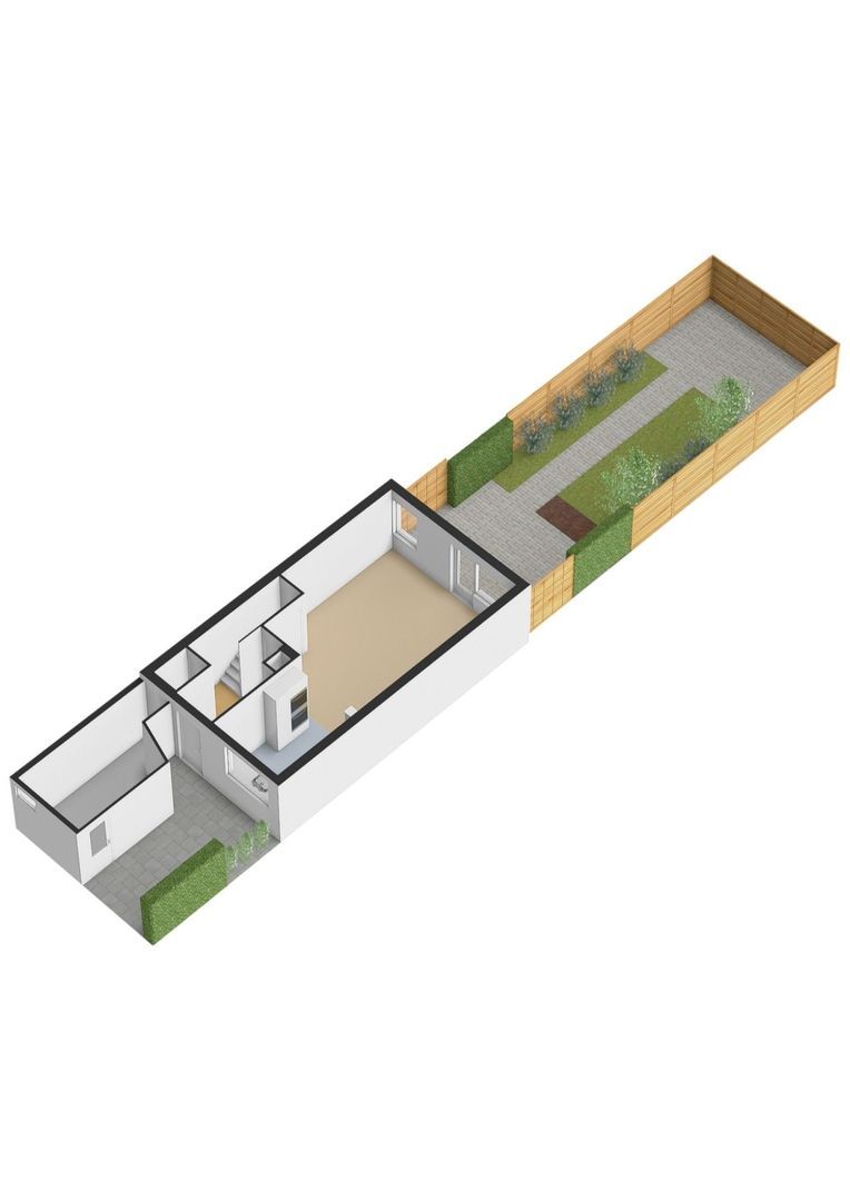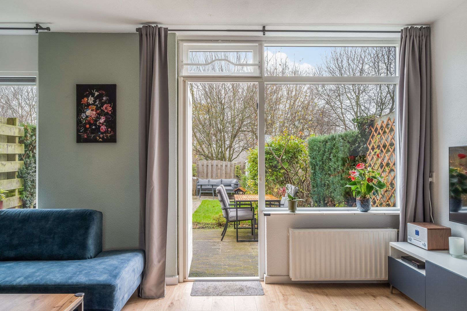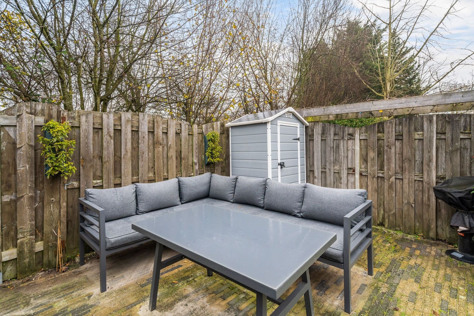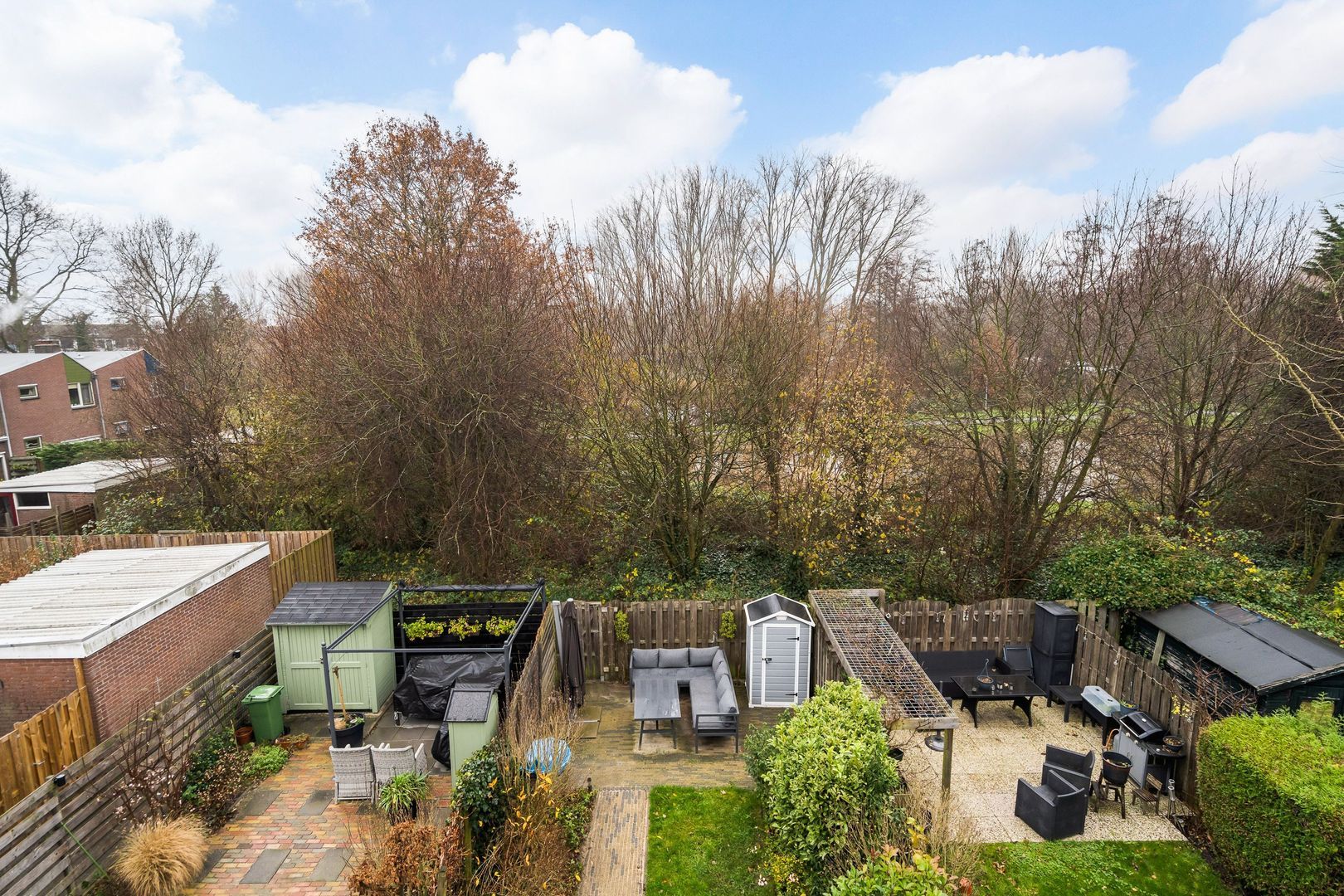 Vanuit de woonkamer is de achtertuin toegankelijk. De tuin heeft een terras direct aan de woning alsmede een terras aan de achterzijde. Tussen de twee terrassen in is een mooie siertuin aangebracht met veel groen.