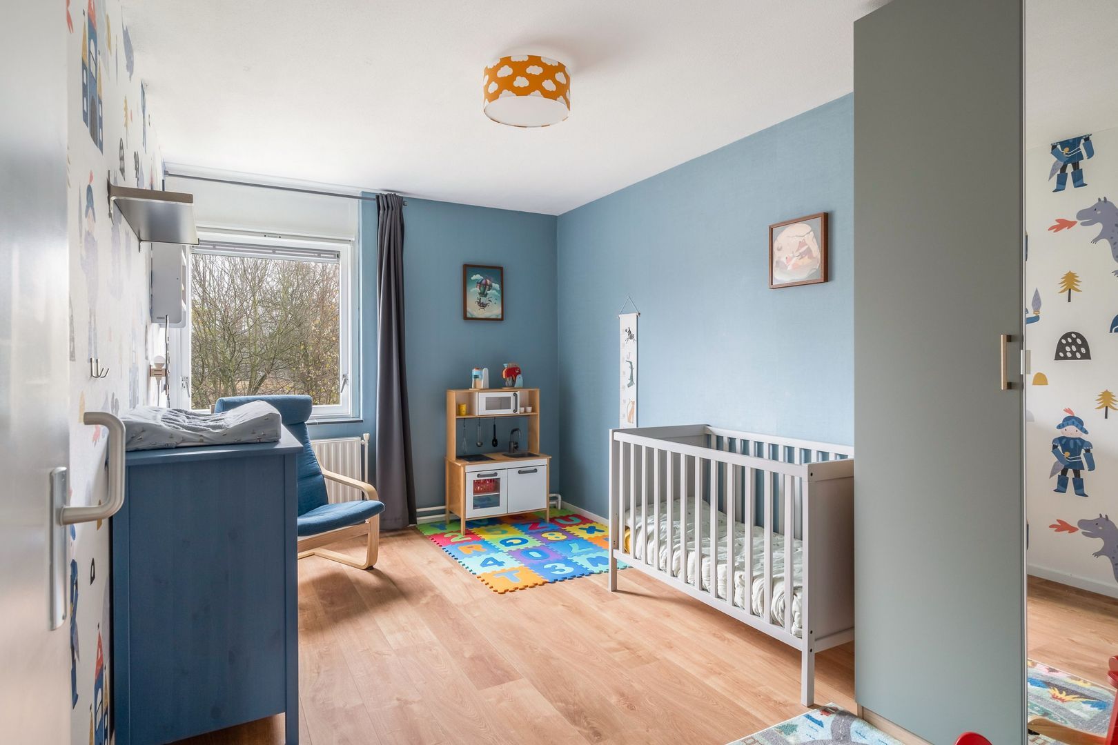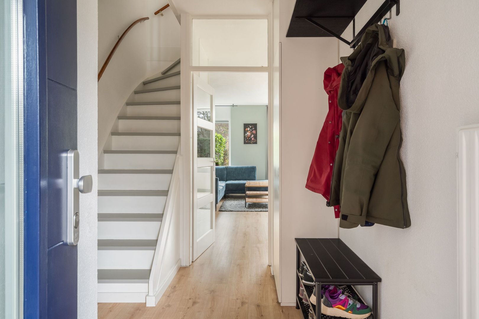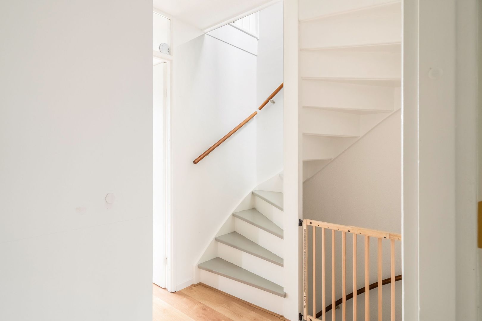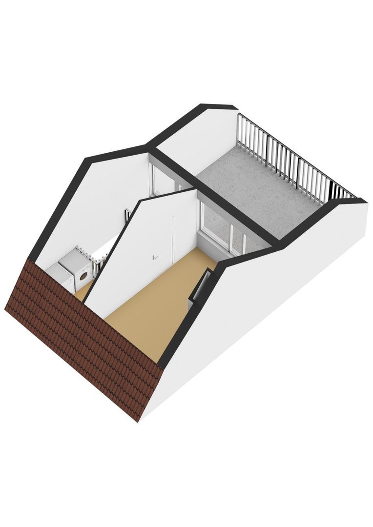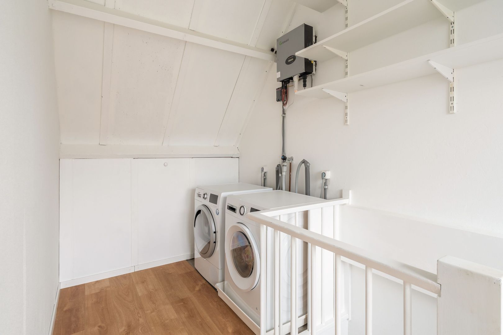 Ruime voorzolder met wasmachine en droger aansluiting, CV-ketel en de omvormer voor de zonnepanelen. De slaapkamer is bijna 14 m2 groot. Tevens zijn er ruime opslagmogelijkheden gecreërd met diverse legplanken en een vliering. Het dakterras is 17 m2 en is beschut aan beide kanten.