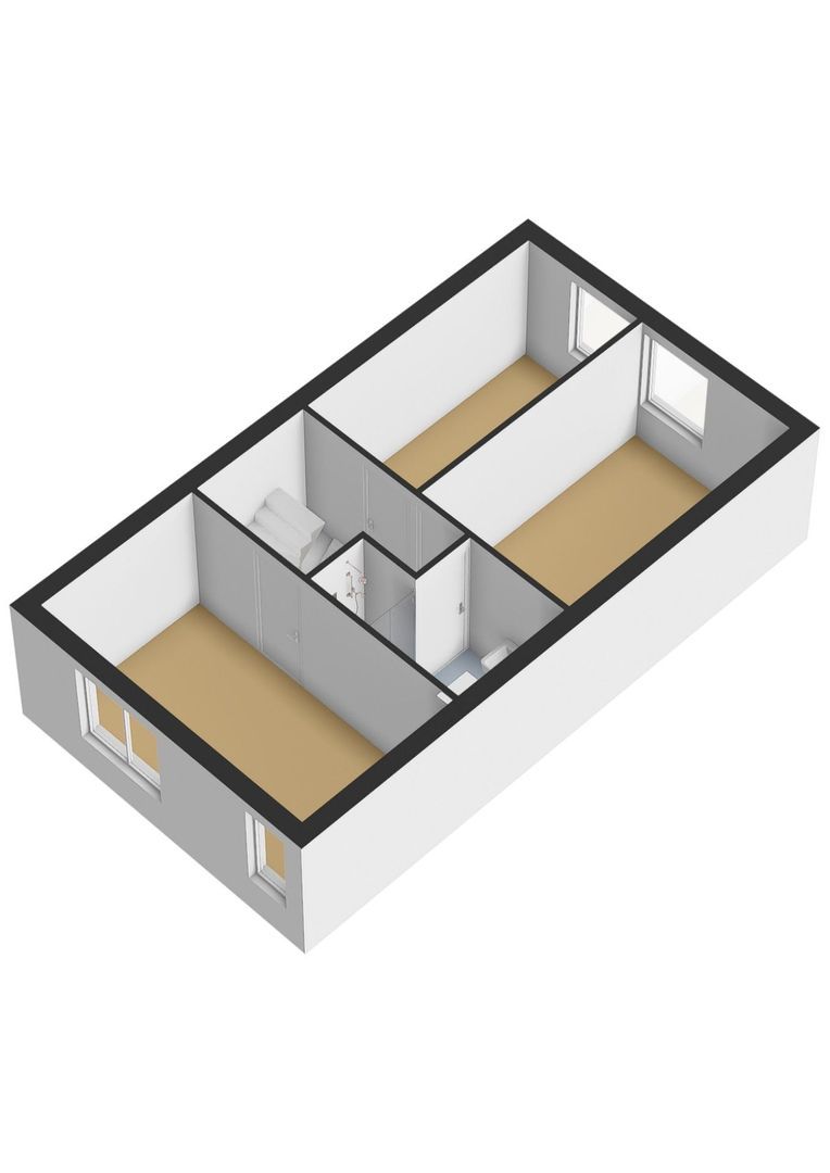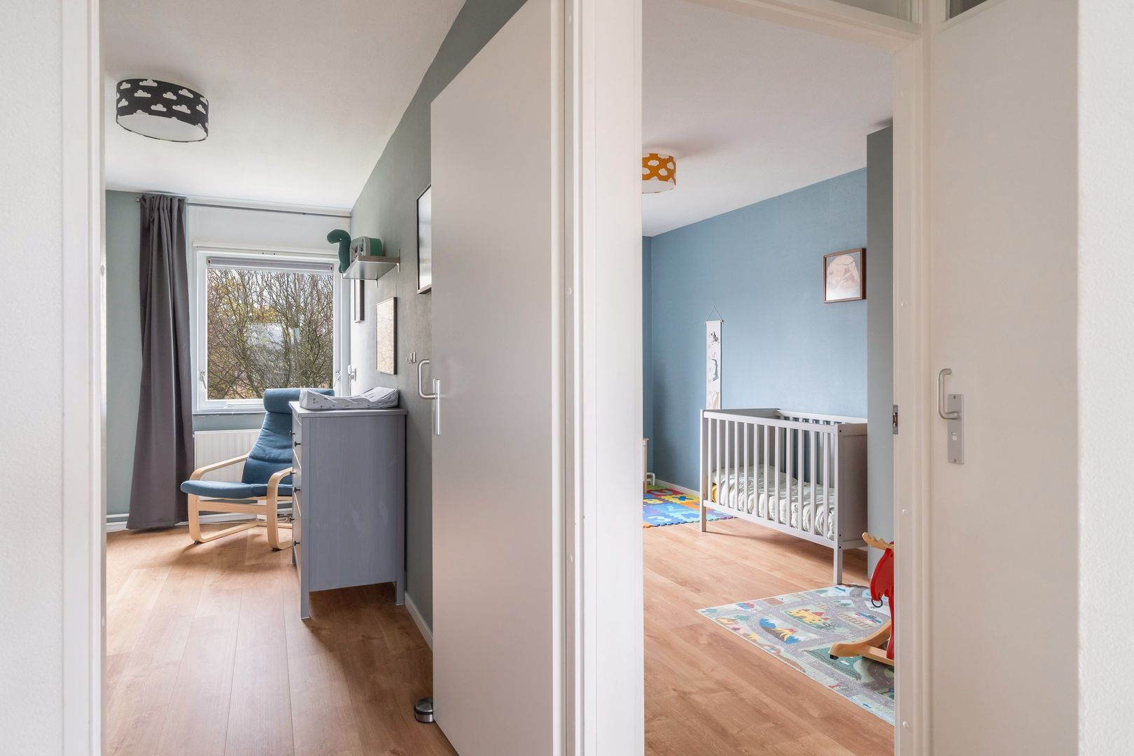 Overloop met toegang tot alle vertrekken op deze verdieping. 3 slaapkamers van respectievelijk ca. 13 m2, 12 m2 en 9 m2.