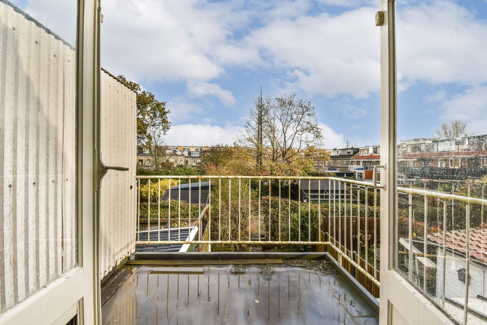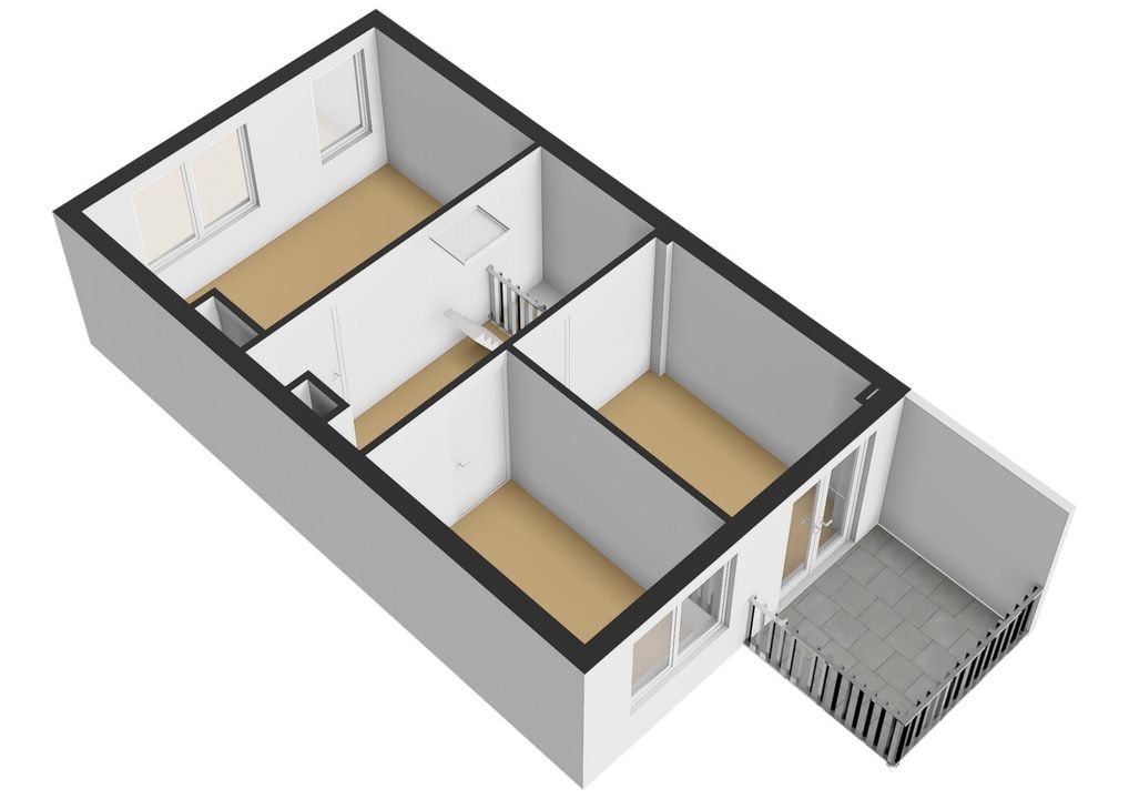 Aan de achterzijde een slaapkamer van 6,8 m2, en een slaapkamer van 7,9 m2 met dubbele openslaande deuren naar balkon van 5 m2.