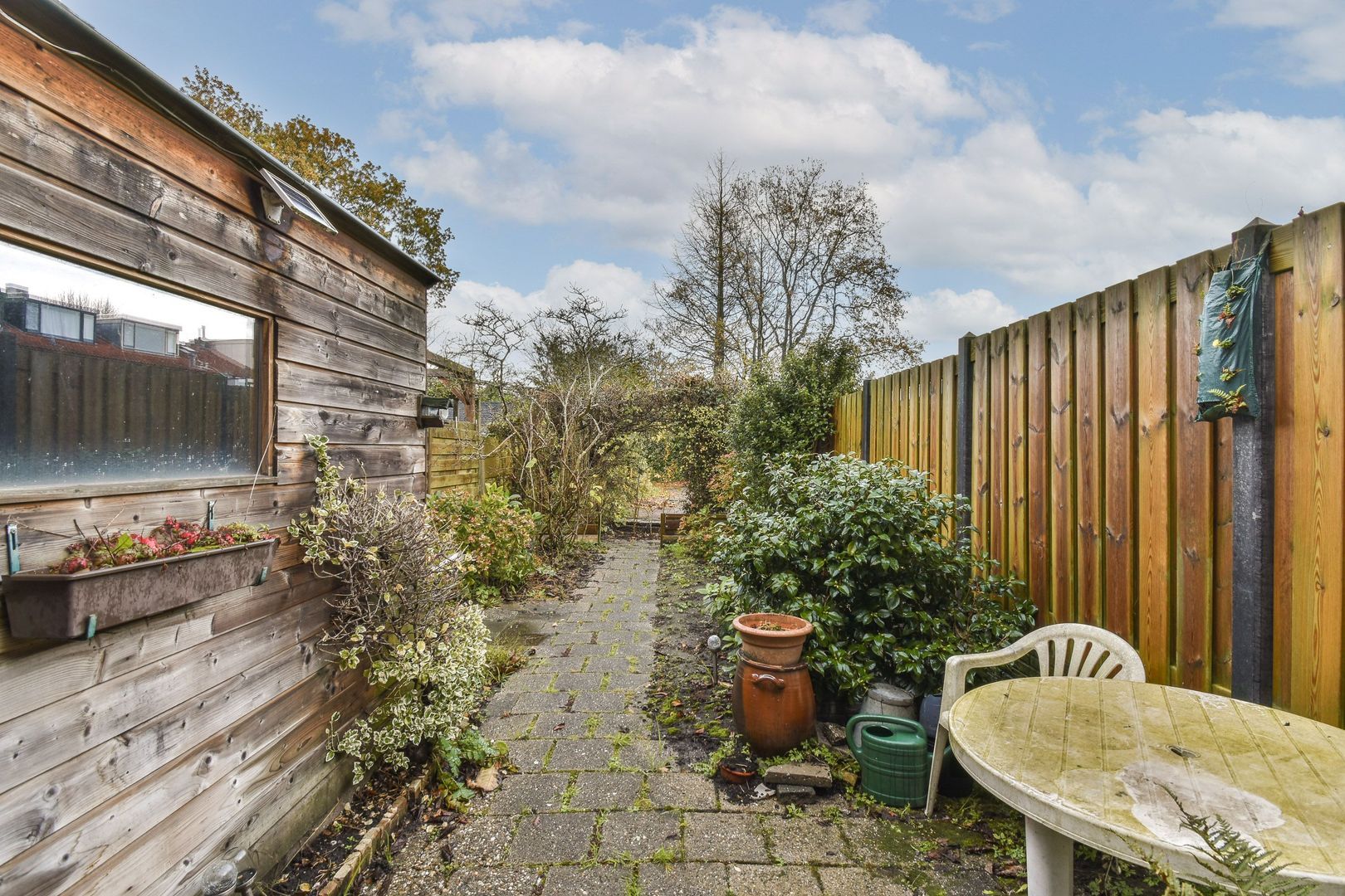 In de achtertuin staat tegen het huis aan een houten berging van 7 m2 met opstelling CV-ketel en wasmachine-aansluiting.