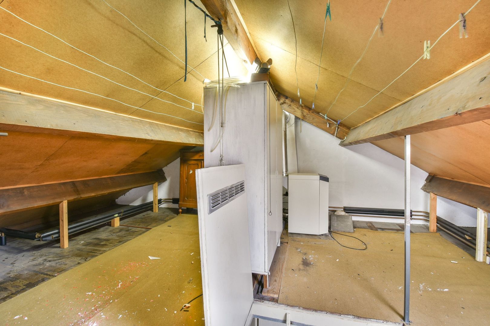 Ruime zolder, die helemaal naar eigen wens is in te delen. De zolder van 7,2 x 4,6 m heeft een nokhoogte van 2,19 meter, een dakraam en een vloeroppervlak van 33 m2. Een grote dakkapel over de nok heen behoort tot de mogelijkheden (zie ook voorbeeld bij de buren). In verband met de weinig daglicht zit deze oppervlakte niet in het woonoppervlakte.