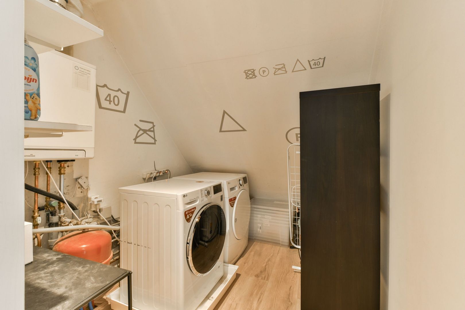 Was- en stookruimte circa 2.5 m2 voorzien van cv-combiketel (2024), wasmachine- en droger aansluiting en inbouwspots.