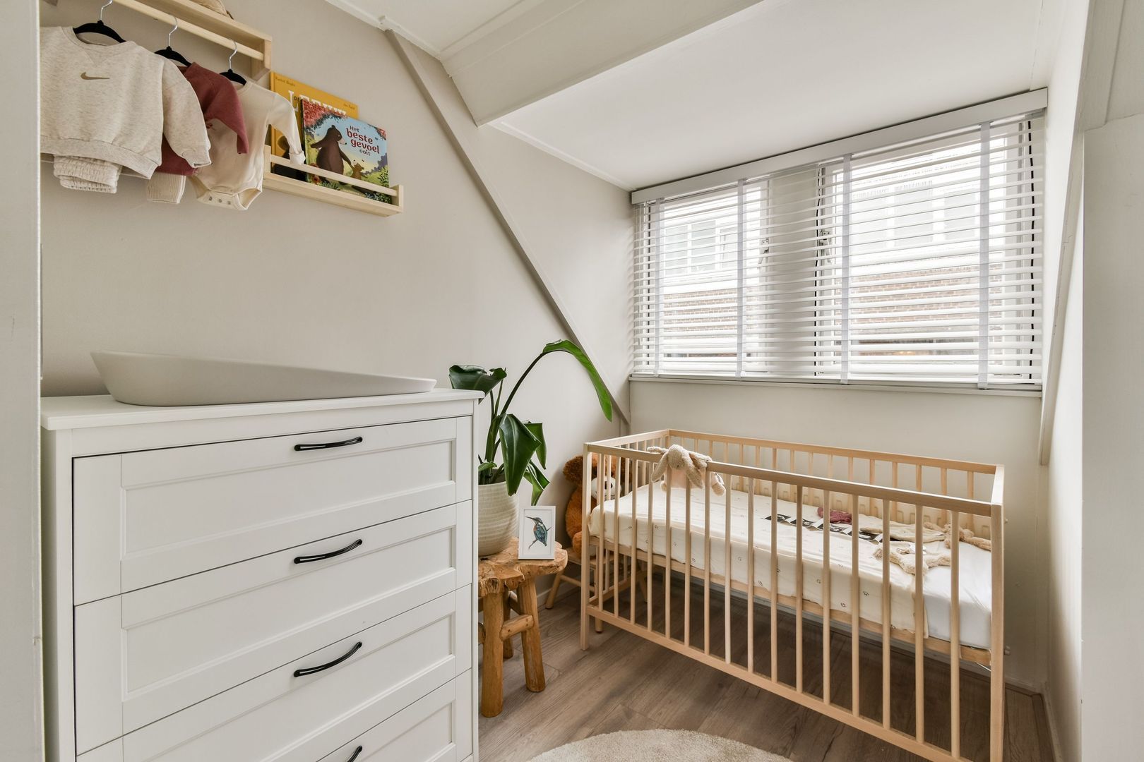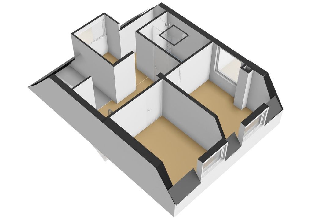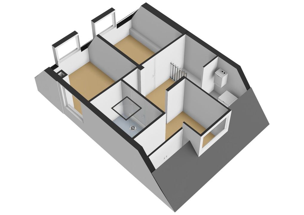 Ruime overloop met toegang tot alle vertrekken. Slaapkamer aan voorzijde van bijna 10 m2 met extra hoekraam en mooie uitzicht over de omgeving richting de molen Aeolus. De tweede slaapkamer aan voorzijde is ook bijna 10 m2 groot. Beide kamers zijn uitgevoerd met een kleine dakkapel. (Slaap)kamer 3 ligt aan de achterzijde en heeft een diepe dakkapel. Deze multifunctionele kamer van circa 6 m2 is uitgevoerd met inbouwspots en een schuifwandkast geeft veel bergruimte.