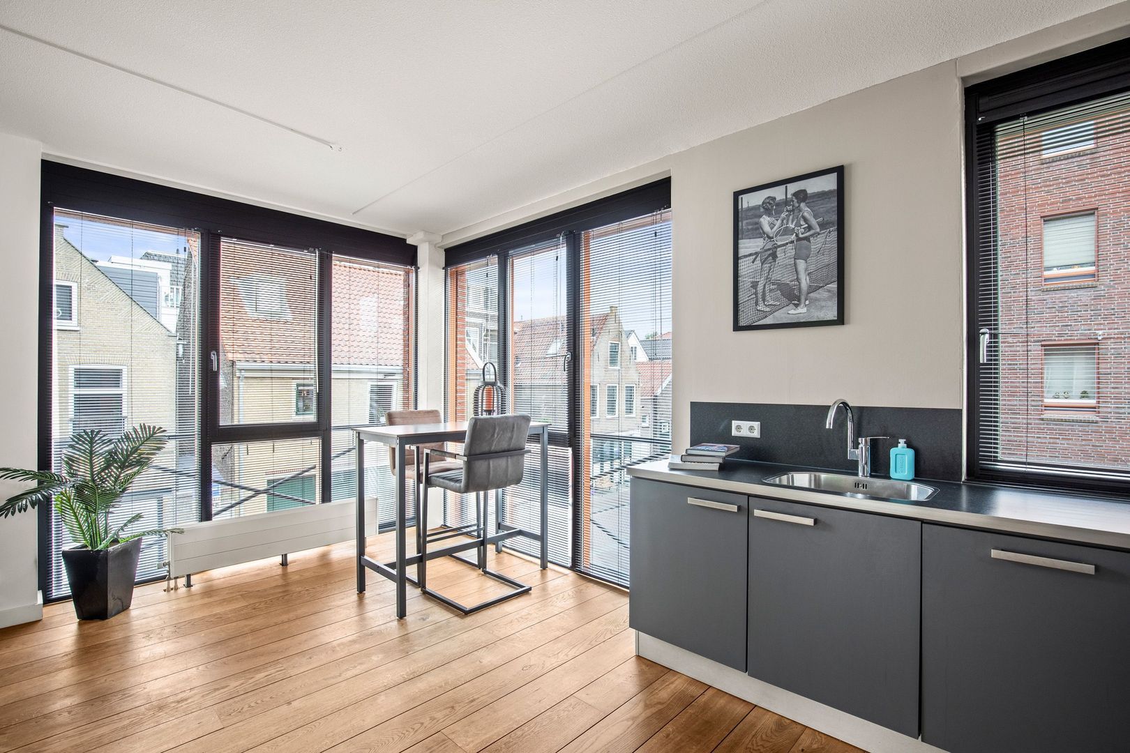 De royale woonkamer van maar liefst 50 m2 is een ware eyecatcher, met zes grote panoramische ramen die zorgen voor een overvloed aan daglicht. De hoogwaardige Keller-keuken is halfopen, stijlvol uitgevoerd en van alle gemakken voorzien. De ligging op de tweede woonlaag geeft veel vrijheid, maar je hebt ook nog een goede betrokkenheid bij het stadsleven. In de kelder is een grote berging aanwezig, parkeren kan overdekt op de eigen parkeerplaats en daarnaast is er een lift aanwezig in het complex. De markante architectuur van het gebouw doet denken aan historische pakhuizen en sluit perfect aan bij de levendige omgeving. Alle denkbare voorzieningen liggen op loopafstand.