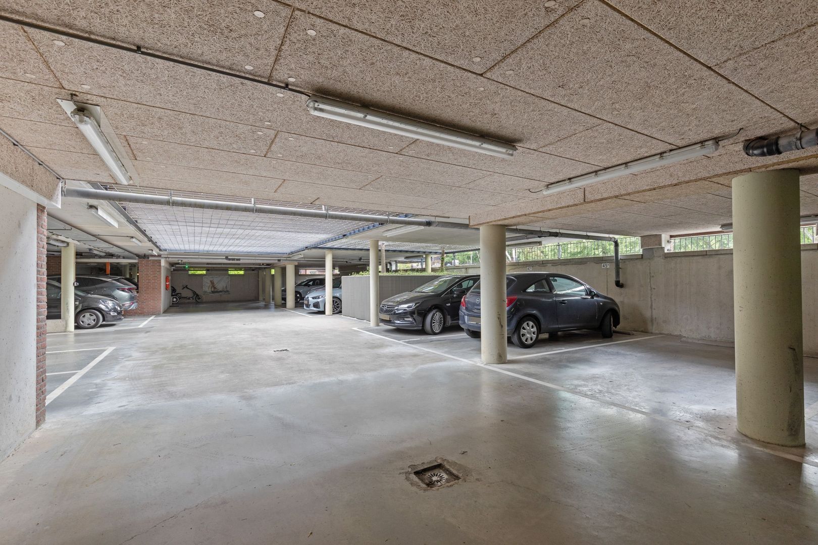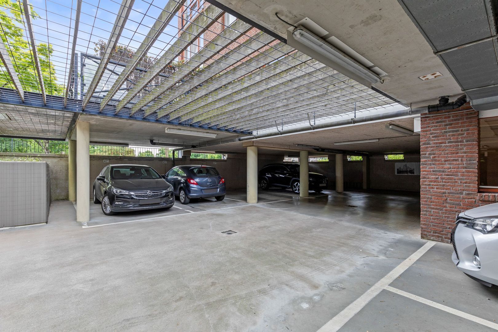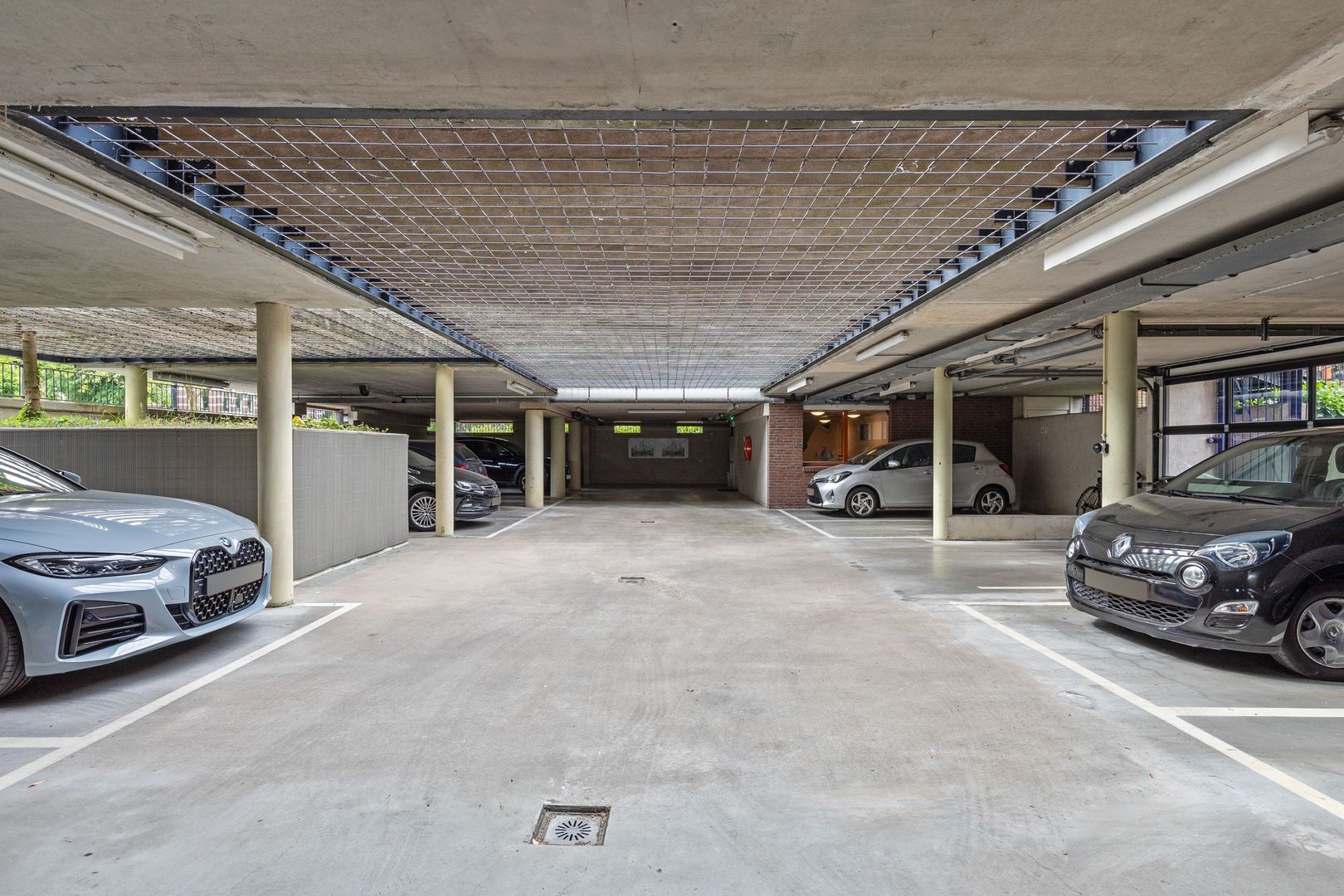 Er is een eigen parkeerplaats beschikbaar in de afgesloten, overdekte parkeergarage. De privéberging van circa 7 m2 bevindt zich in de onderbouw.