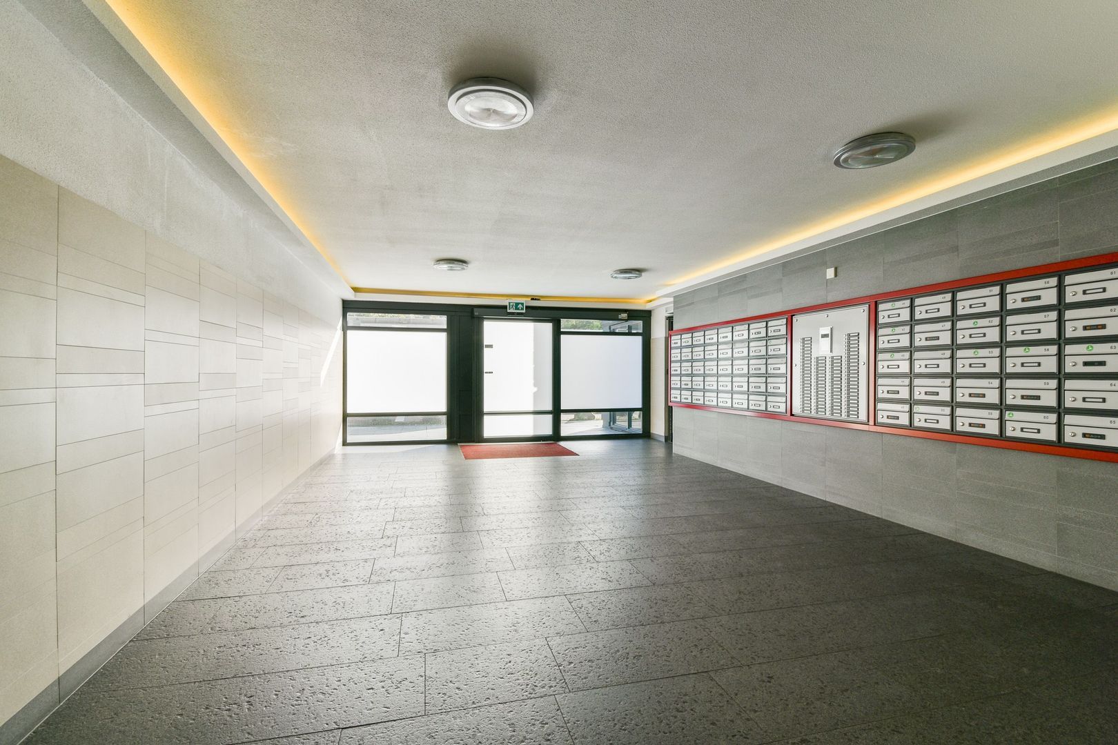 Representatieve, recent gerenoveerde entree met bellentableau en brievenbussen. Via de afgesloten hal bereikt u de lift en het trappenhuis.